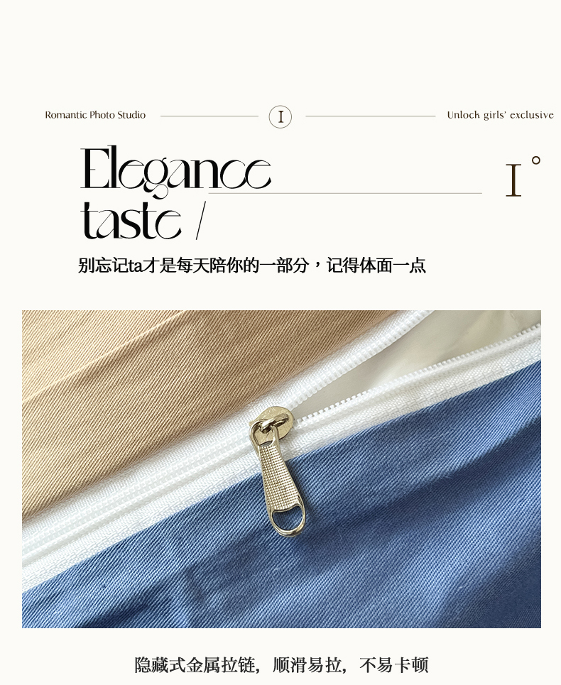 商品名称:多品家纺 2024新款全棉纯色双拼刺绣四件套 浅驼宝石蓝