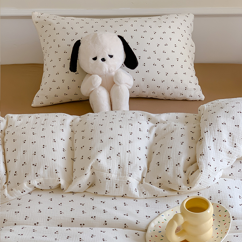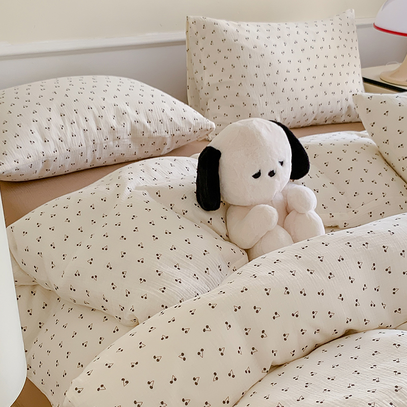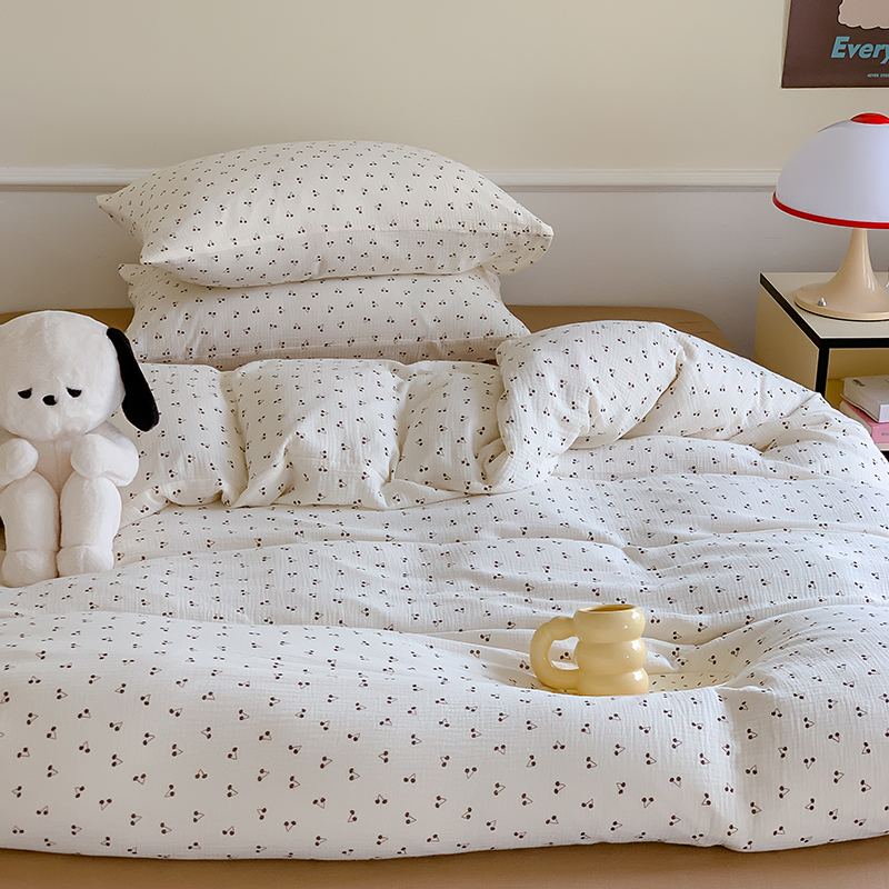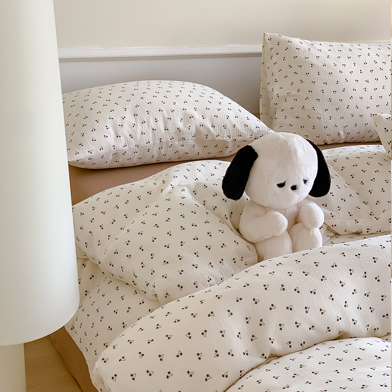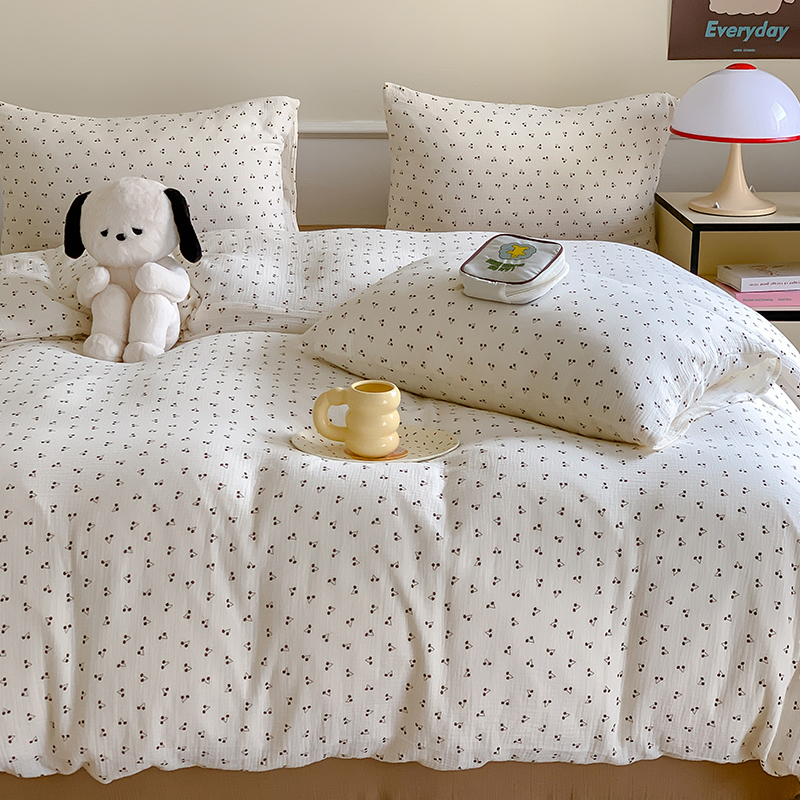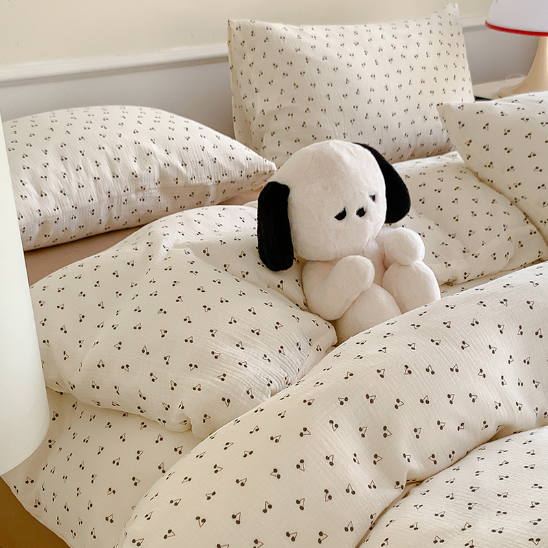 萝莉家纺2025新款全棉双层皱皱纱四件套 黑樱桃