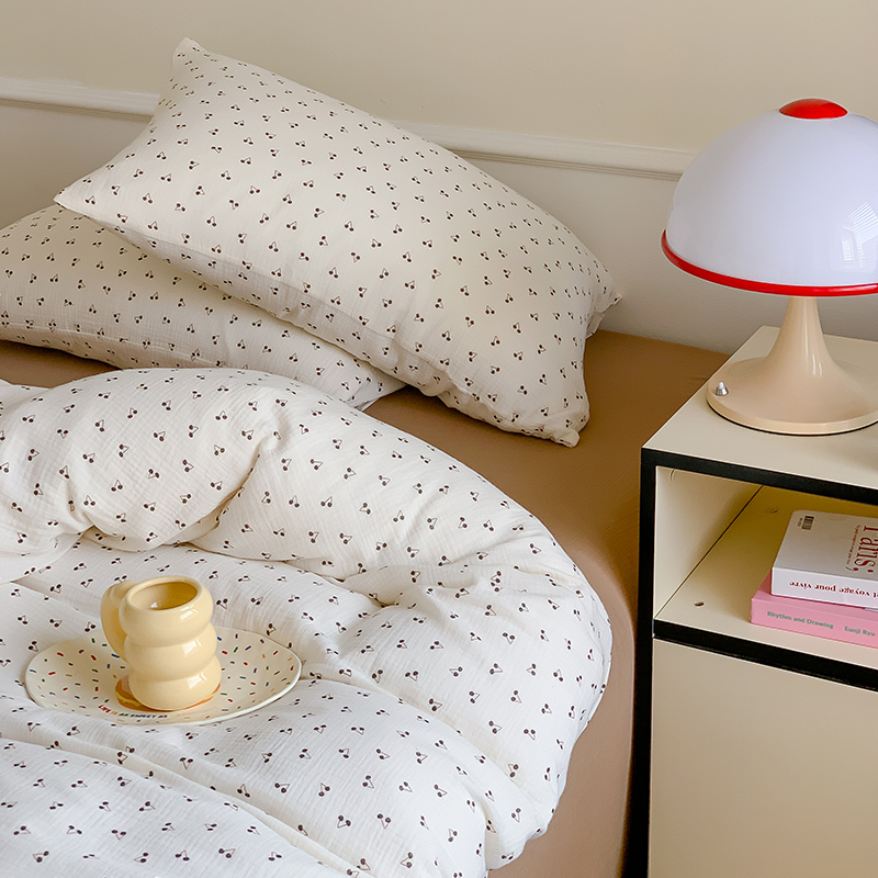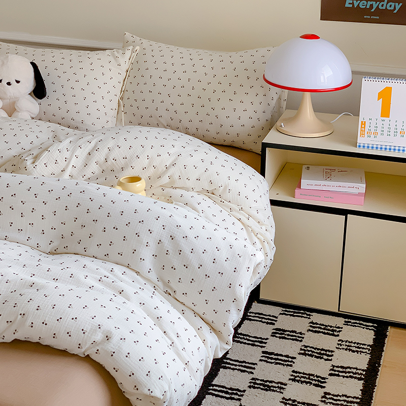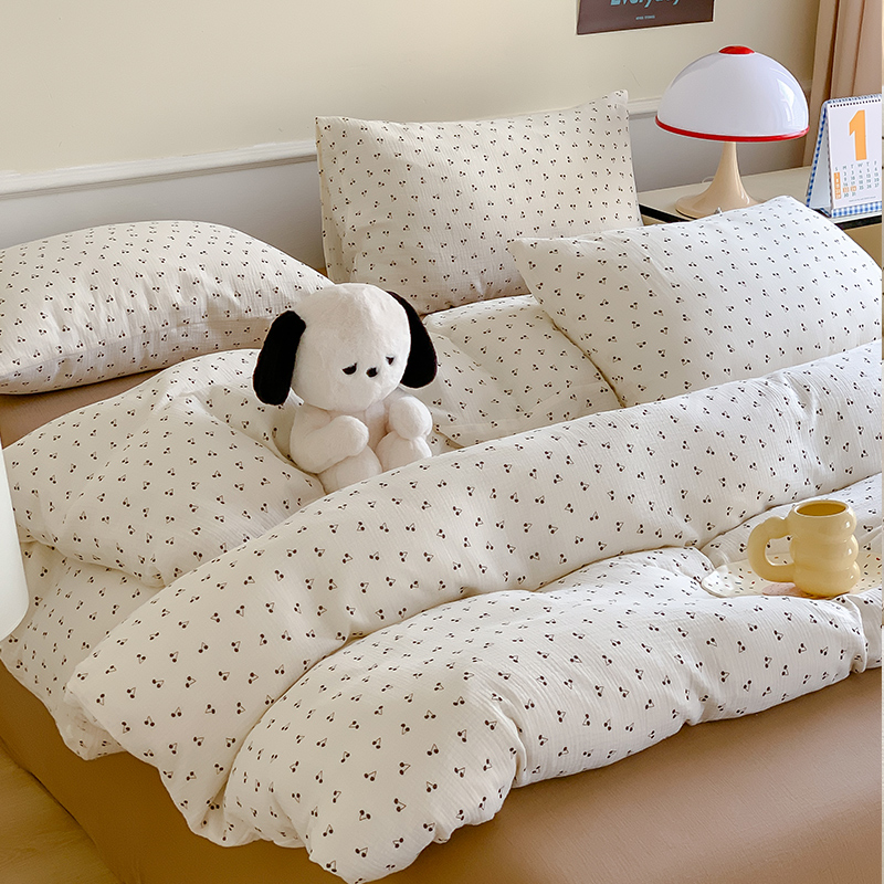 商品名称:萝莉家纺2025新款全棉双层皱皱纱四件套 黑樱桃