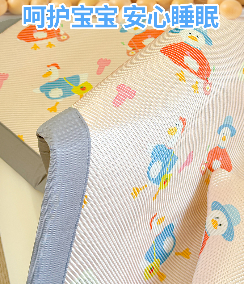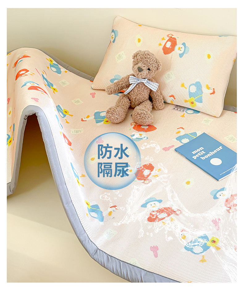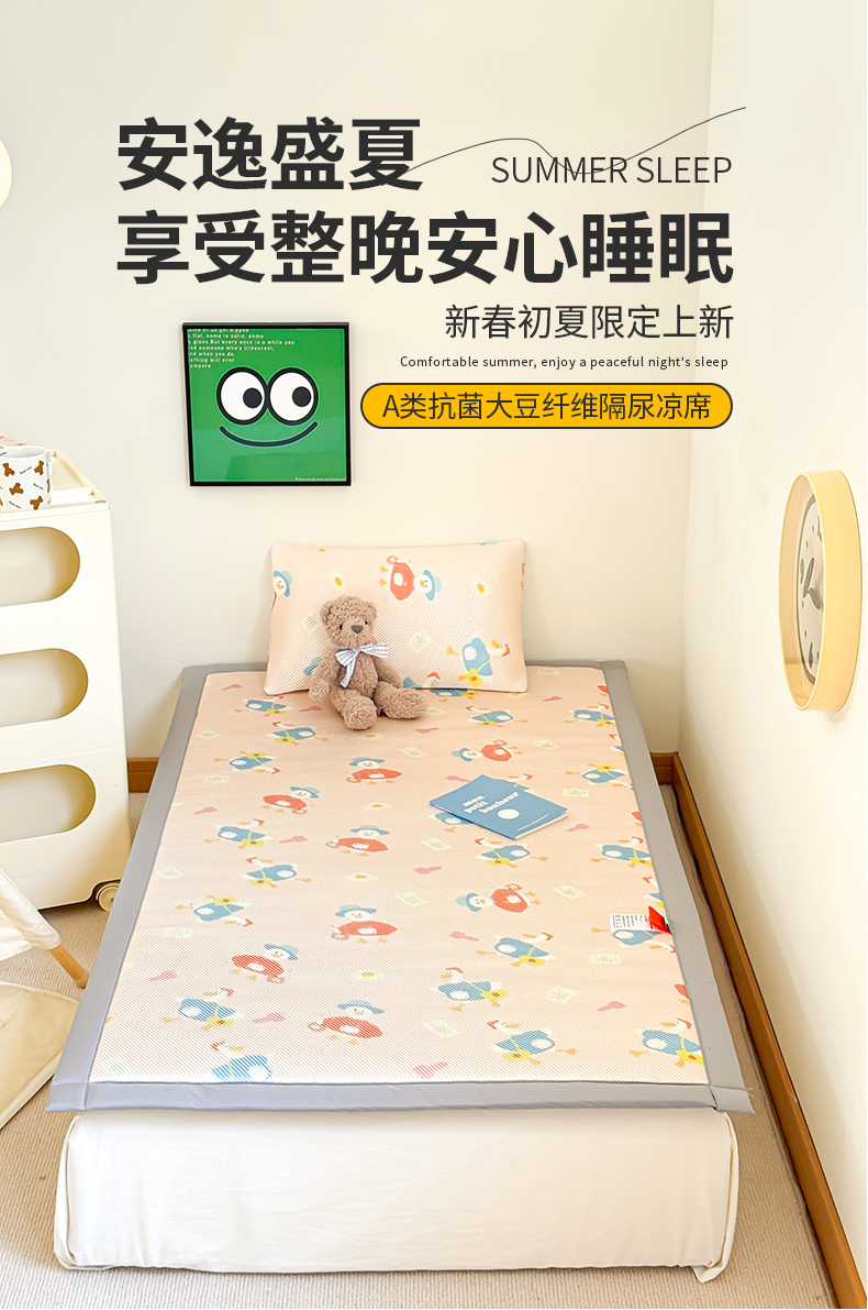 • 91家纺网 家纺一手货源 找家纺 喜多兔儿童家纺 2024新款抗菌大豆纤维隔尿凉席 粉色快乐鸭