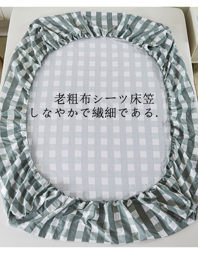 鸣升 新款舒适透气全棉老粗布床笠 灰中格