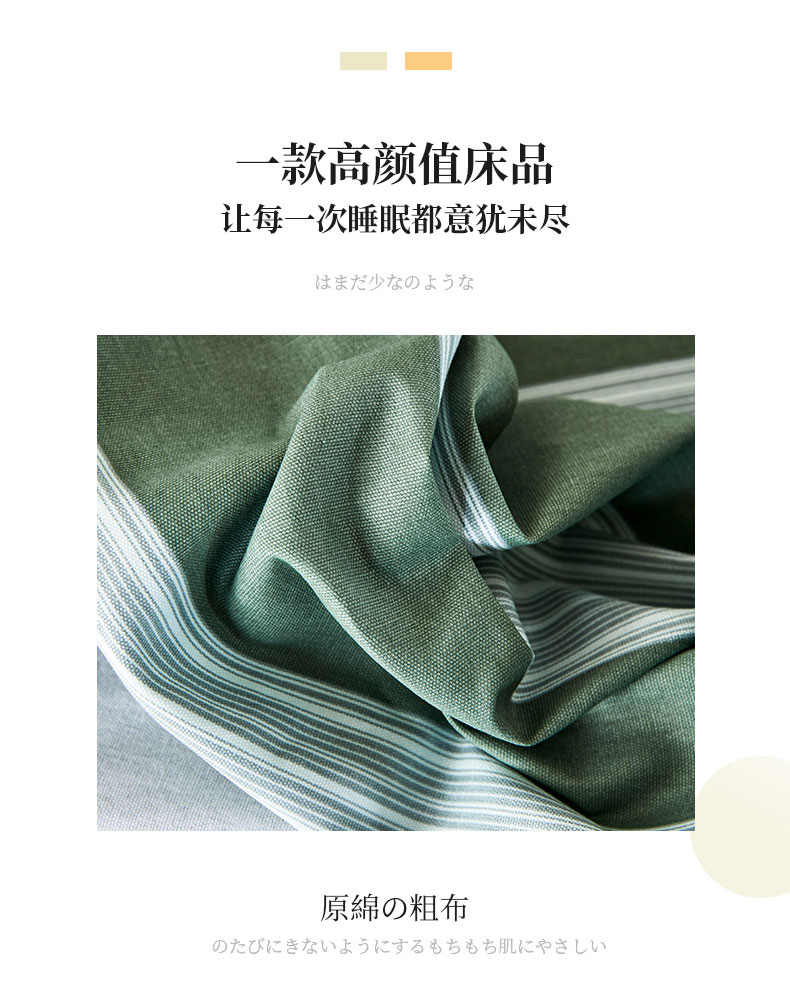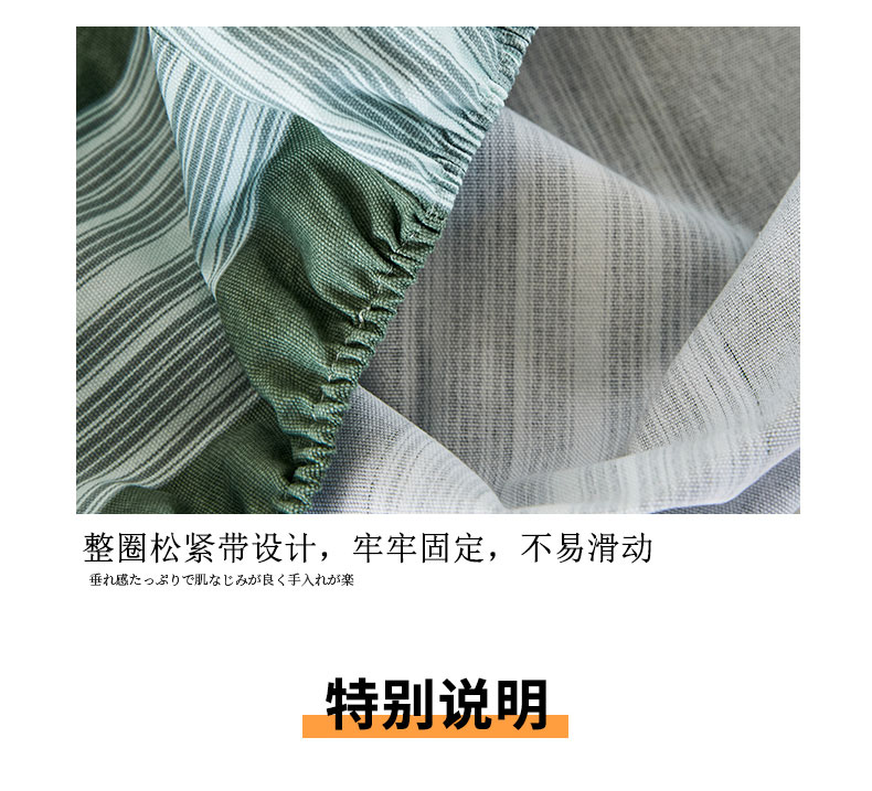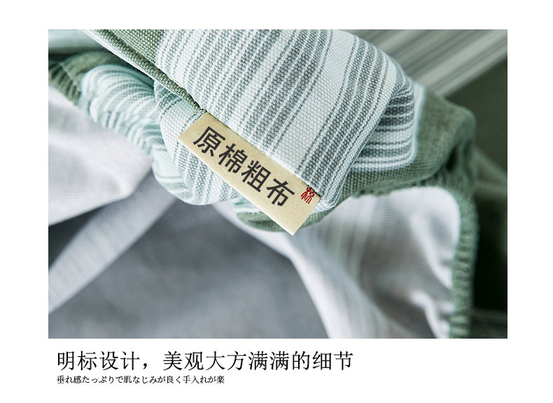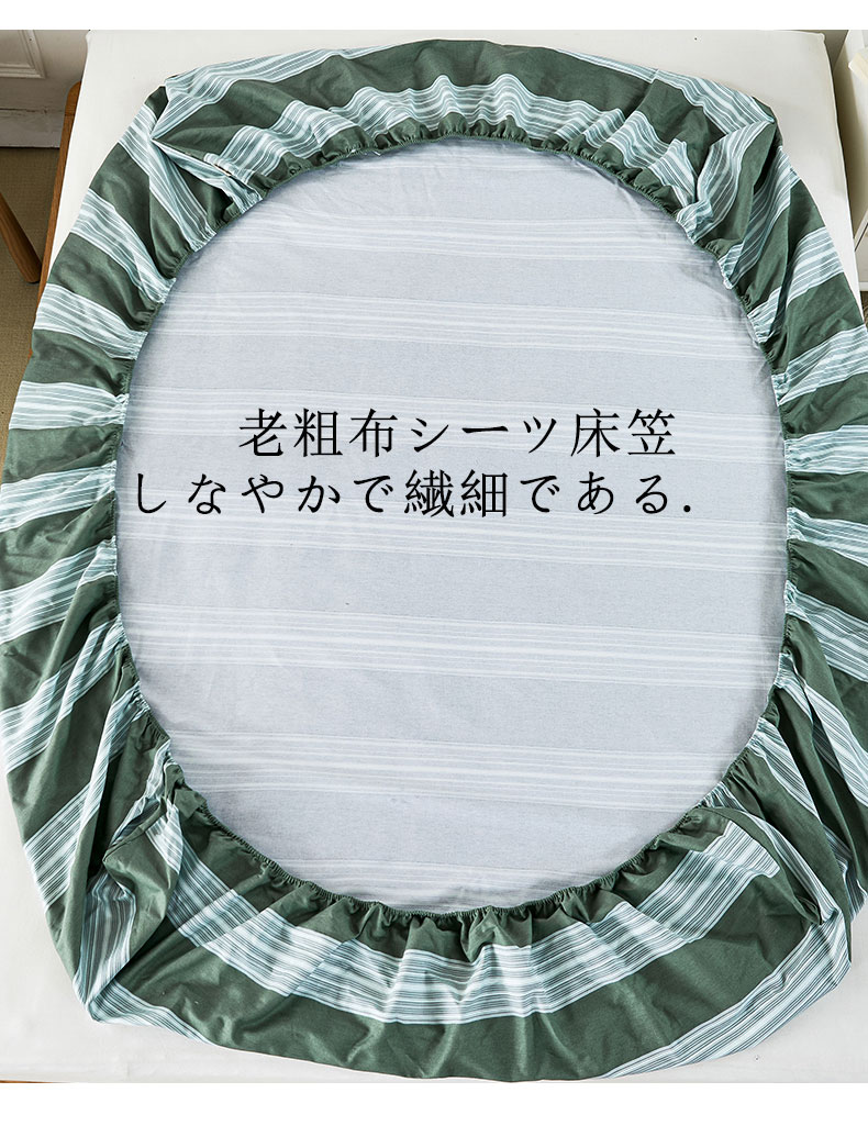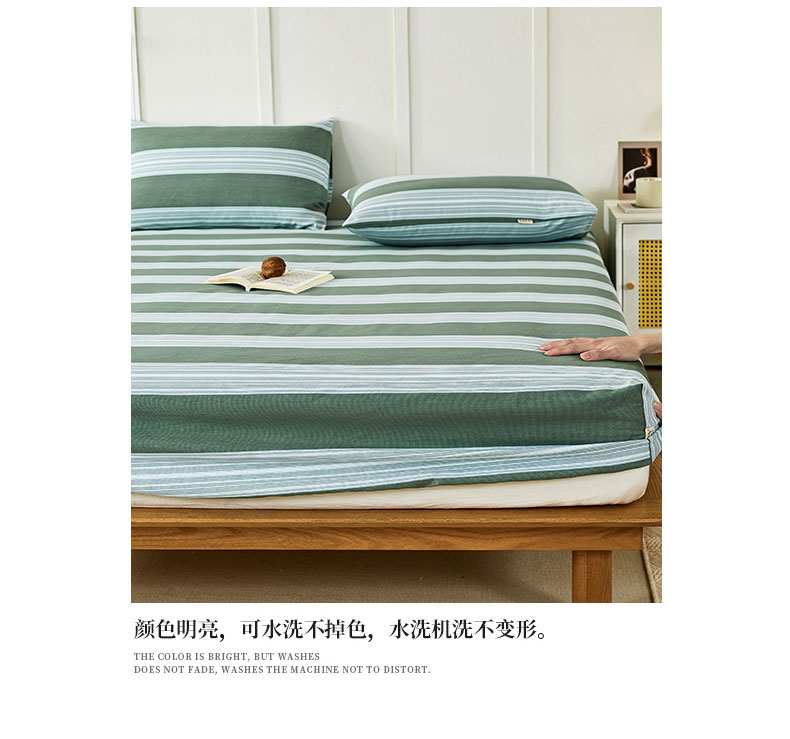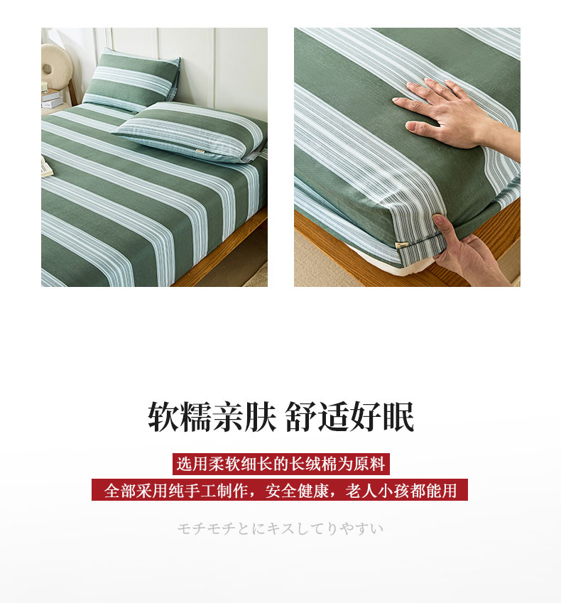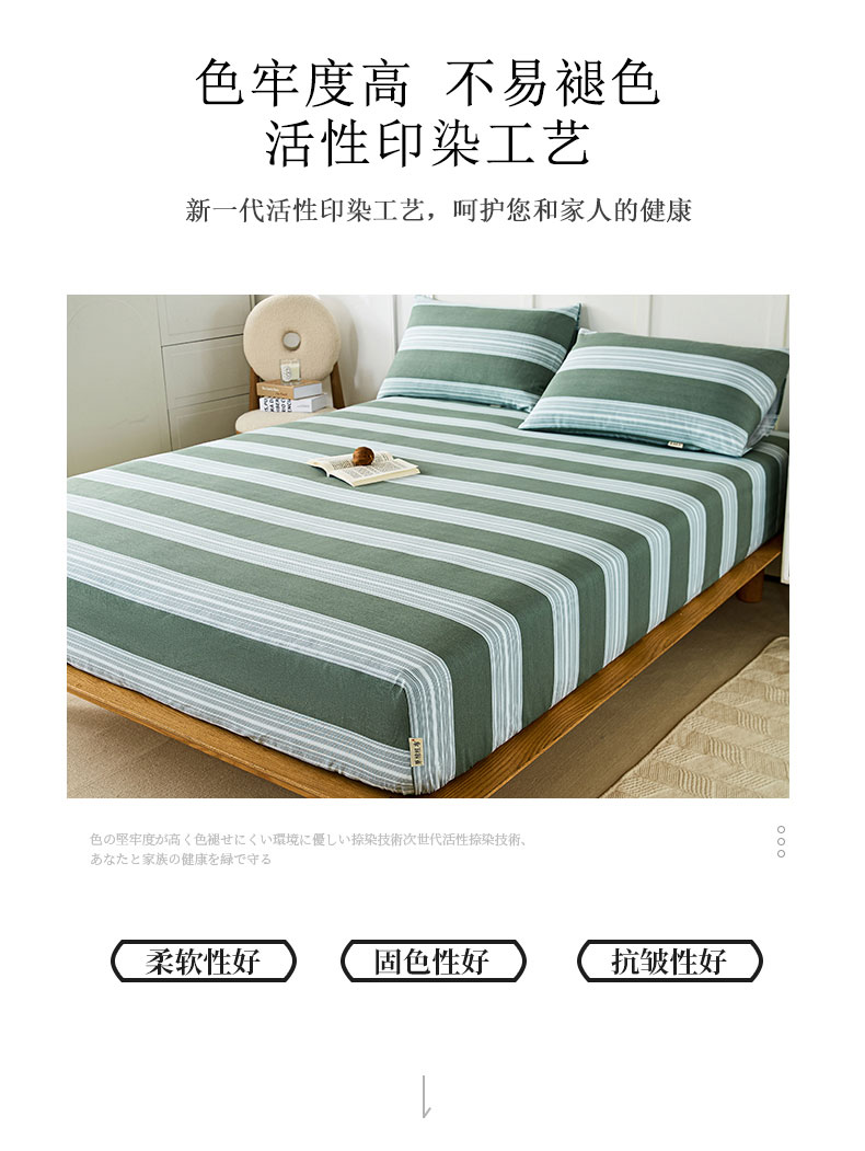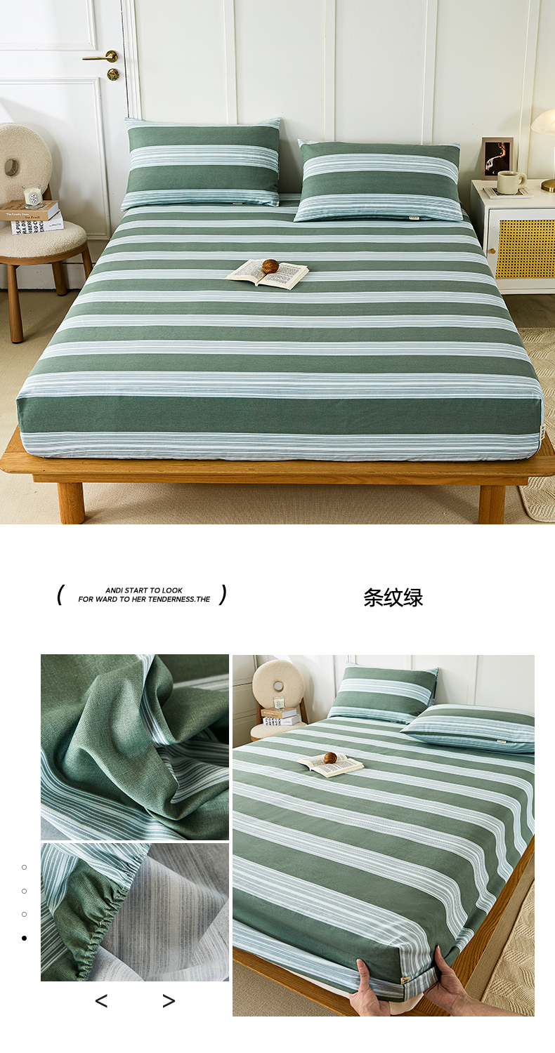 • 91家纺网 家纺一手货源 找家纺 鸣升 新款舒适透气全棉老粗布床笠 条纹绿