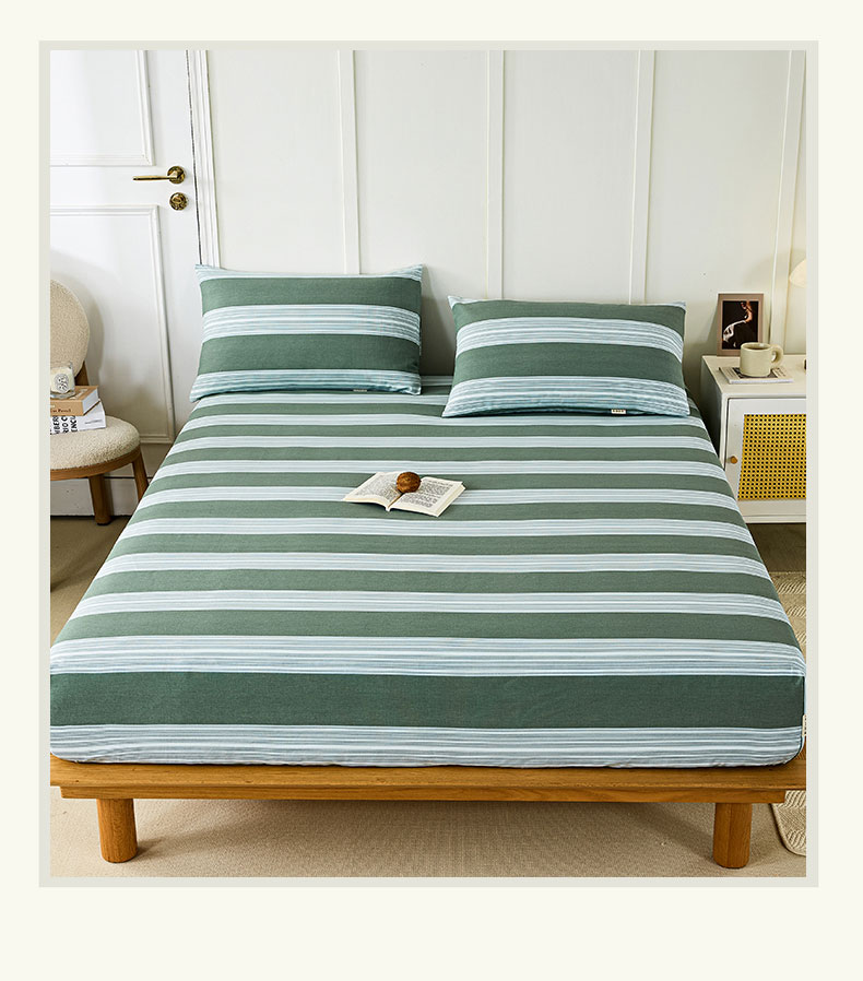 鸣升 新款舒适透气全棉老粗布床笠 条纹绿
