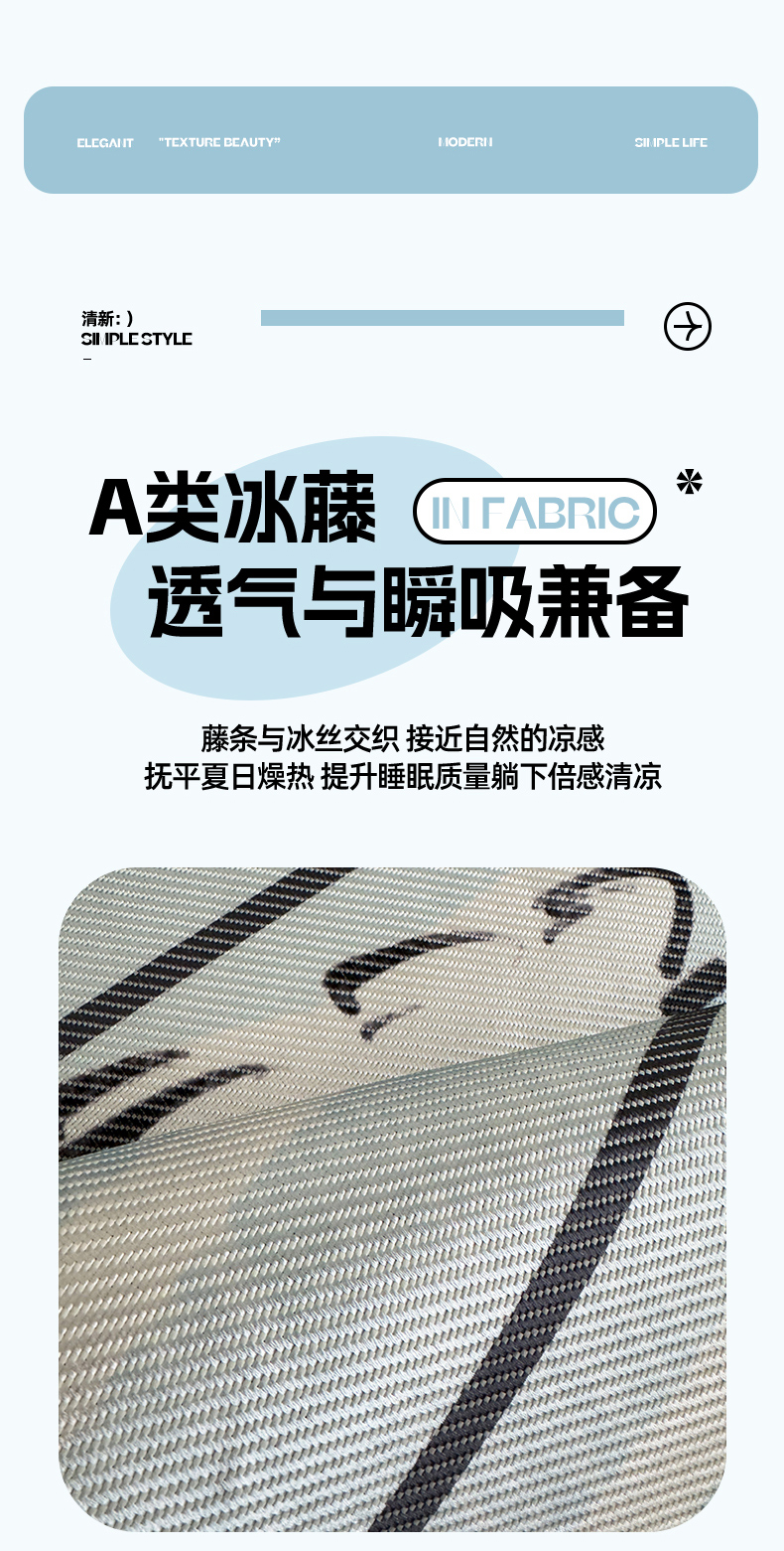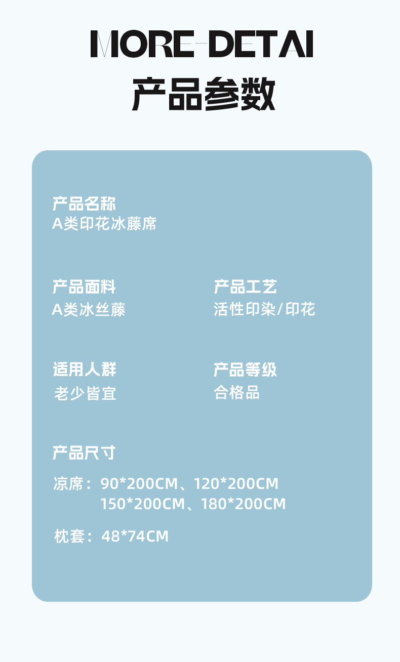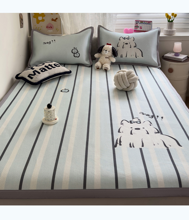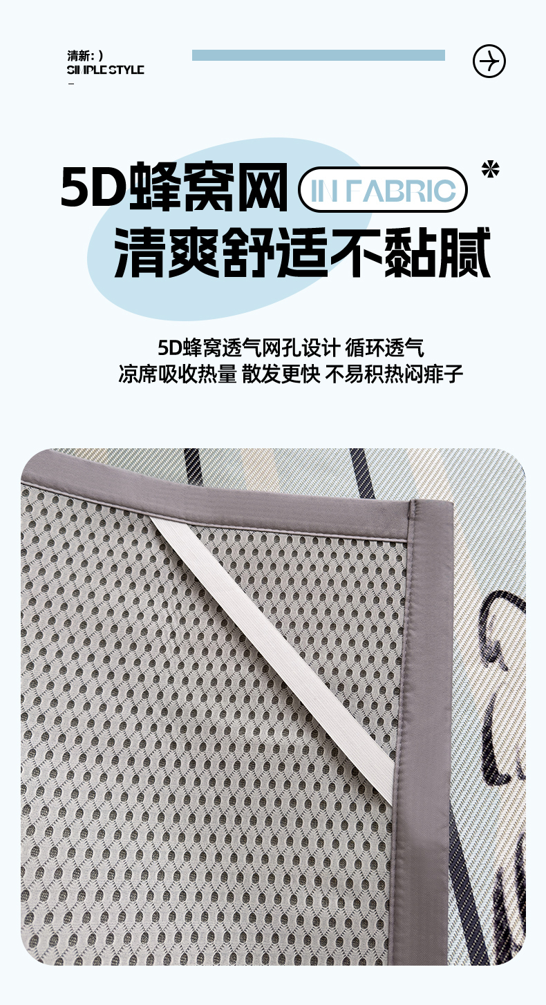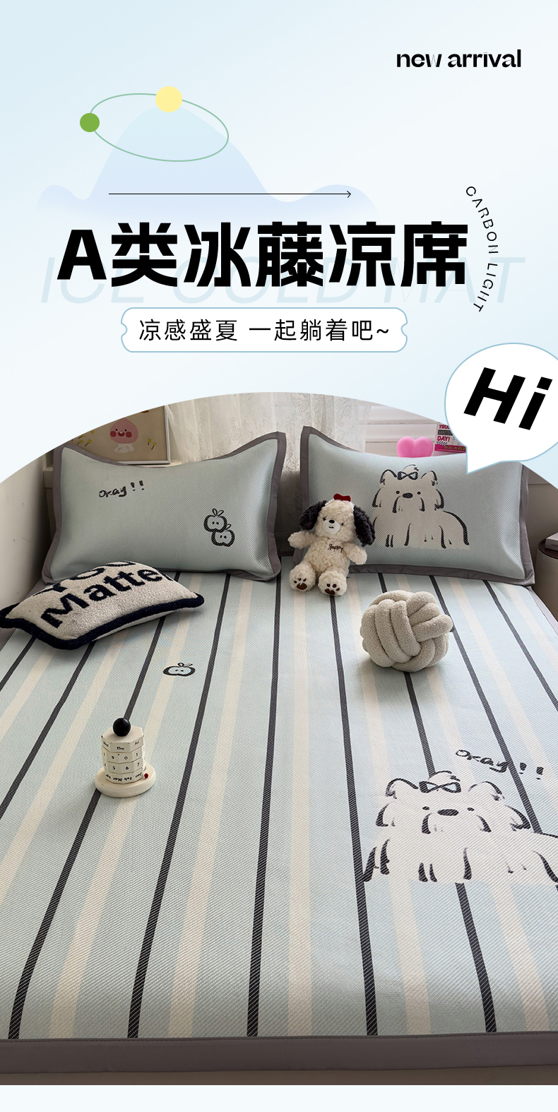 当前位置: 91家纺网 > 商品网购 > 床上用品 > 凉席 > 藤席 > 山茶 2024新款凉感舒适亲肤冰丝藤席 冰藤席-蓝灰条纹旺旺