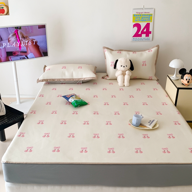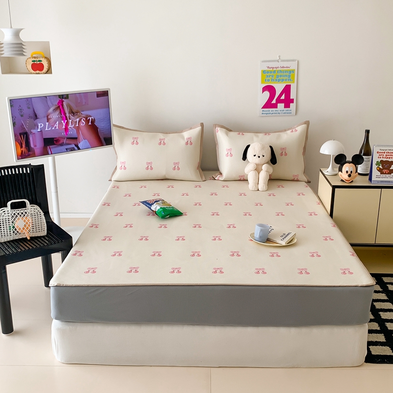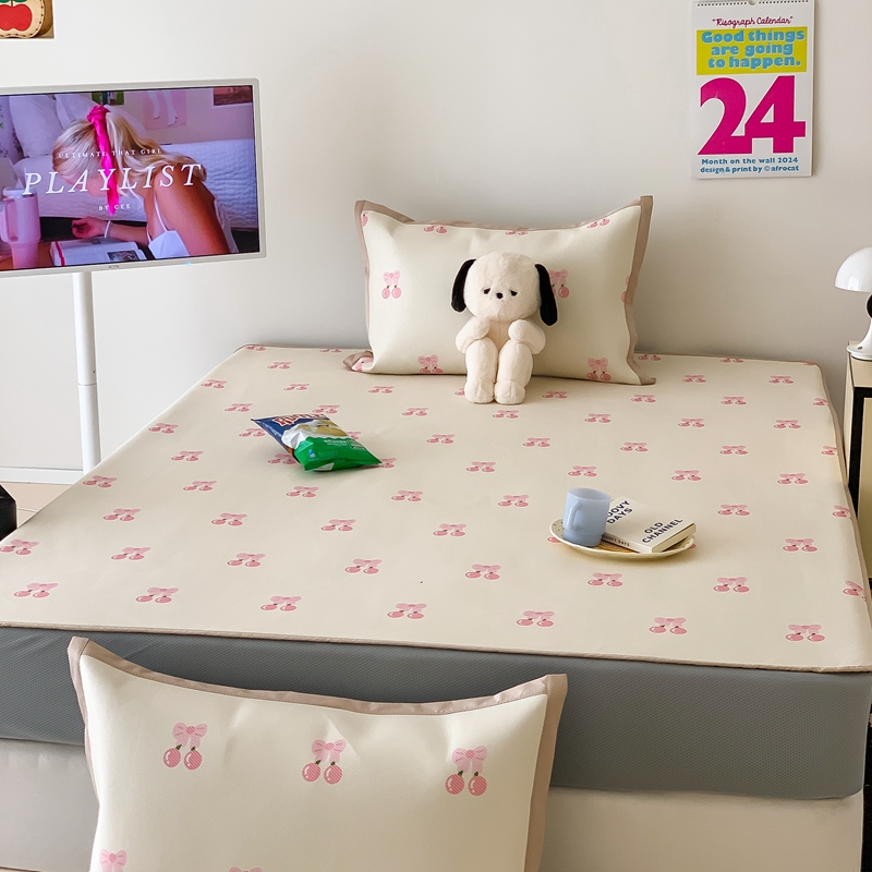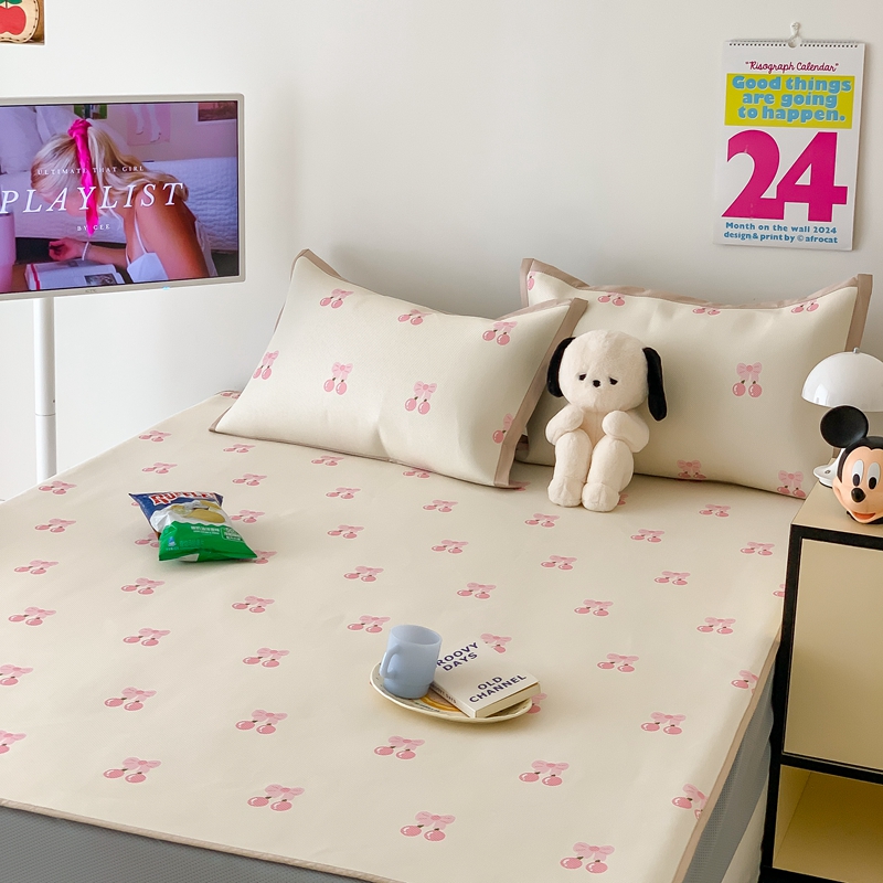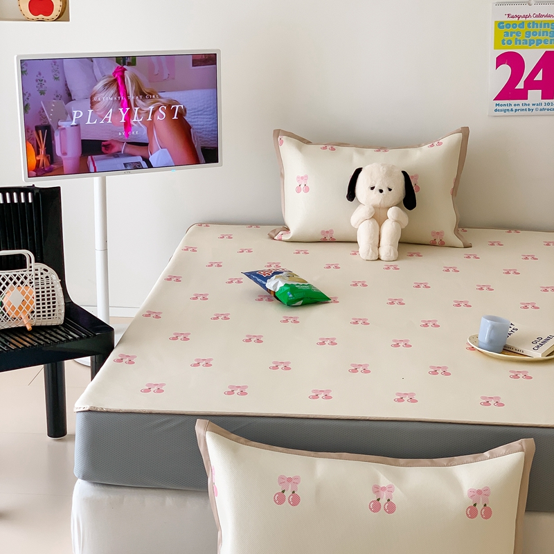 昔可家纺 2024新款冰藤席床笠款--卡通系列 粉蝴蝶结樱桃