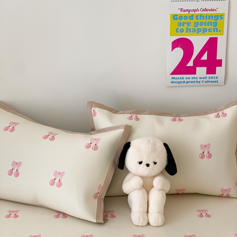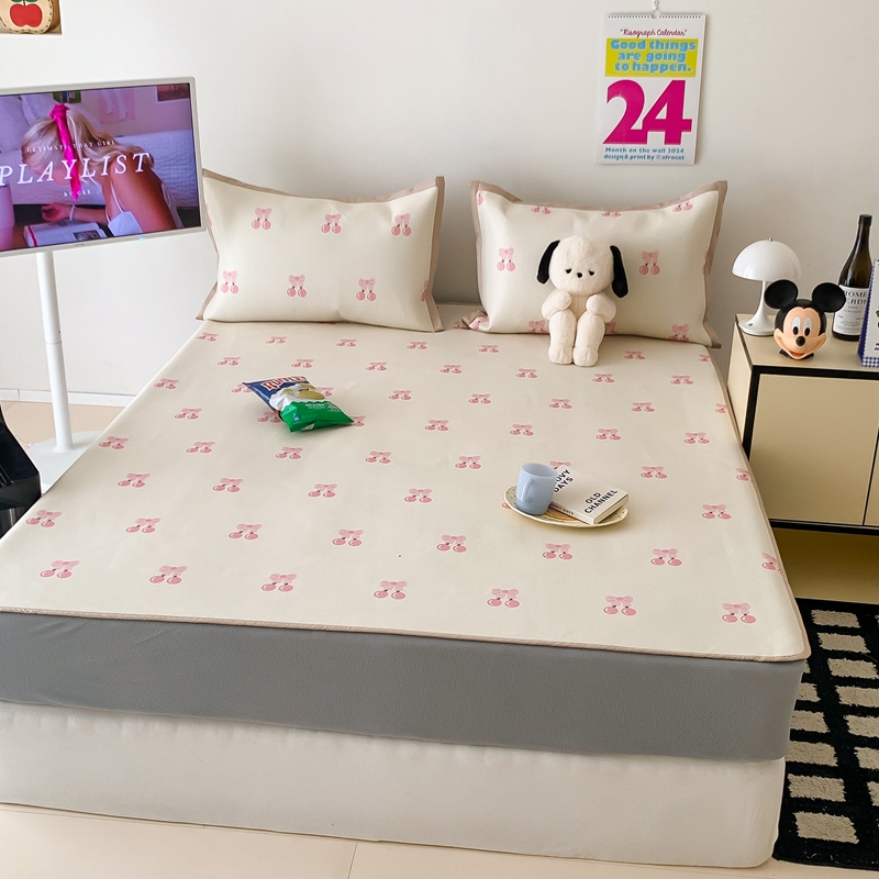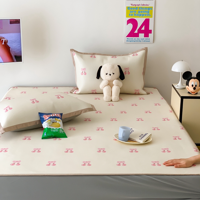 商品名称:昔可家纺 2024新款冰藤席床笠款--卡通系列 粉蝴蝶结樱桃