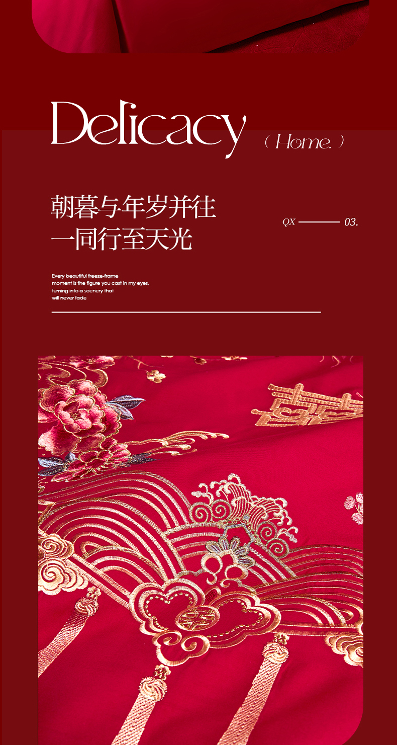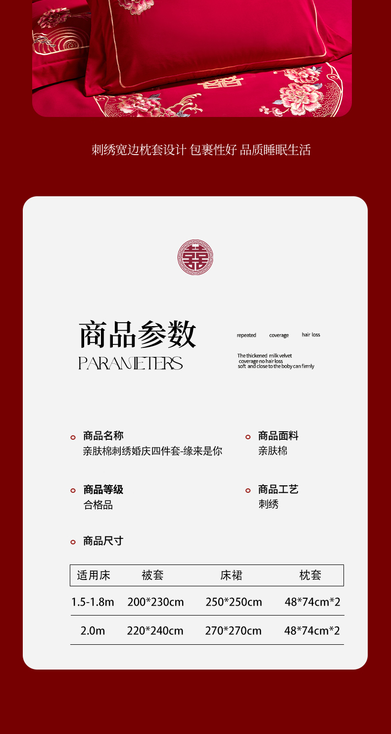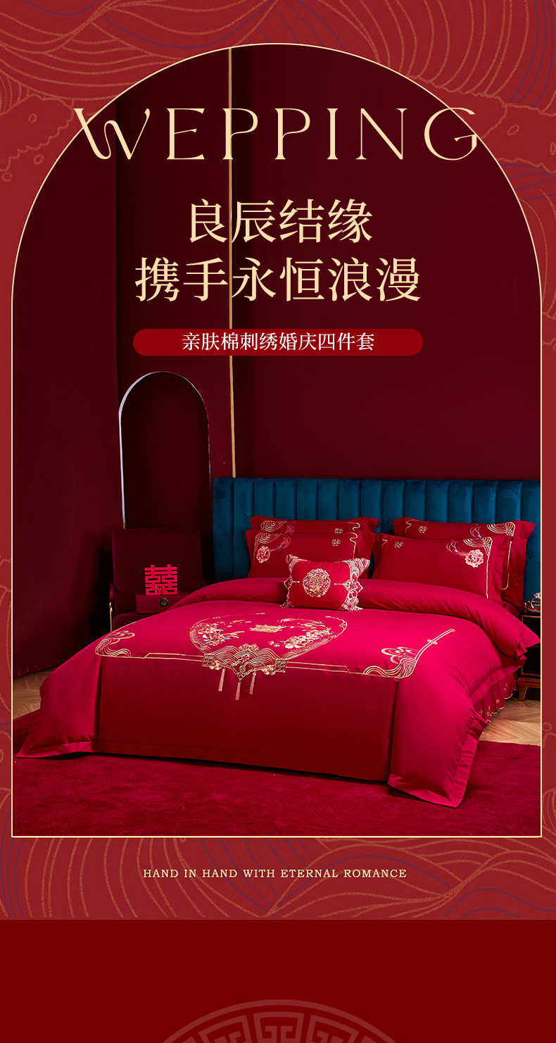 当前位置: 91家纺网 > 商品网购 > 床品套件 > 四件套 > 婚庆四件套 > 晶缦家纺 2024新款亲肤舒适棉刺绣花婚庆四件套系列 缘来是你-悦-绣花花边床单款