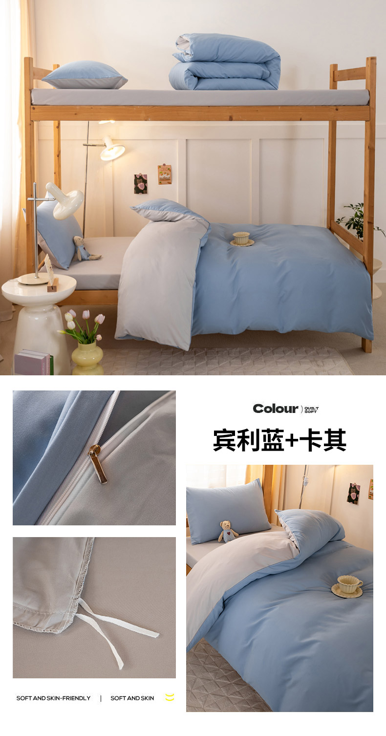 当前位置: 91家纺网 > 商品网购 > 床品套件 > 四件套 > 普通磨毛四件套 > 芷凡家纺 2024新款水洗磨毛纯色双拼学生三件套四件套 宾利蓝+卡其