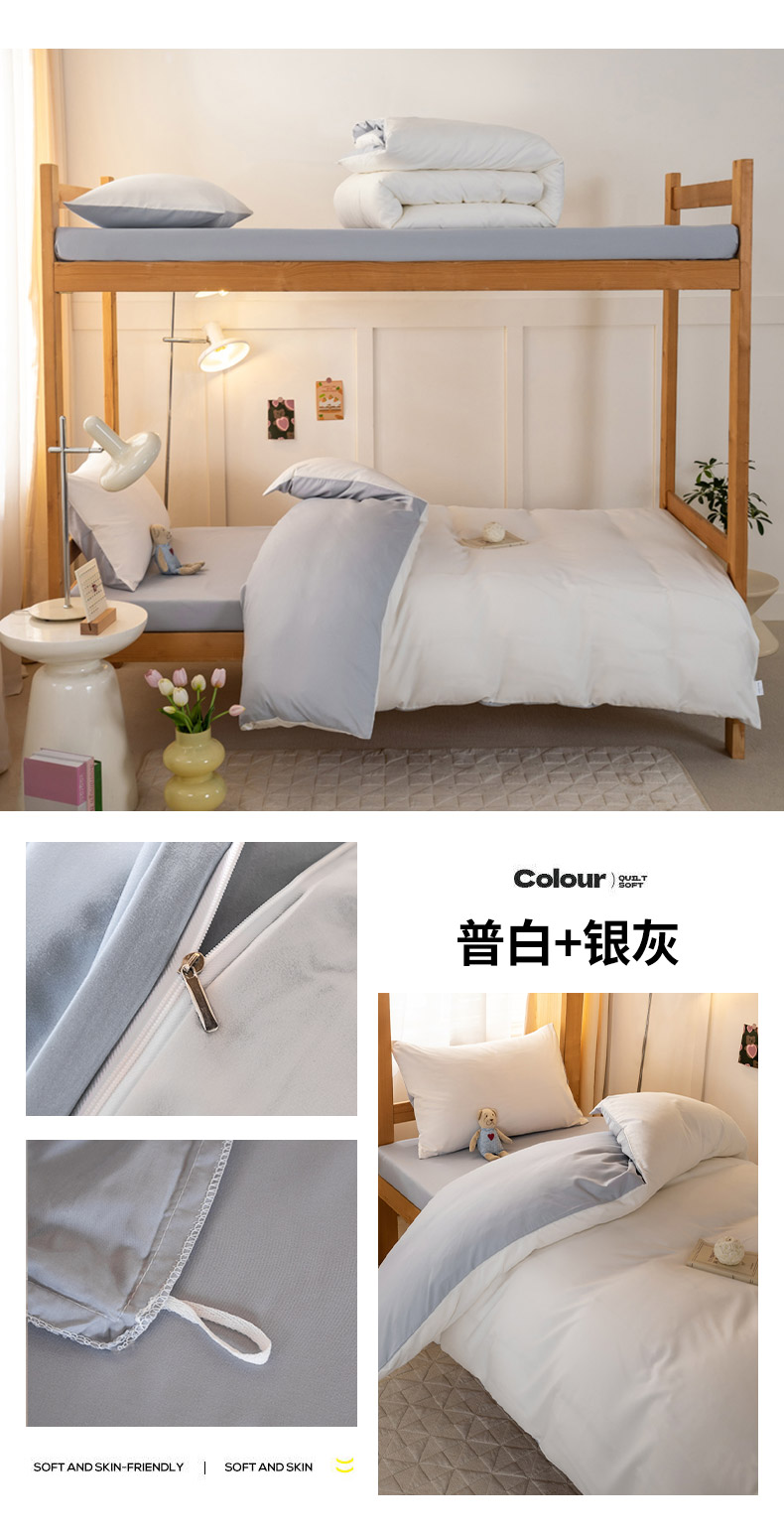 当前位置: 91家纺网 > 商品网购 > 床品套件 > 四件套 > 普通磨毛四件套 > 芷凡家纺 2024新款水洗磨毛纯色双拼学生三件套四件套 普白+银灰