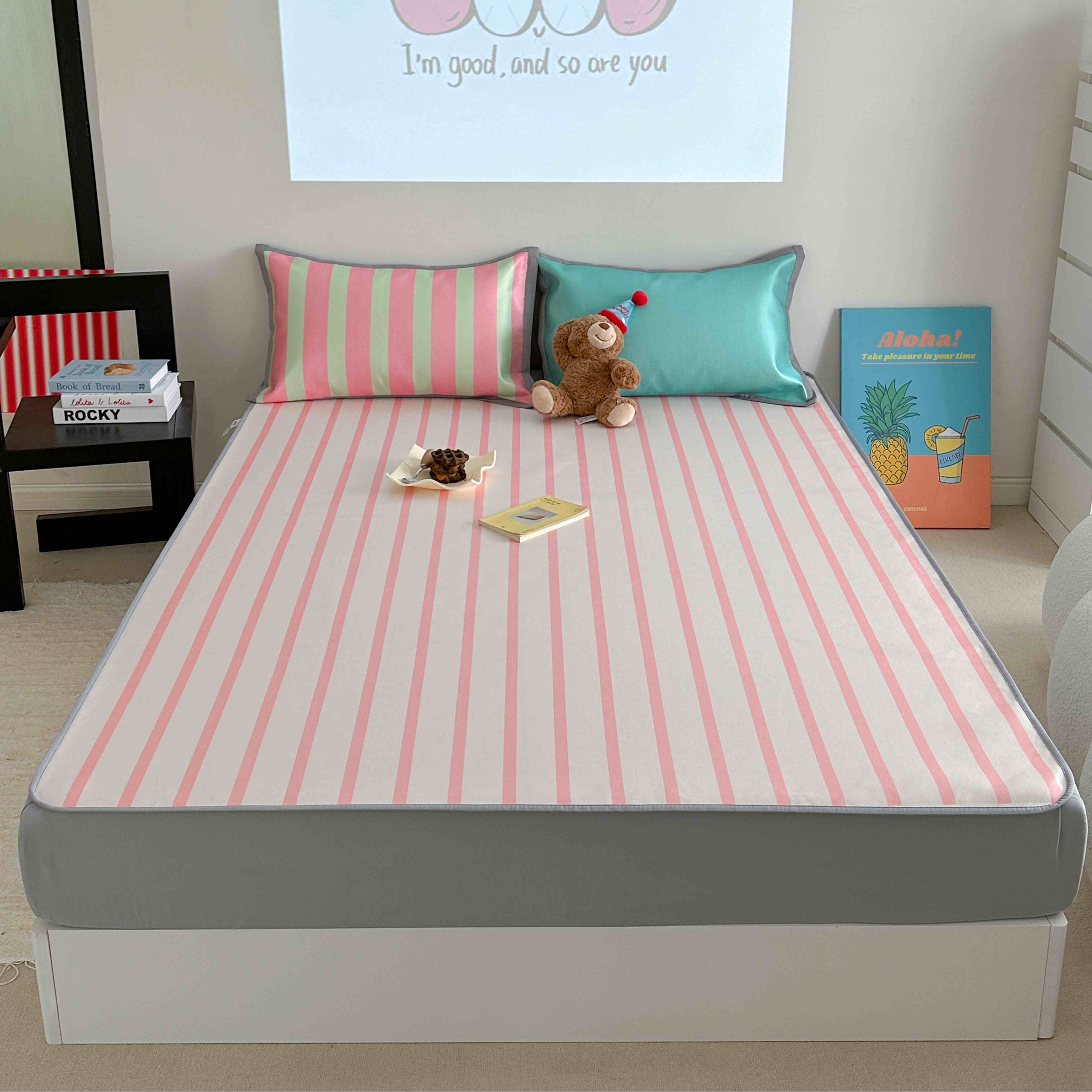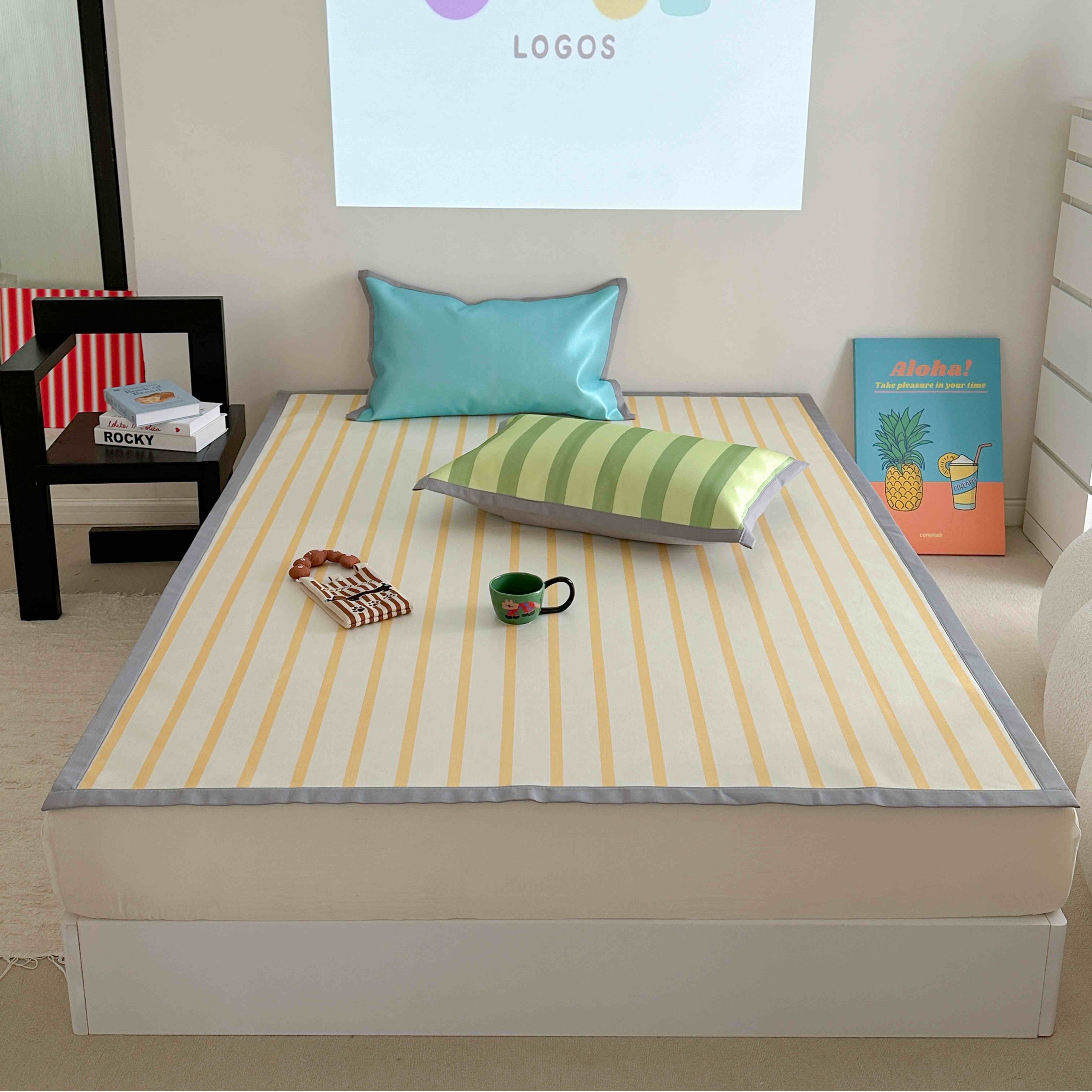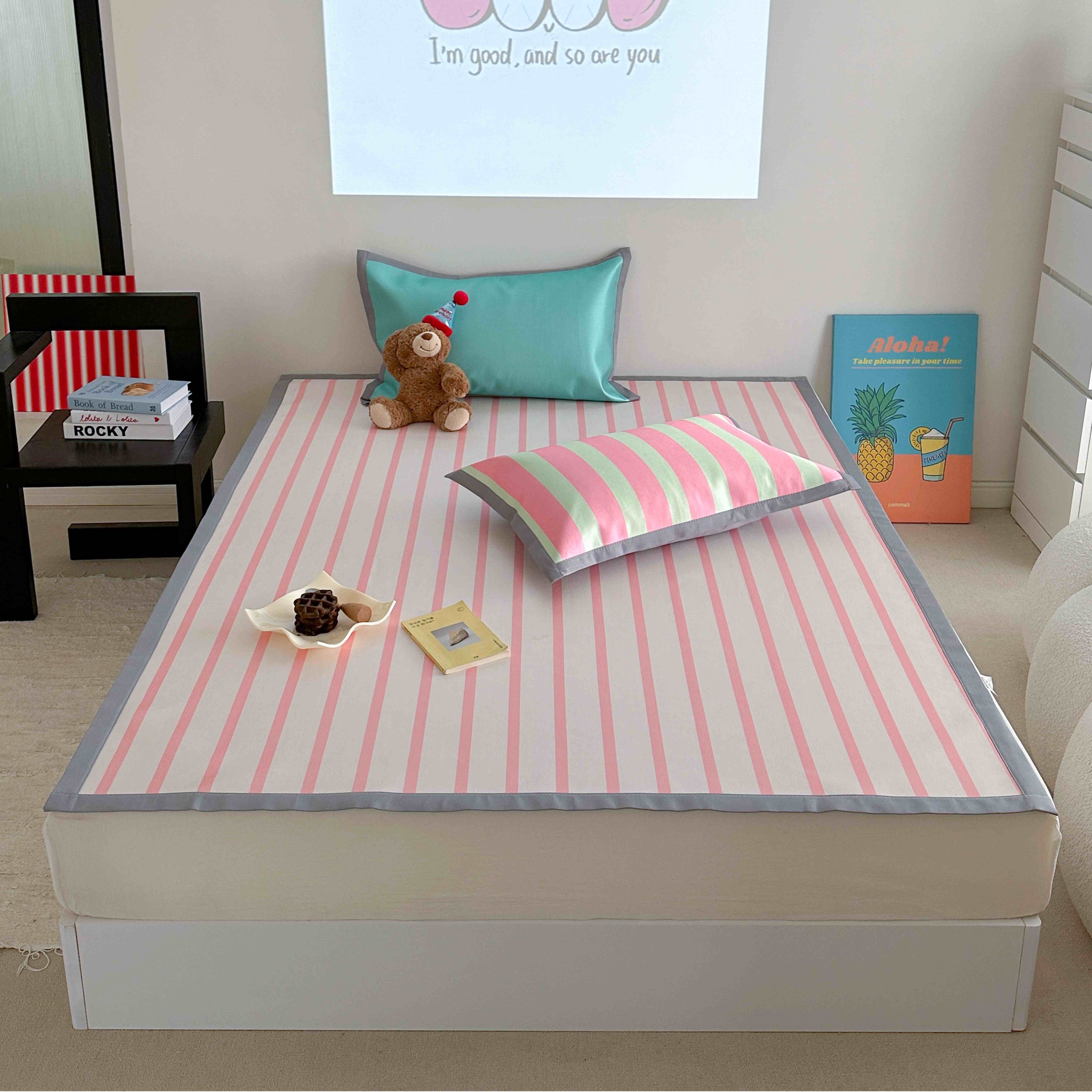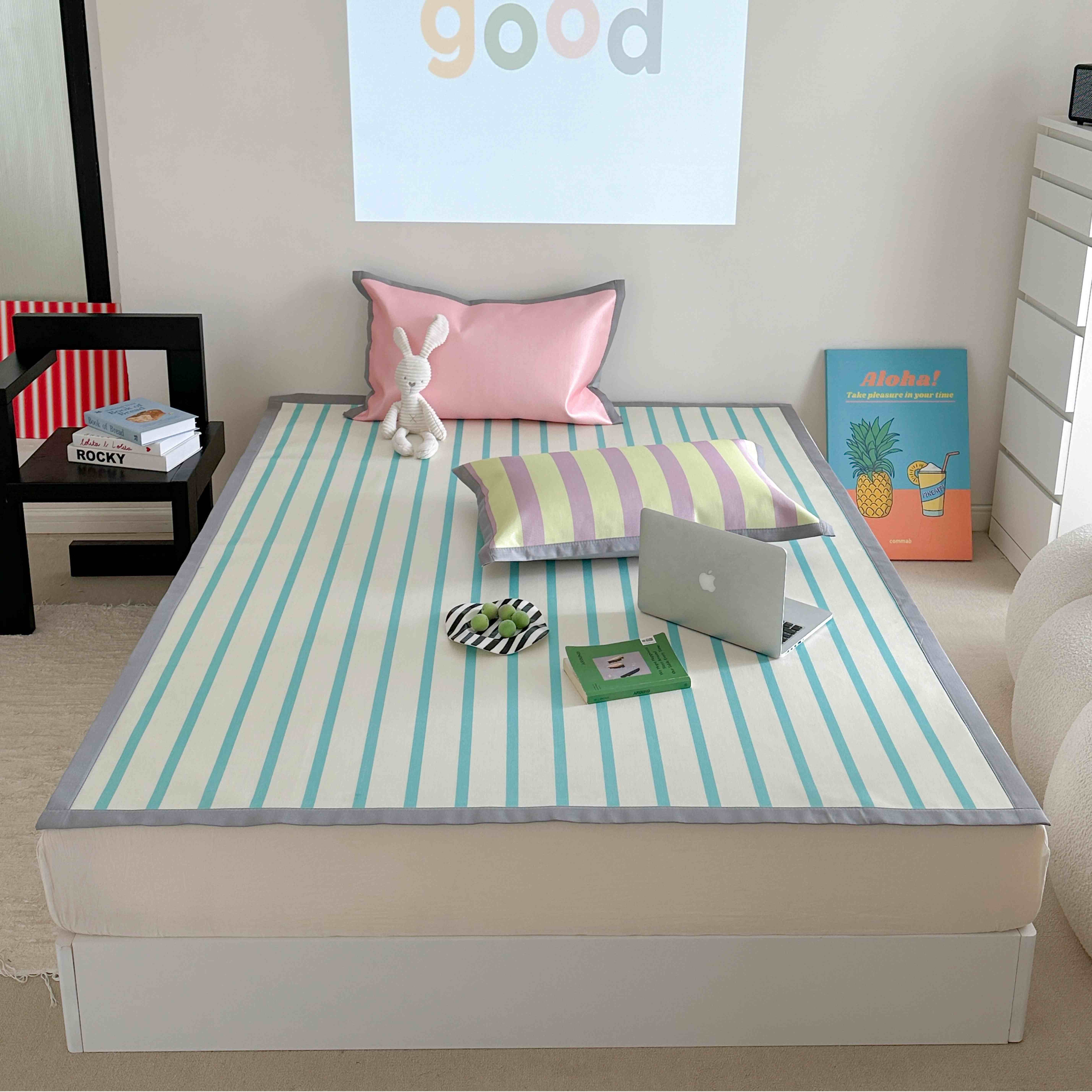 柚子YOUTH 2024新款900D简约条纹拼色冰丝席 绿条三拼-床笠款