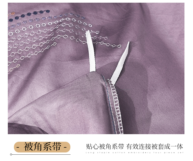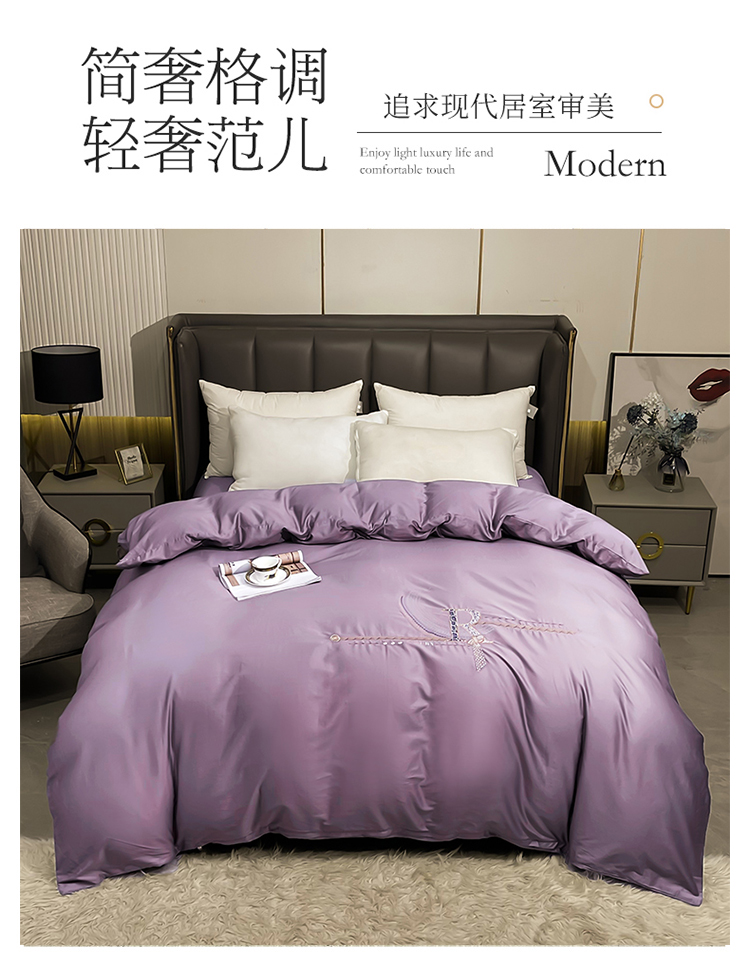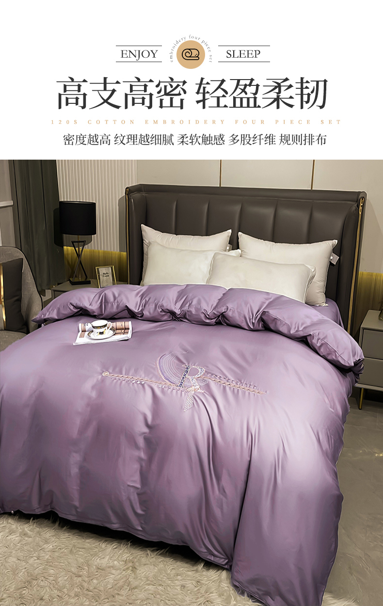 当前位置: 91家纺网 > 商品网购 > 床品套件 > 四件套 > 长绒棉四件套 > 艾迪尚家纺 2025新款120S刺绣长绒棉四六件套 时尚紫