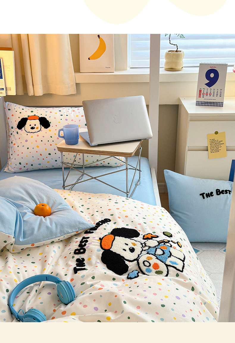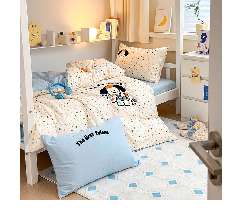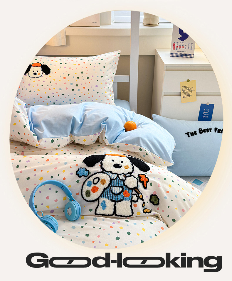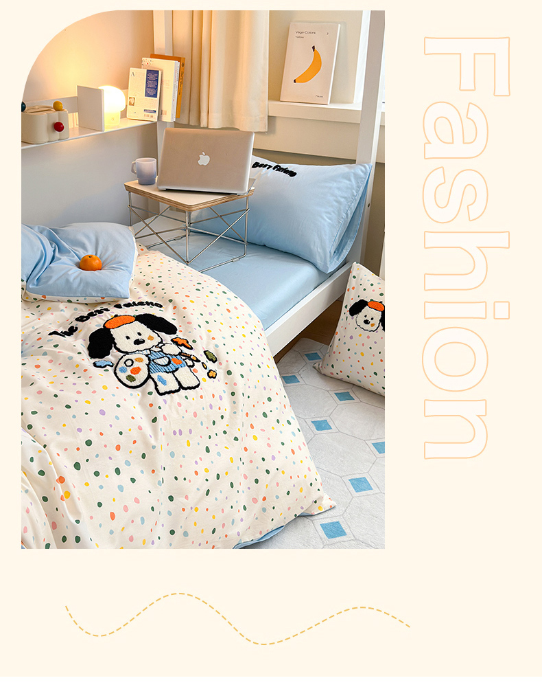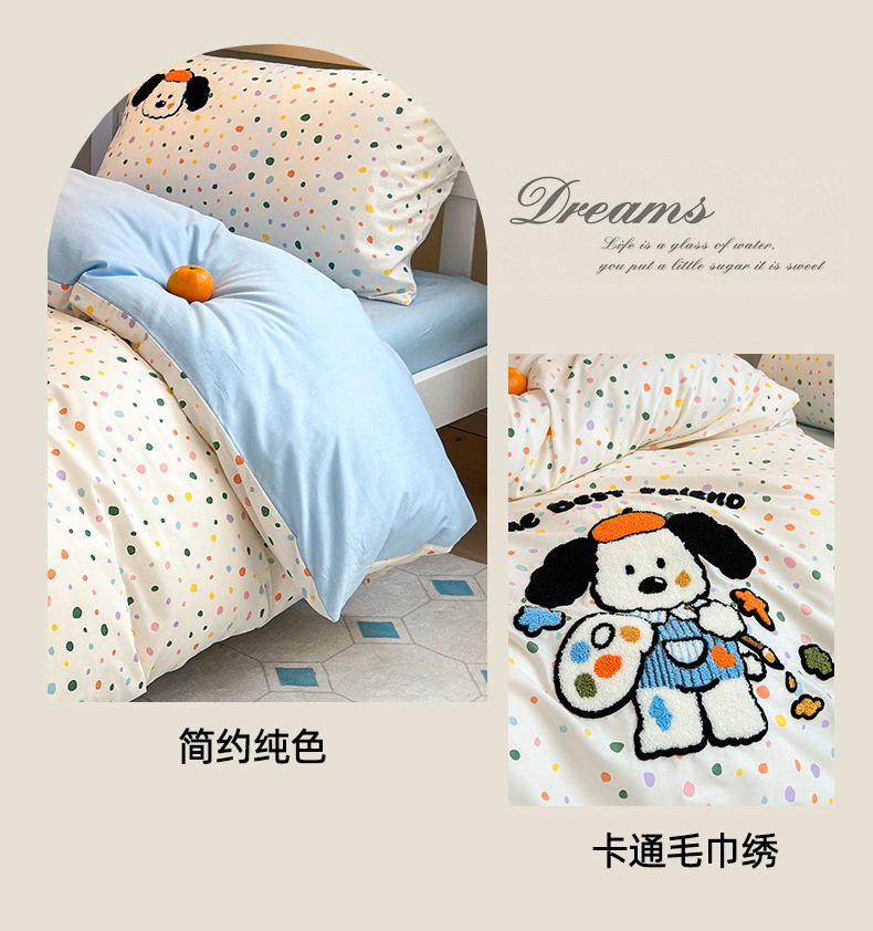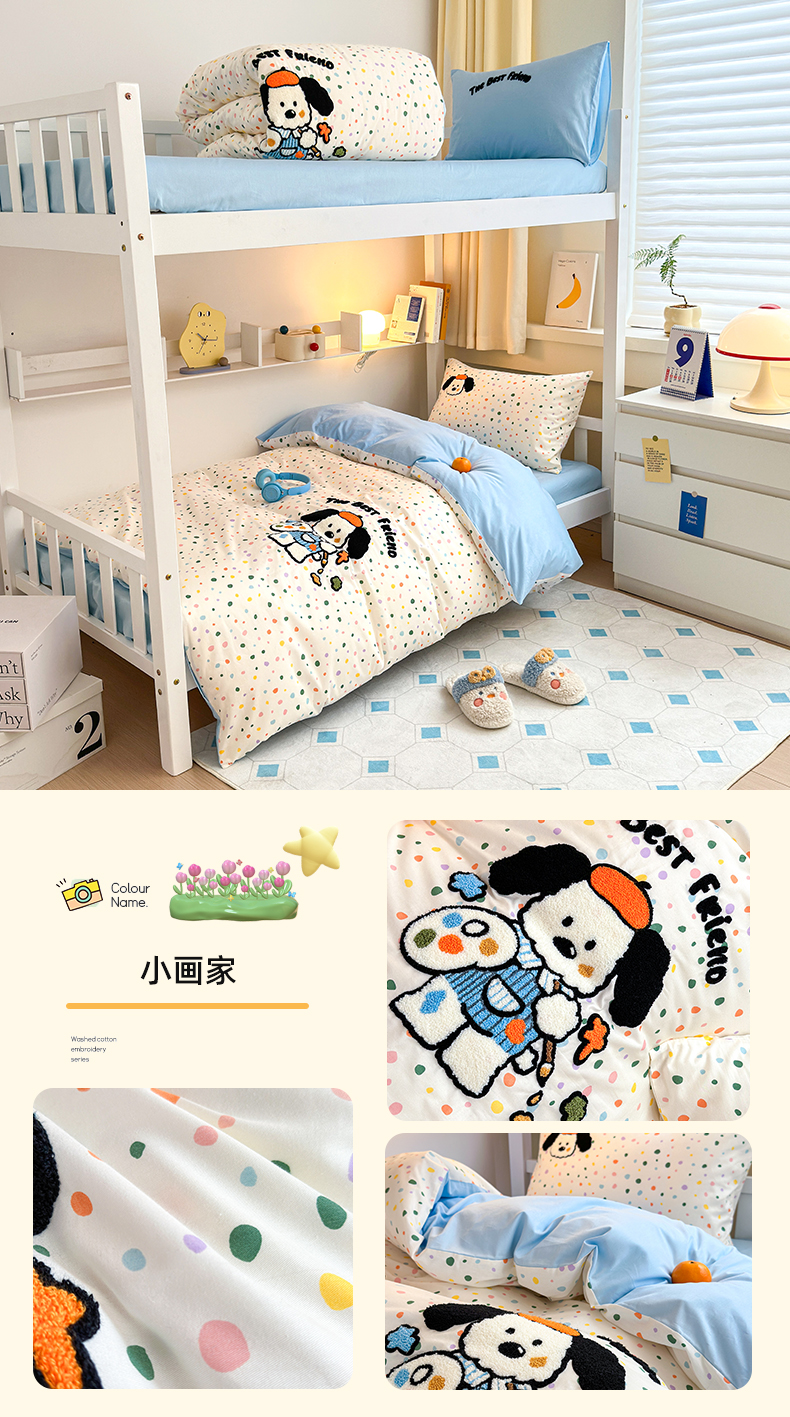 当前位置: 91家纺网 > 商品网购 > 床品套件 > 四件套 > 全棉普通四件套 > 锦觅 2024新款学生季全棉小清新绣花时尚复古卡通三件套四件套 小画家