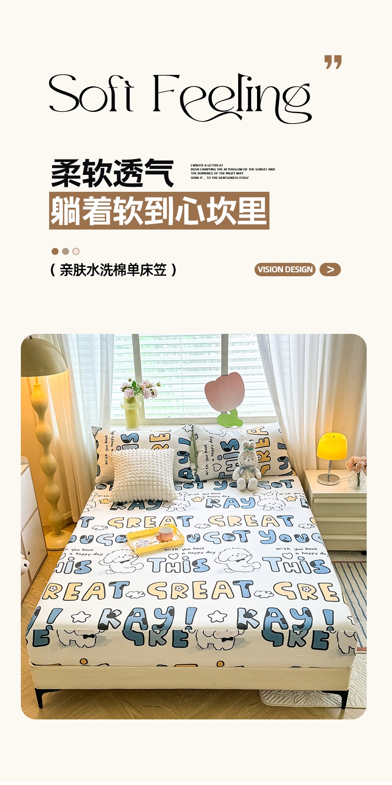 妖妖家纺 2024新款超柔软糯亲肤水洗棉单床笠 棒棒比熊
