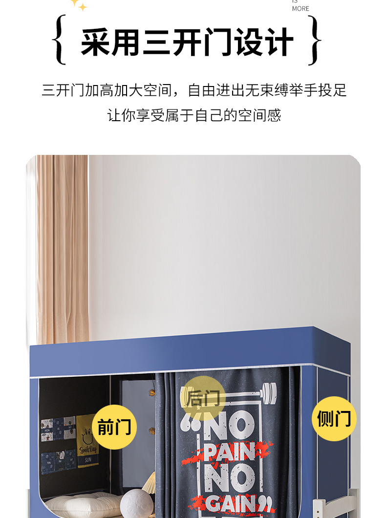 90上铺(带靠墙帘):90宽*190长*110高(自连接烤漆支架) | ¥103.00 |