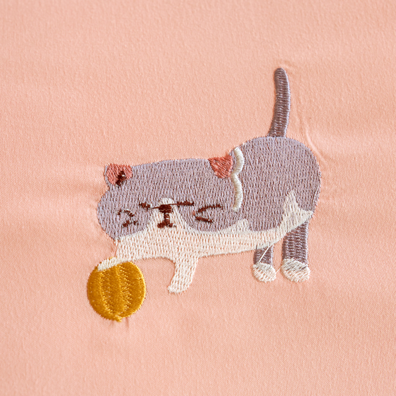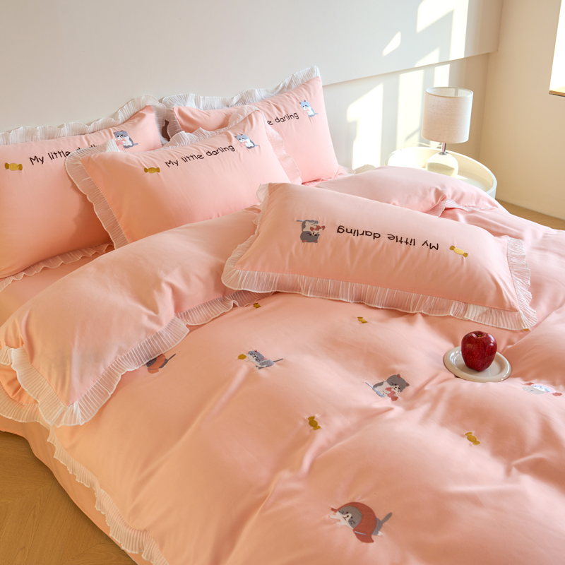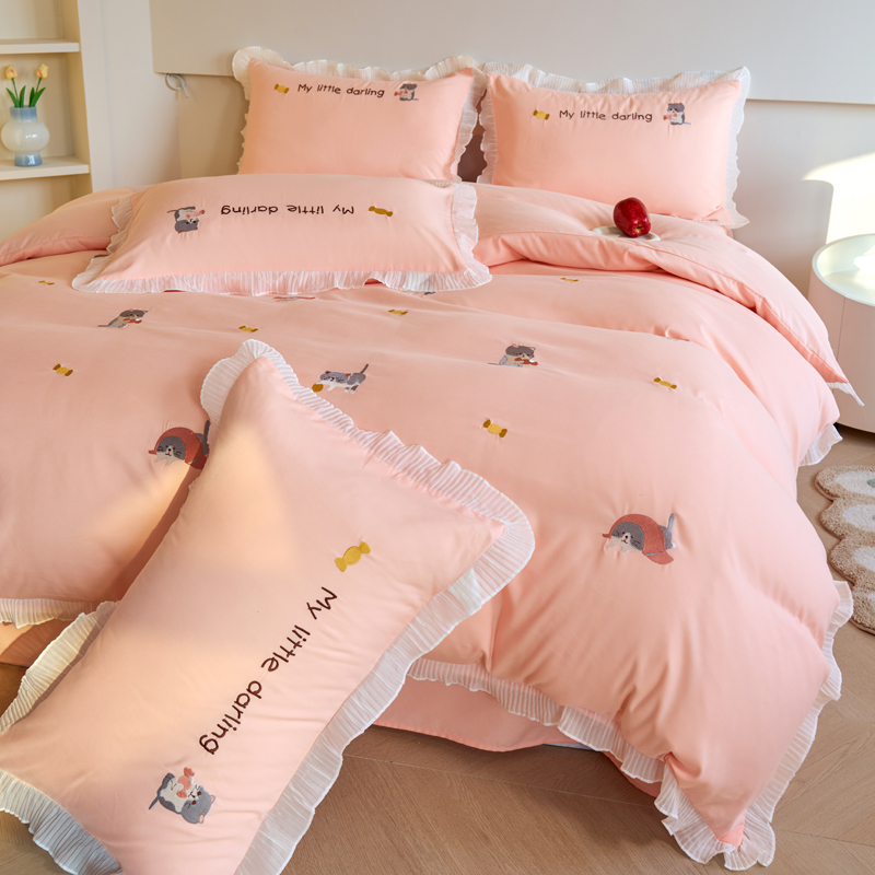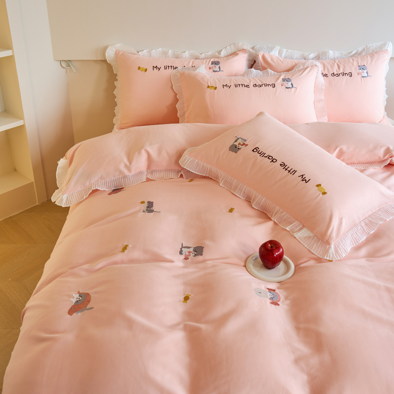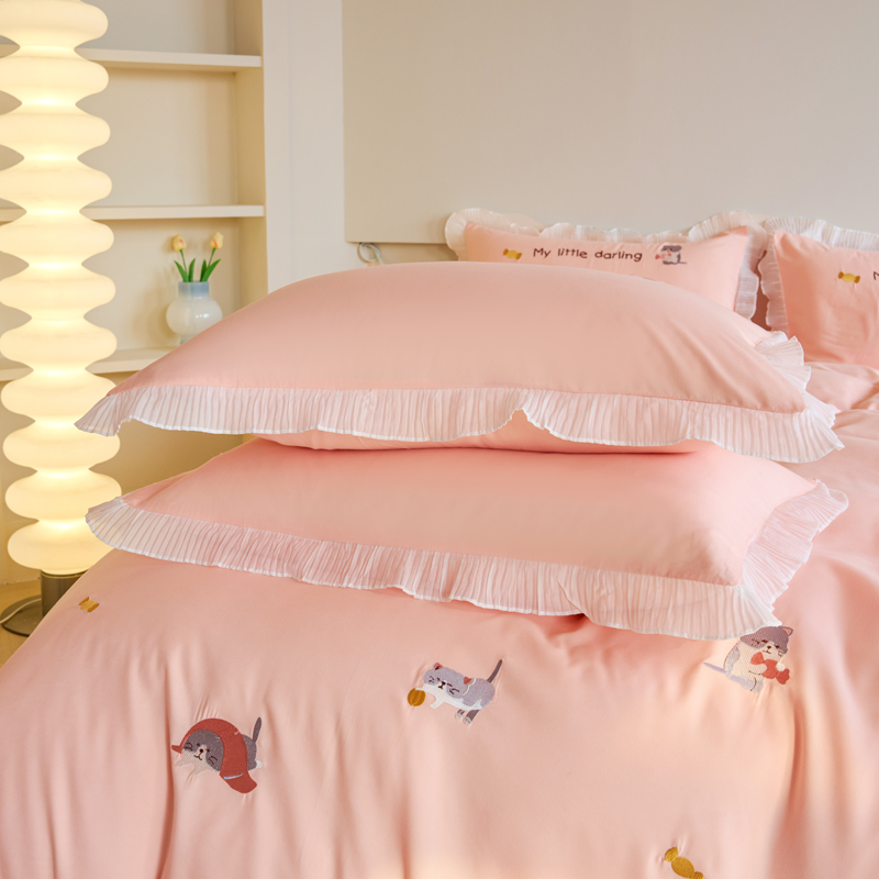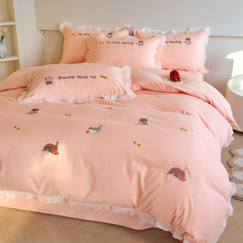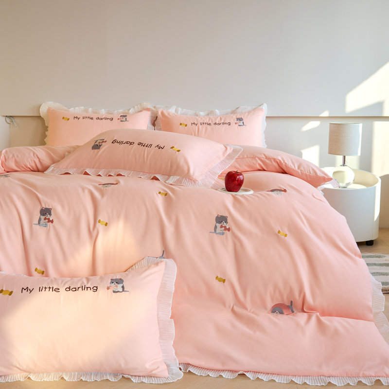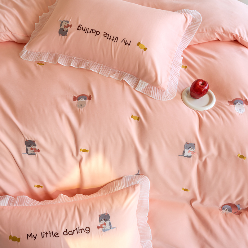 梧桐家居 2024新款全棉磨毛刺绣四件套-糖果小猫 糖果小猫-浅粉