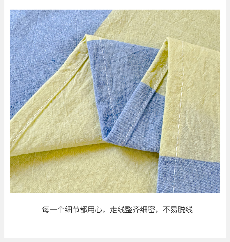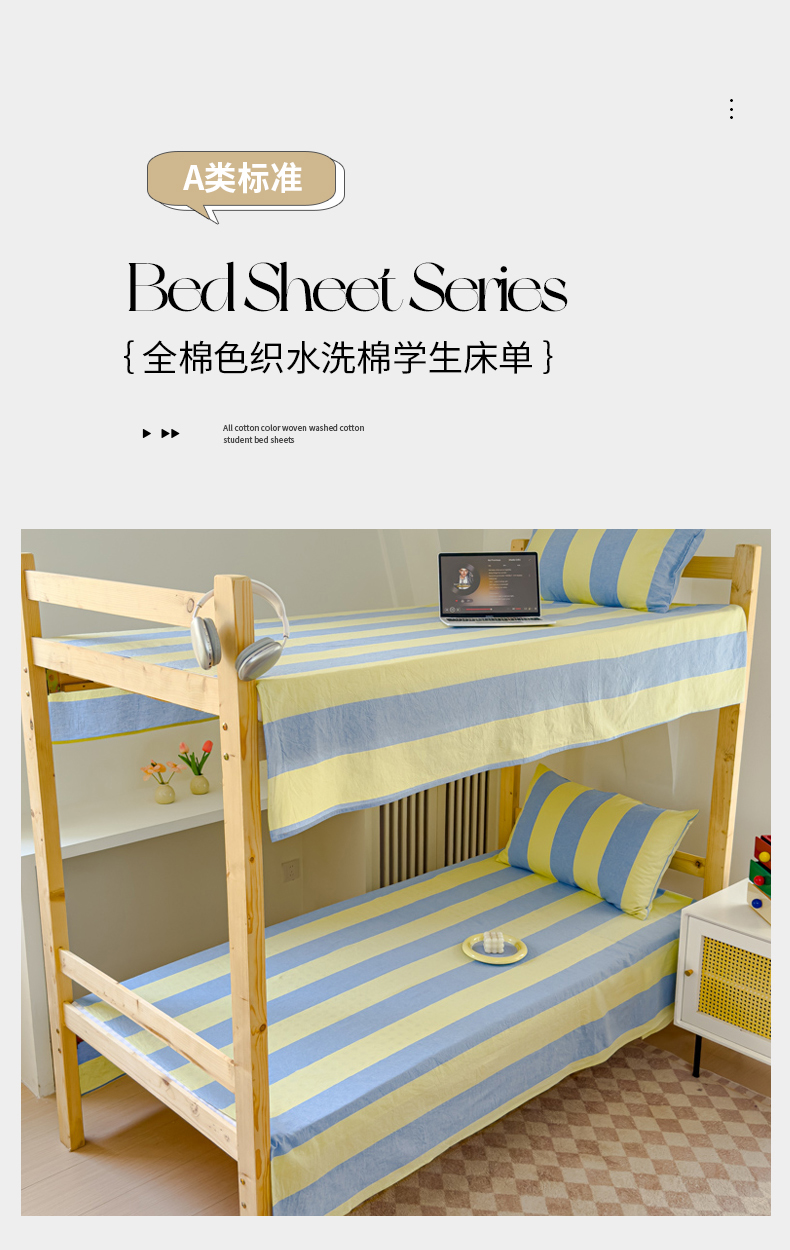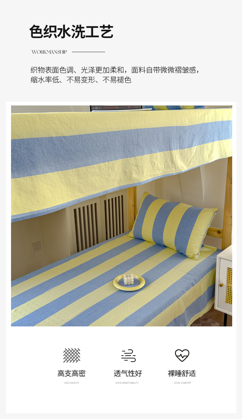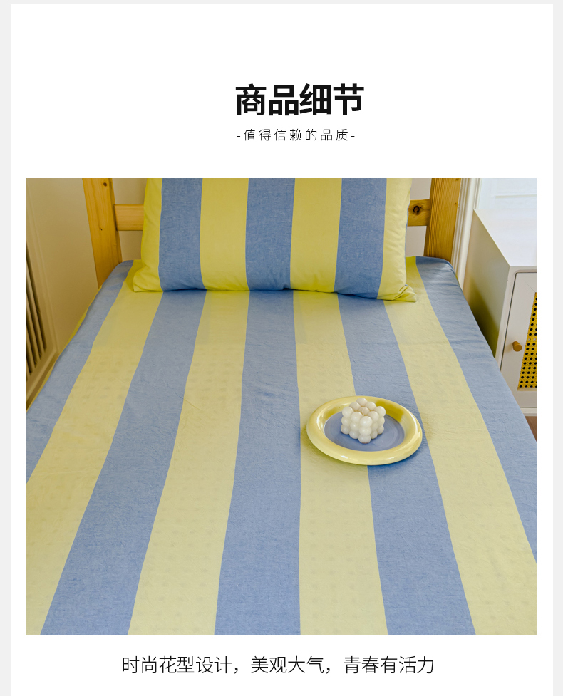 • 91家纺网 家纺一手货源 找家纺 金丝鸟家纺 2024新款A类全棉色织水洗棉单床单系列(学生床) 黄蓝大竖条