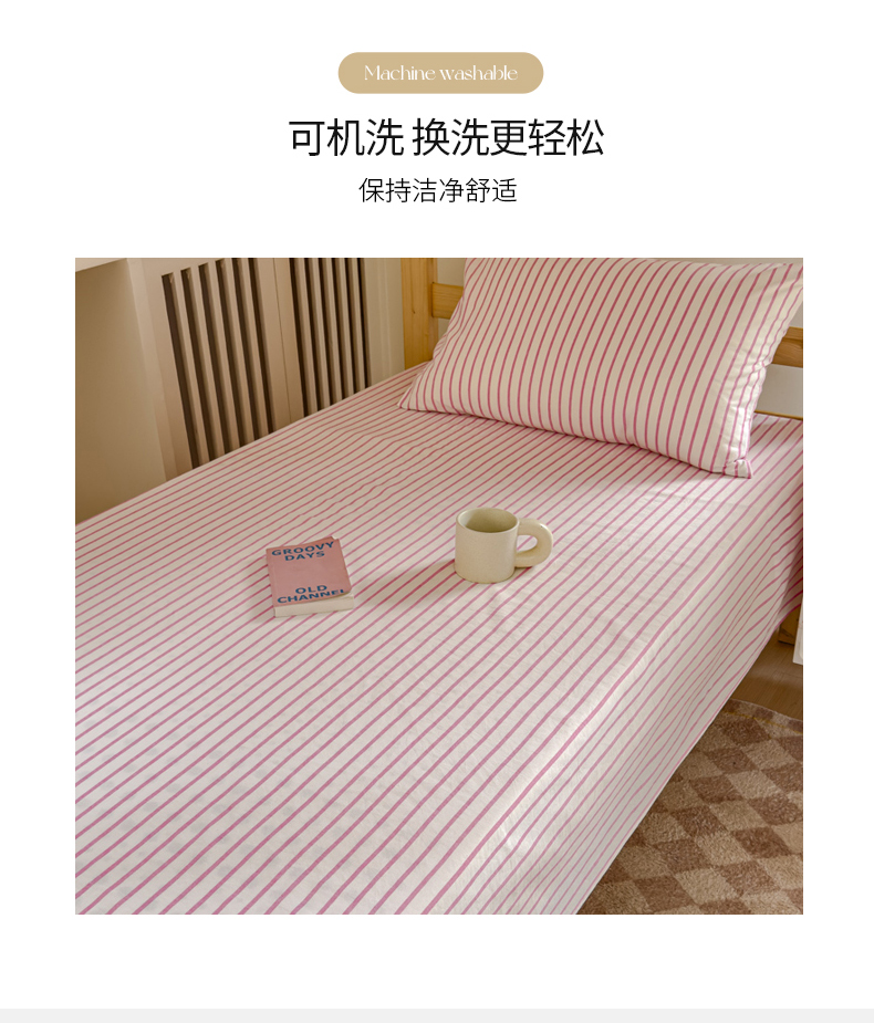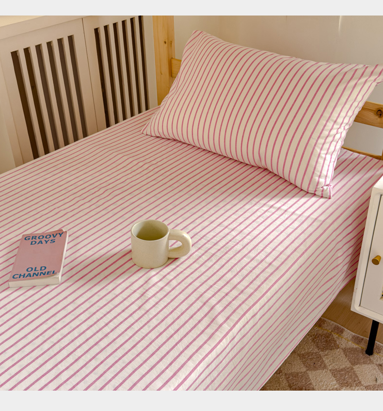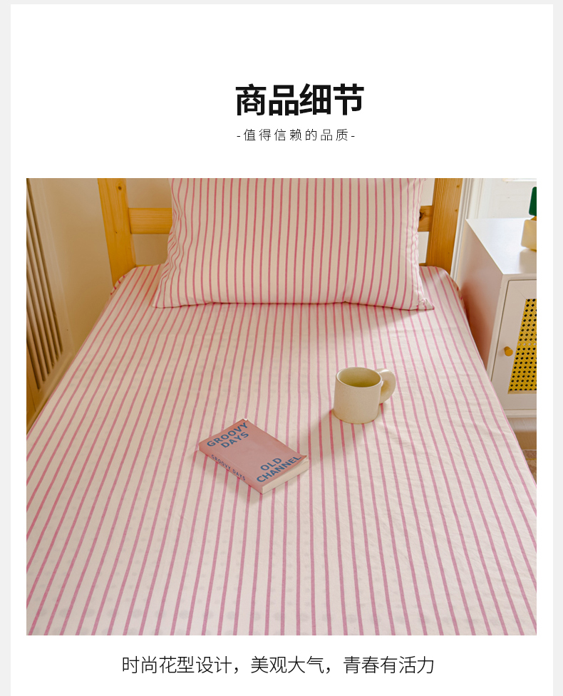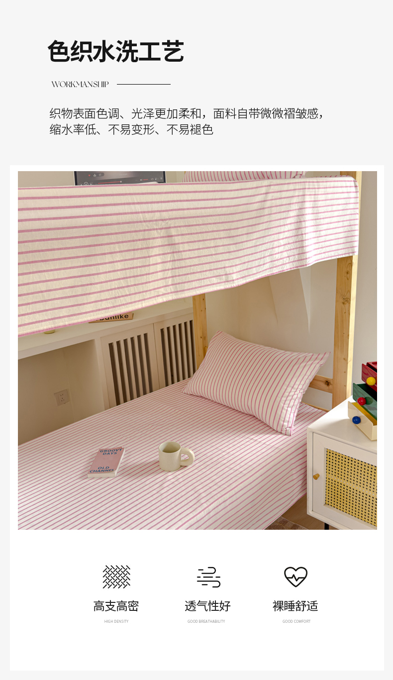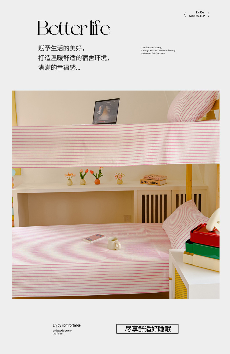 金丝鸟家纺 2024新款A类全棉色织水洗棉单床单系列(学生床) 玫红中条