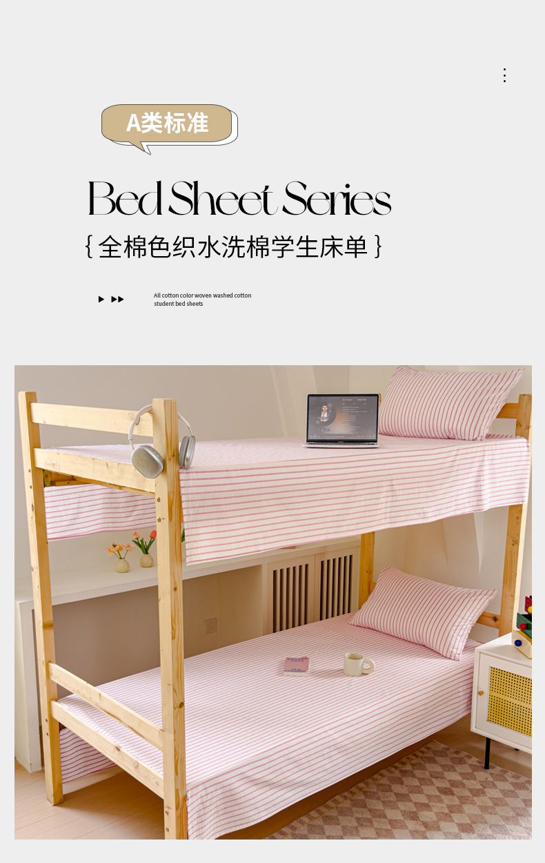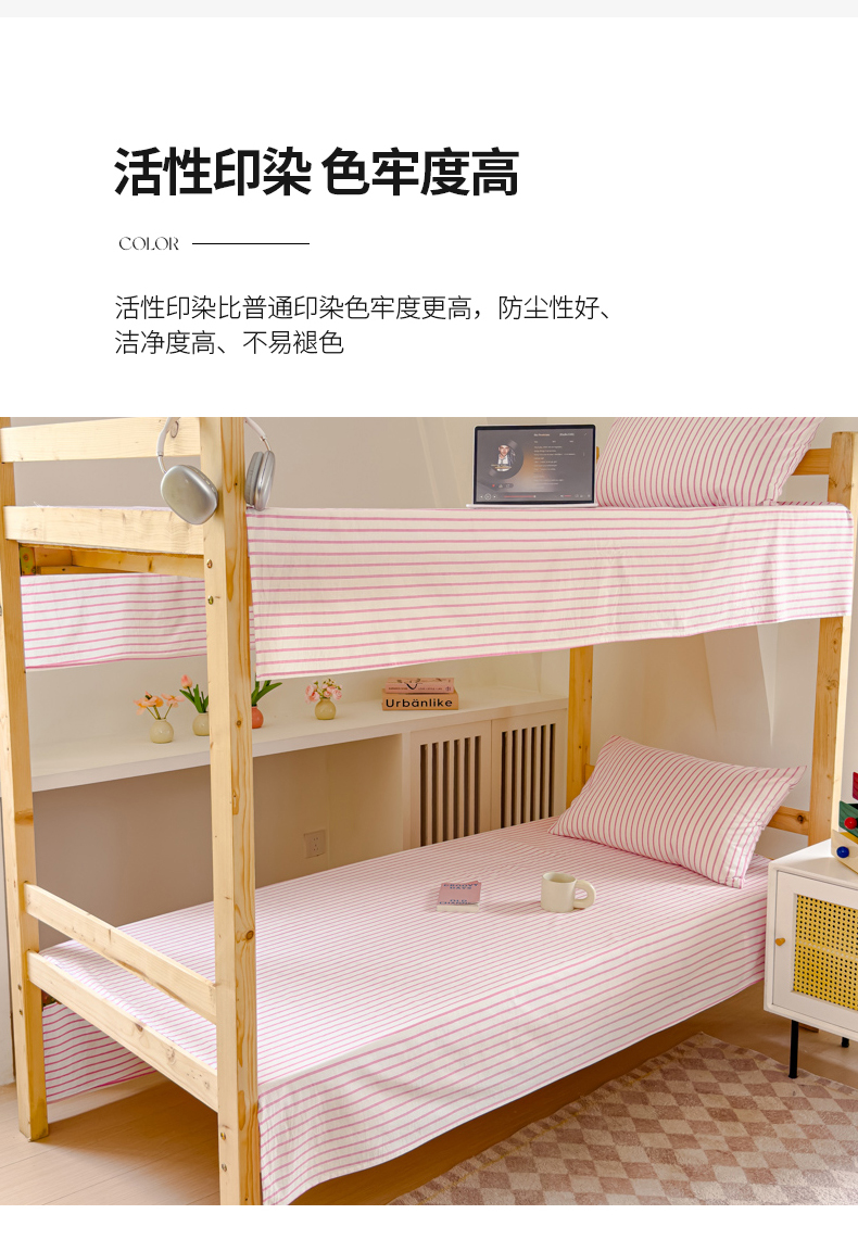 • 91家纺网 家纺一手货源 找家纺 金丝鸟家纺 2024新款A类全棉色织水洗棉单床单系列(学生床) 玫红中条