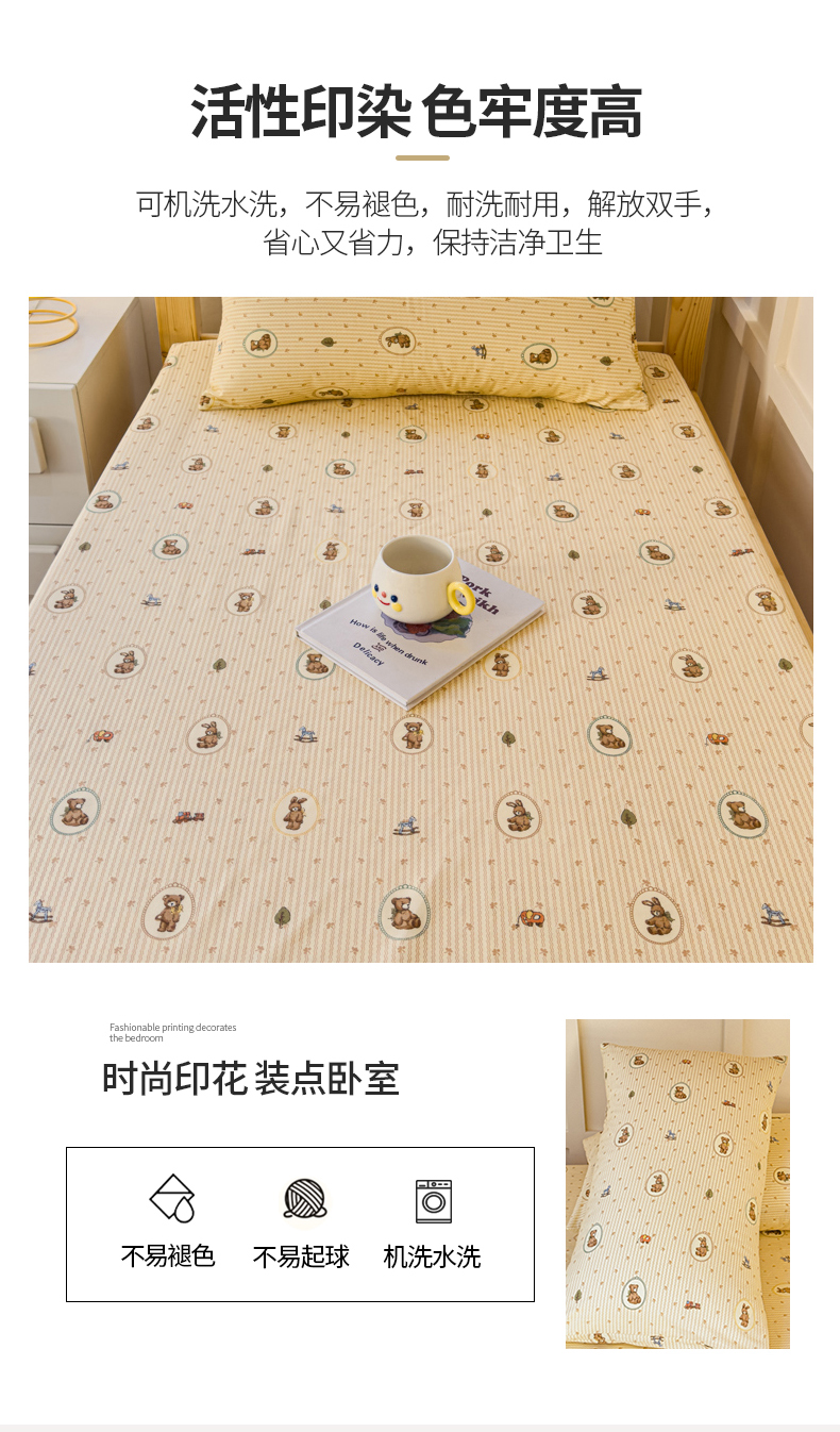 • 91家纺网 家纺一手货源 找家纺 金丝鸟家纺 2024新款全棉小清新印花单床笠系列(学生床) 美美熊