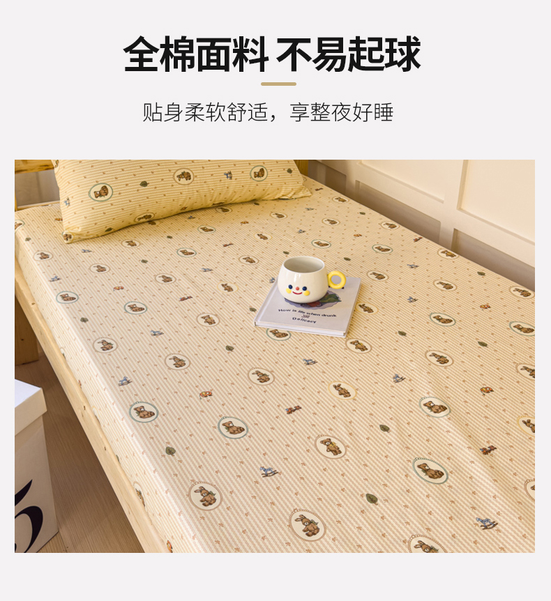 金丝鸟家纺 2024新款全棉小清新印花单床笠系列(学生床) 美美熊