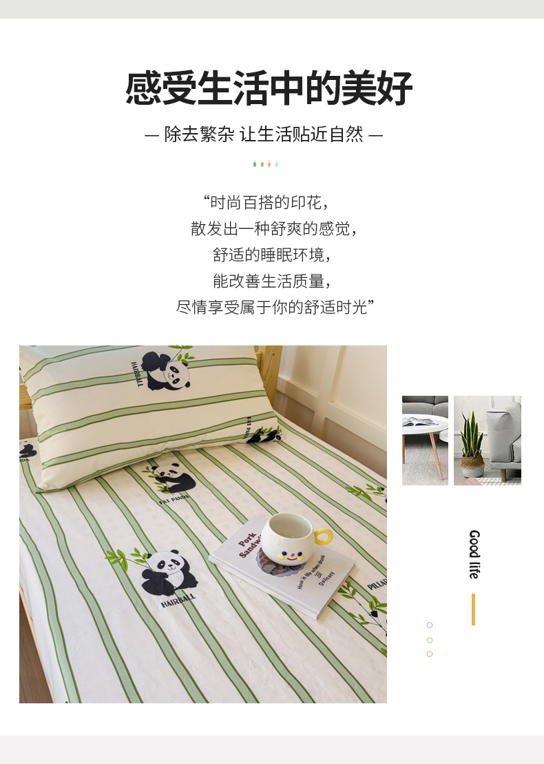 • 91家纺网 家纺一手货源 找家纺 金丝鸟家纺 2024新款全棉小清新印花单床笠系列(学生床) 竹林米兜