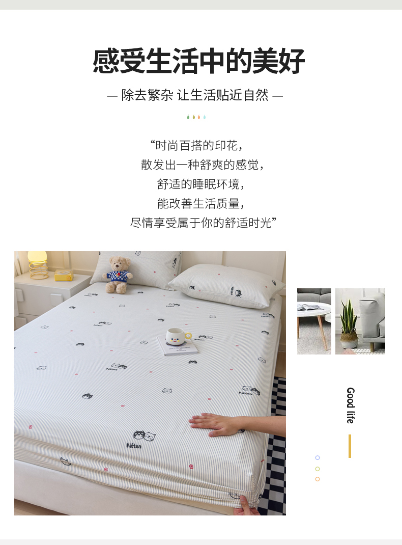 当前位置: 91家纺网 > 商品网购 > 床上用品 > 床笠 > 金丝鸟家纺 2024新款全棉小清新印花单床笠系列 小萌猫