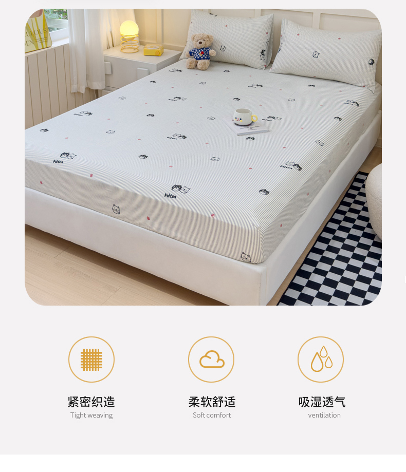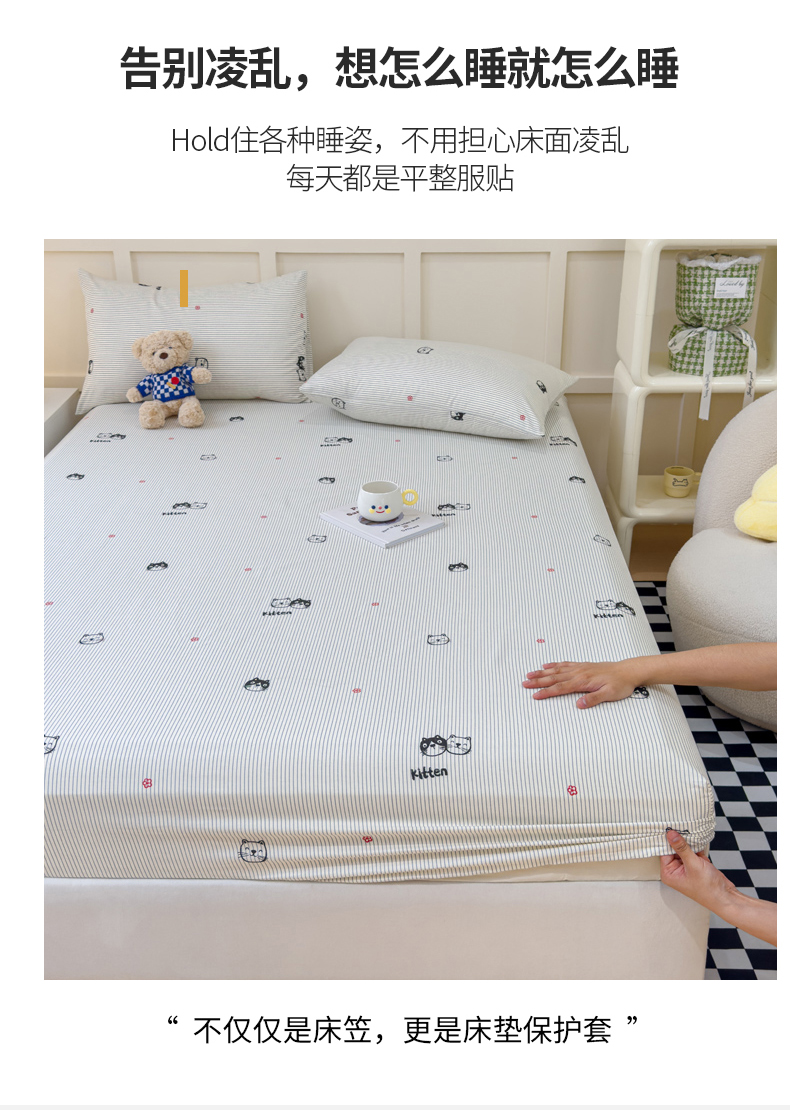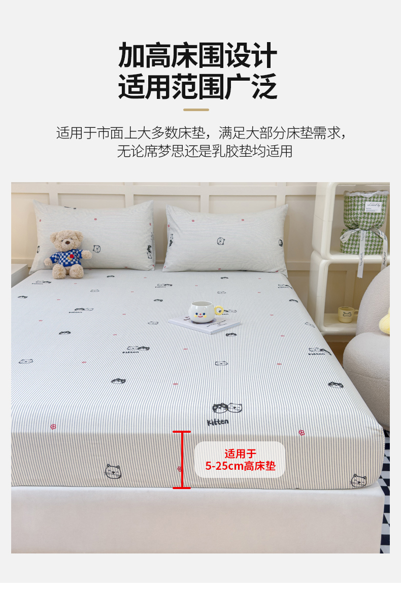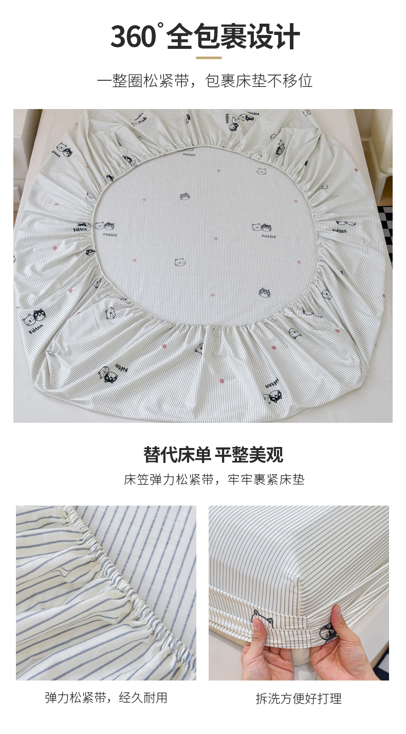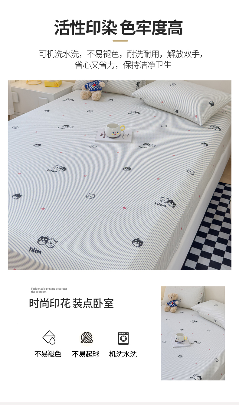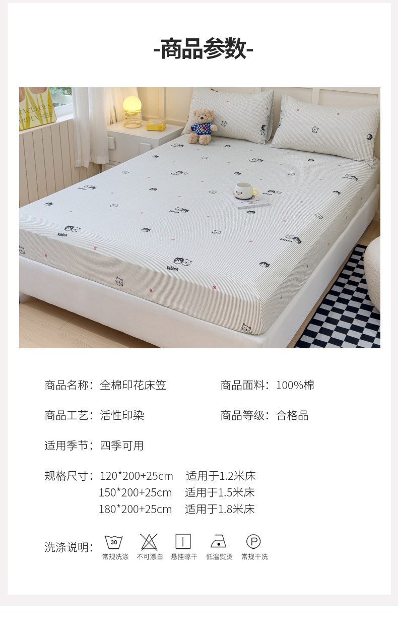 • 91家纺网 家纺一手货源 找家纺 金丝鸟家纺 2024新款全棉小清新印花单床笠系列 小萌猫