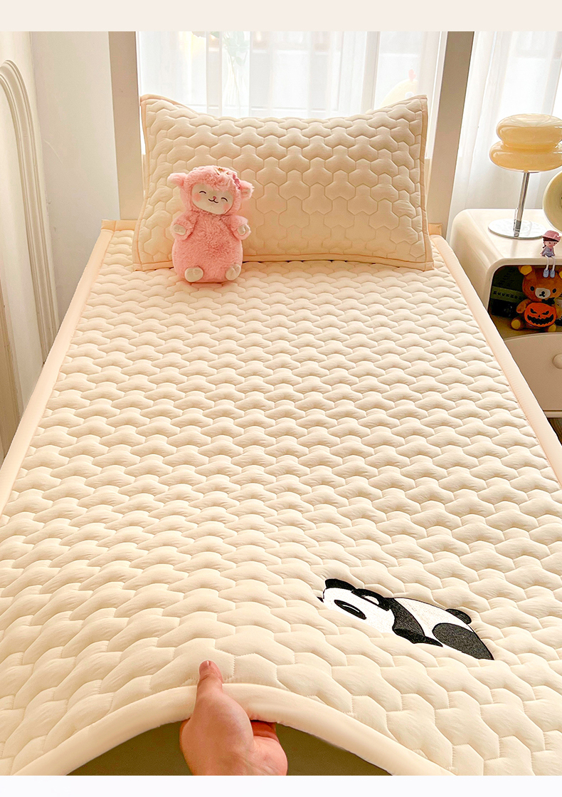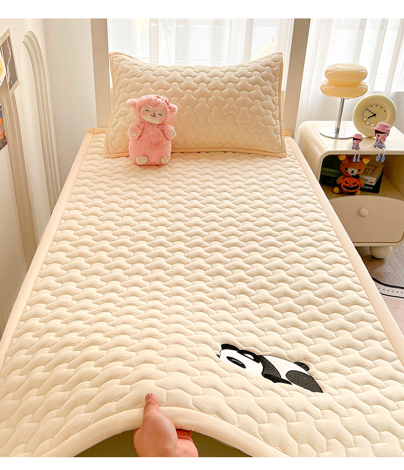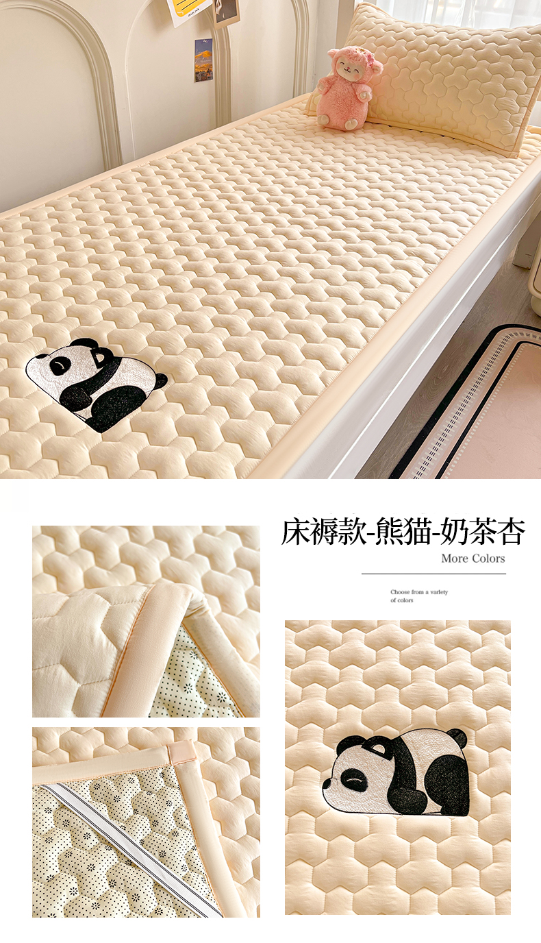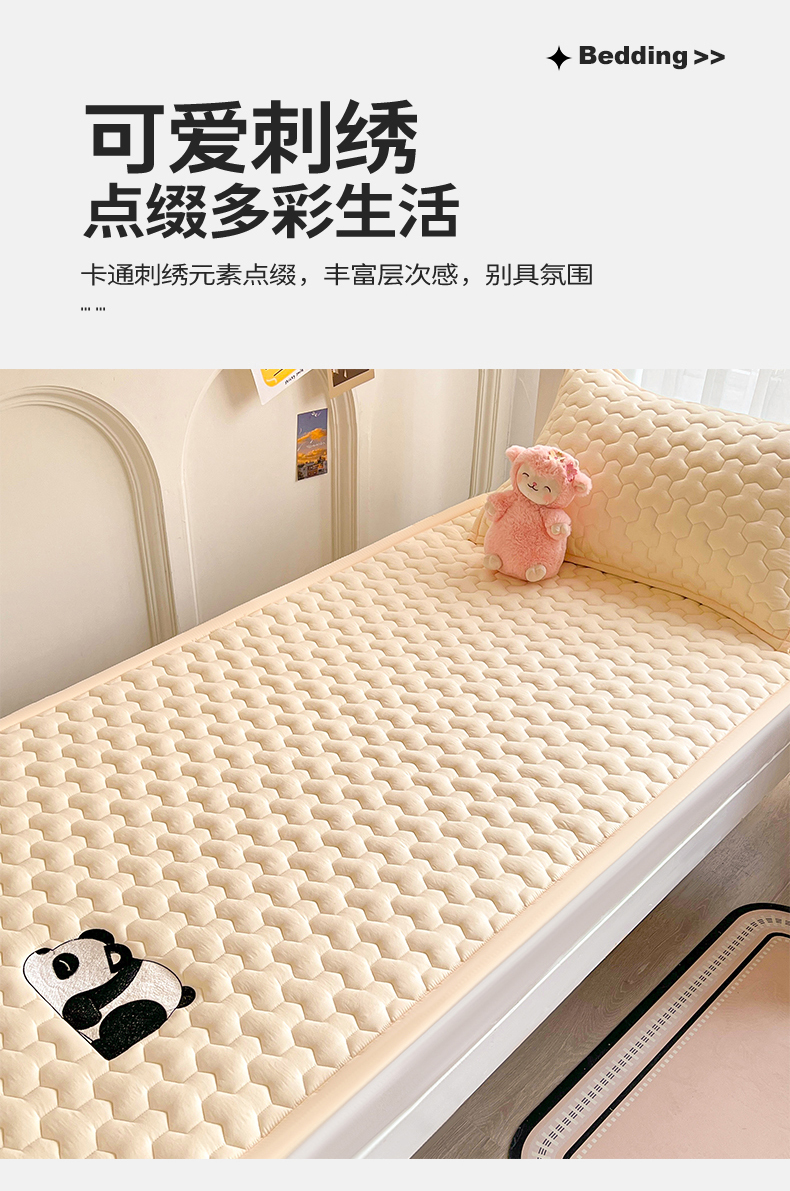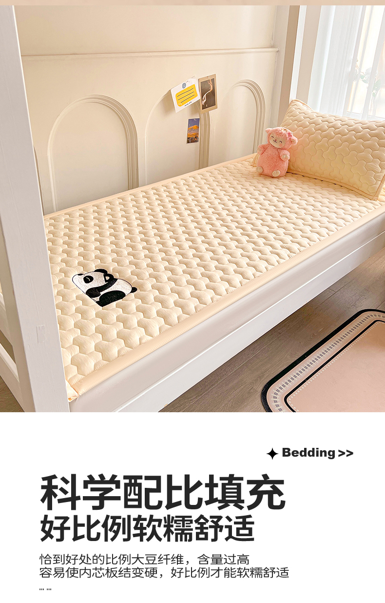 当前位置: 91家纺网 > 商品网购 > 床垫/床褥 > 普通床垫 > 雯豆家纺 2024新款纯色绣花床垫床褥床护垫上下铺学生宿舍单人床护垫-熊猫 床褥款-熊猫-奶茶杏