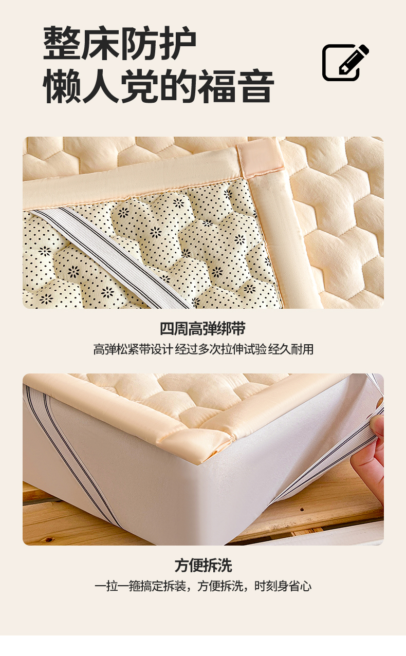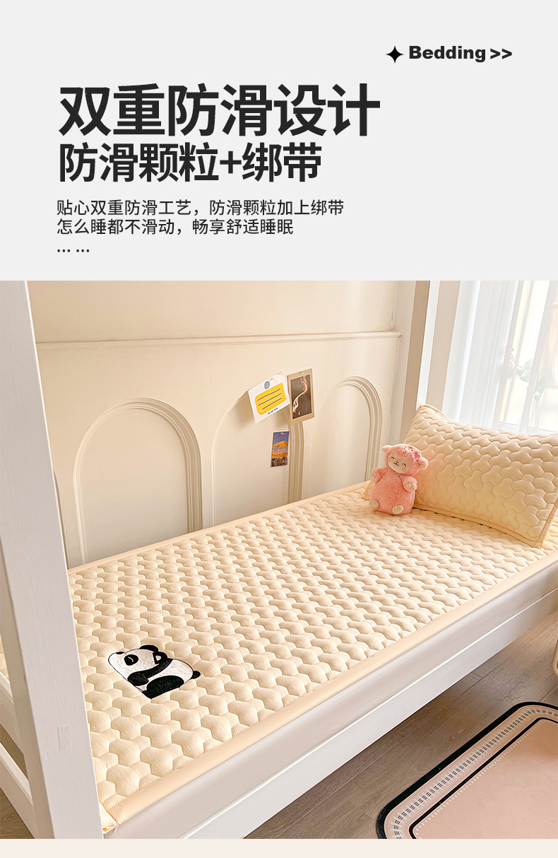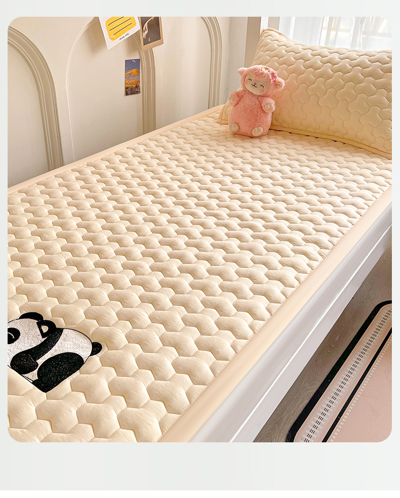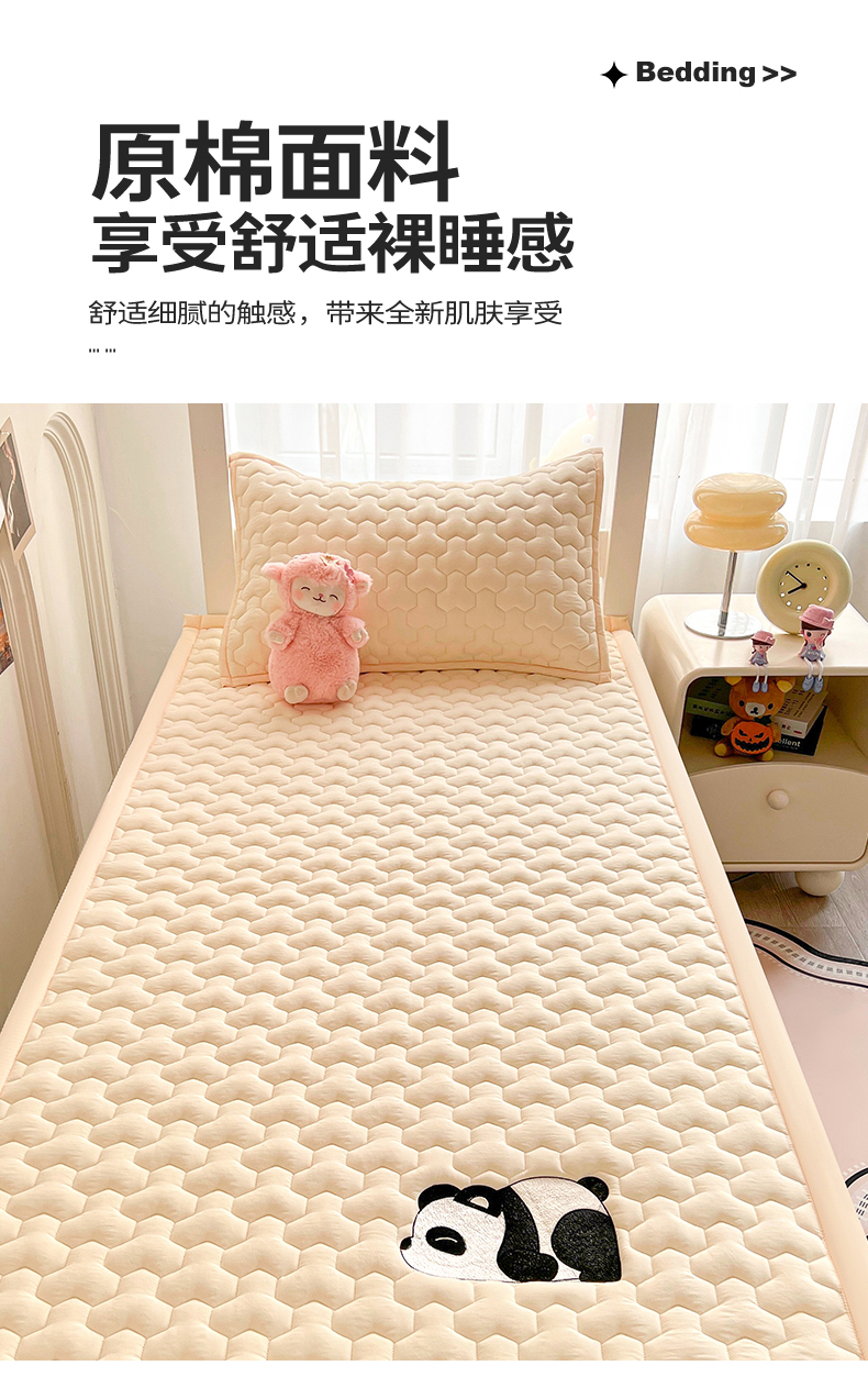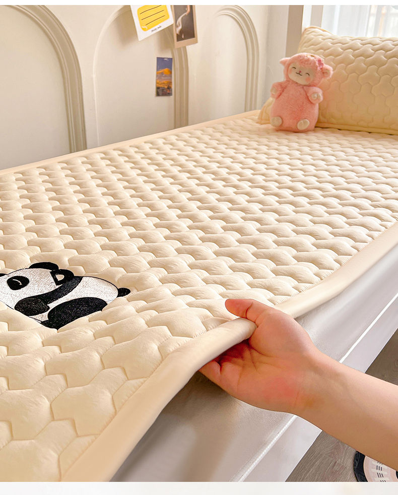 当前位置: 91家纺网 > 商品网购 > 床垫/床褥 > 普通床垫 > 雯豆家纺 2024新款纯色绣花床垫床褥床护垫上下铺学生宿舍单人床护垫-熊猫 床褥款-熊猫-奶茶杏