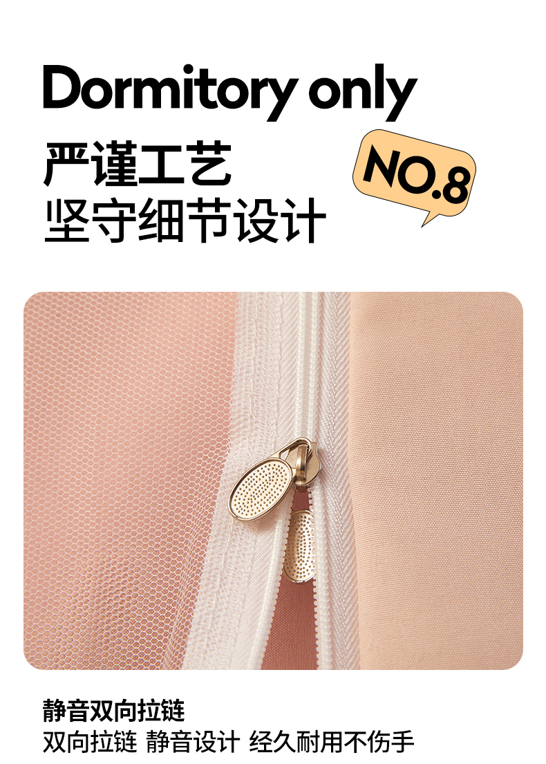 当前位置: 91家纺网 > 商品网购 > 床上用品 > 蚊帐 > 学生蚊帐 > 夏彩 2024学生新款纯色强遮光三开门防蚊防尘强遮光拉链蚊帐-88603 88603-藕粉