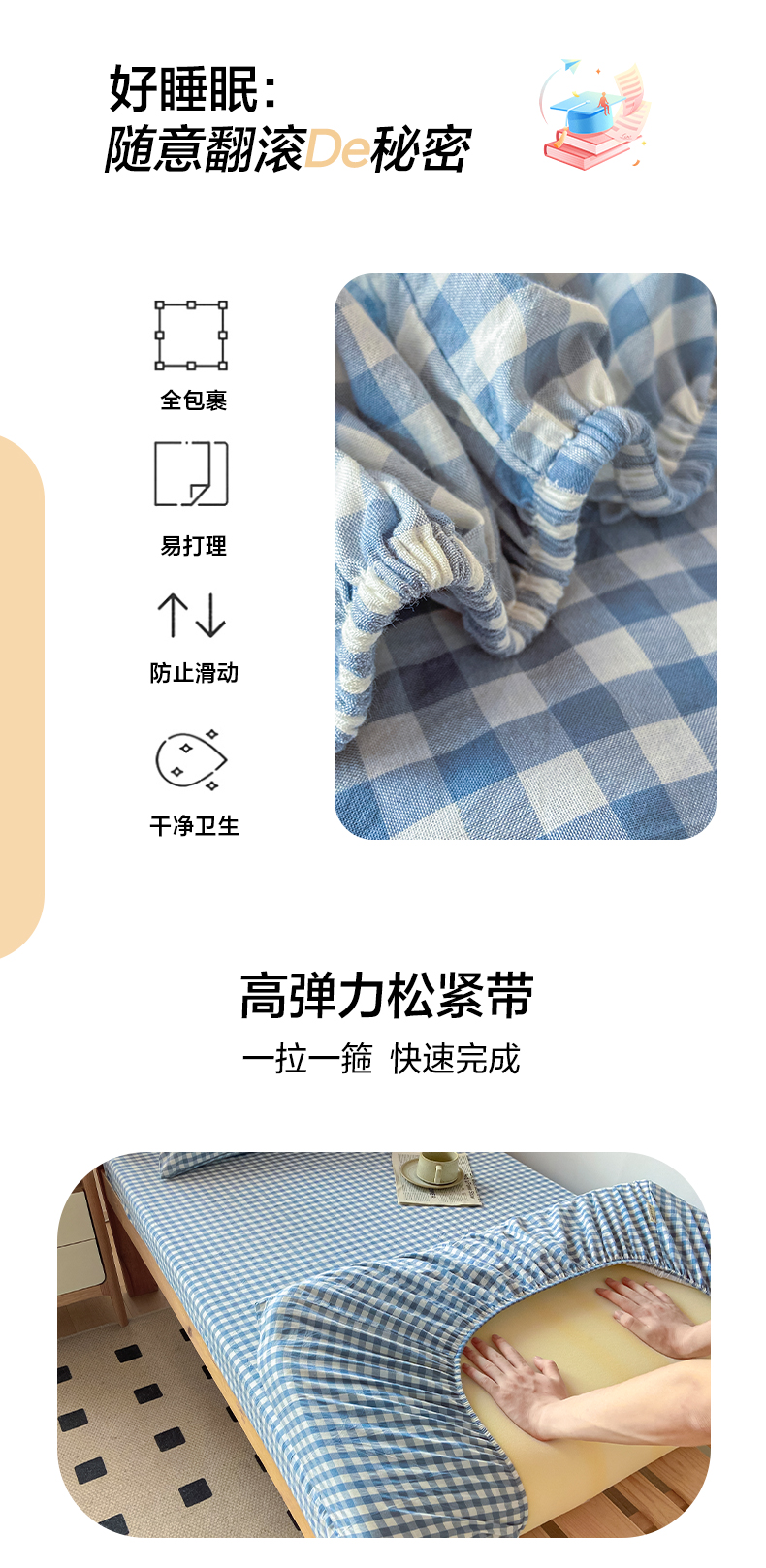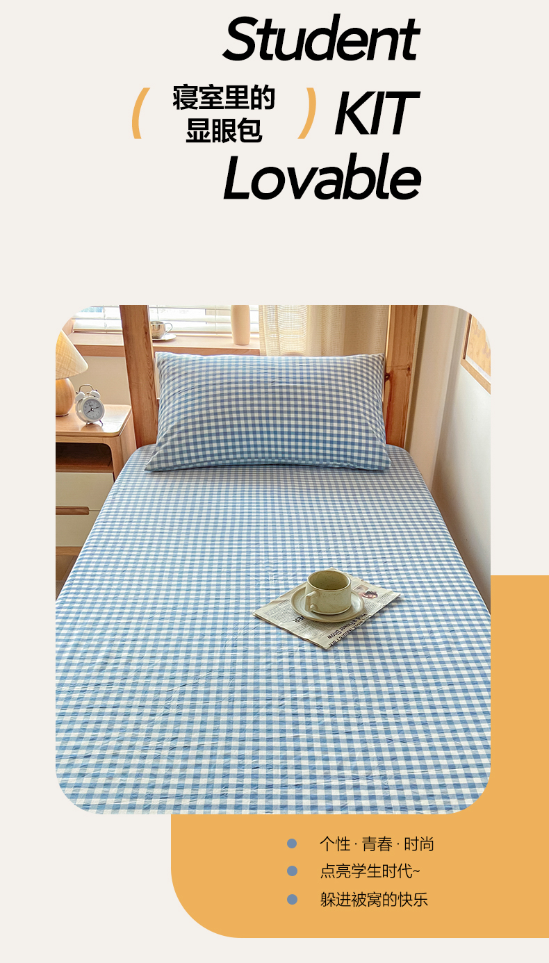 卡伦家纺 2025新款全棉色织水洗棉单层宿舍学生床笠 浅蓝小格