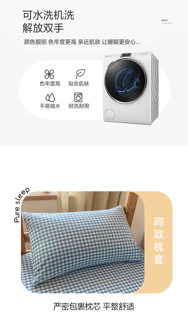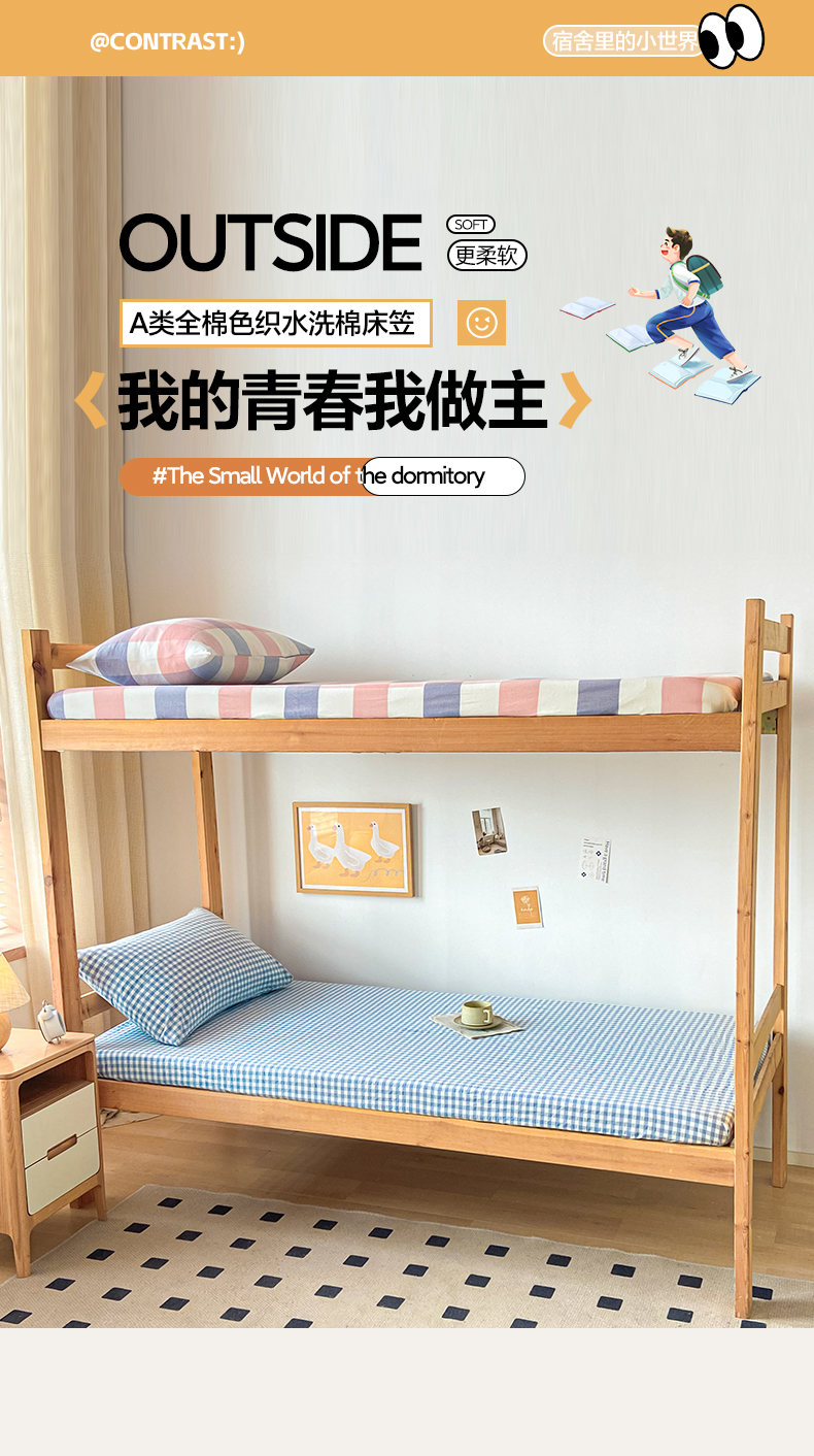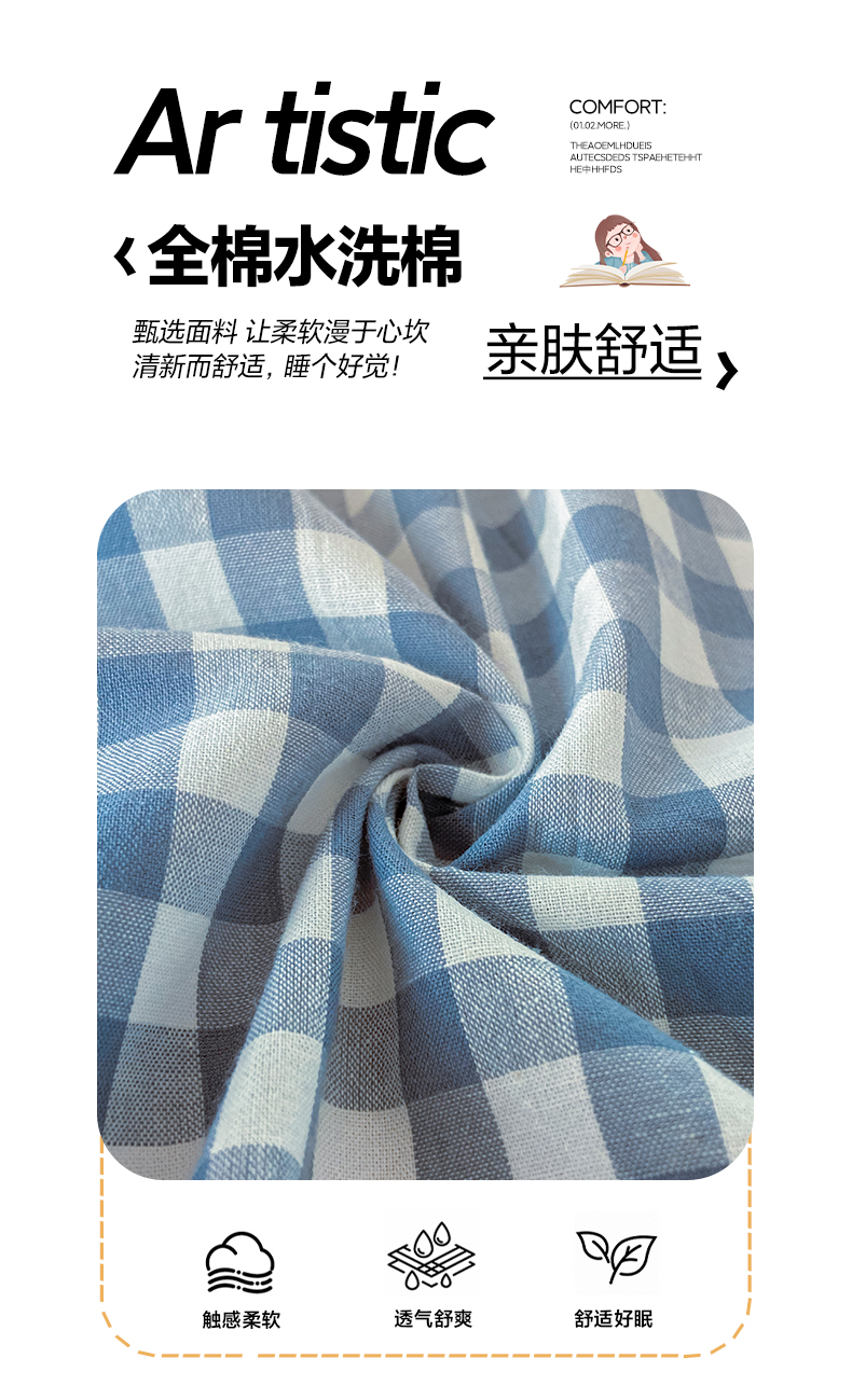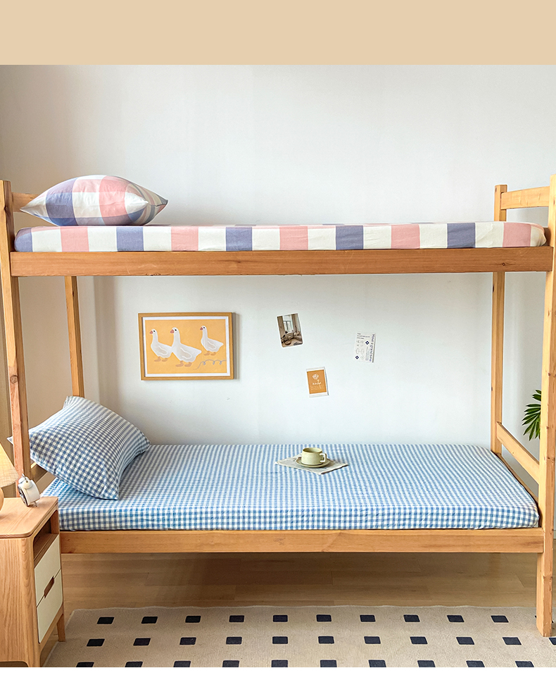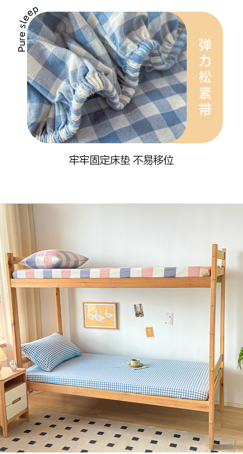 • 91家纺网 家纺一手货源 找家纺 卡伦家纺 2025新款全棉色织水洗棉单层宿舍学生床笠 浅蓝小格