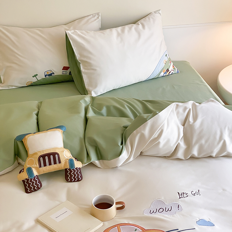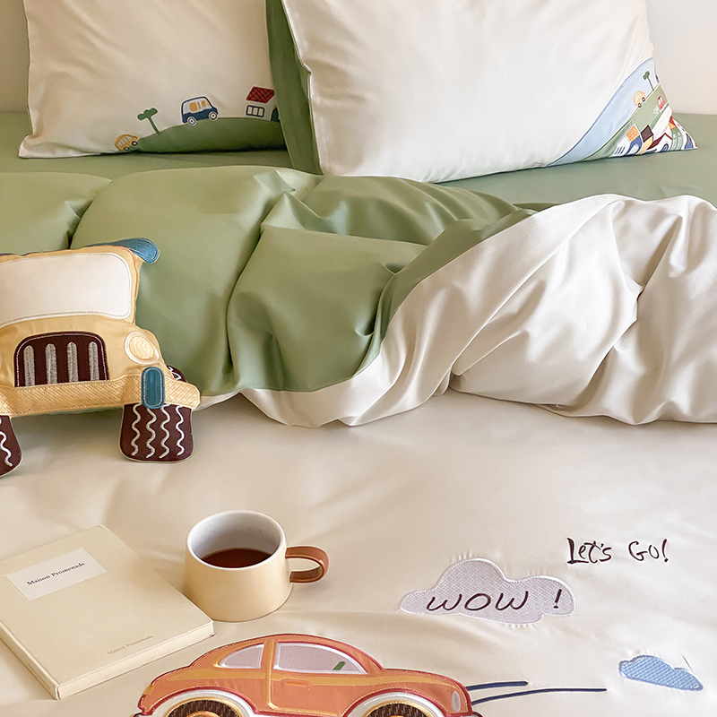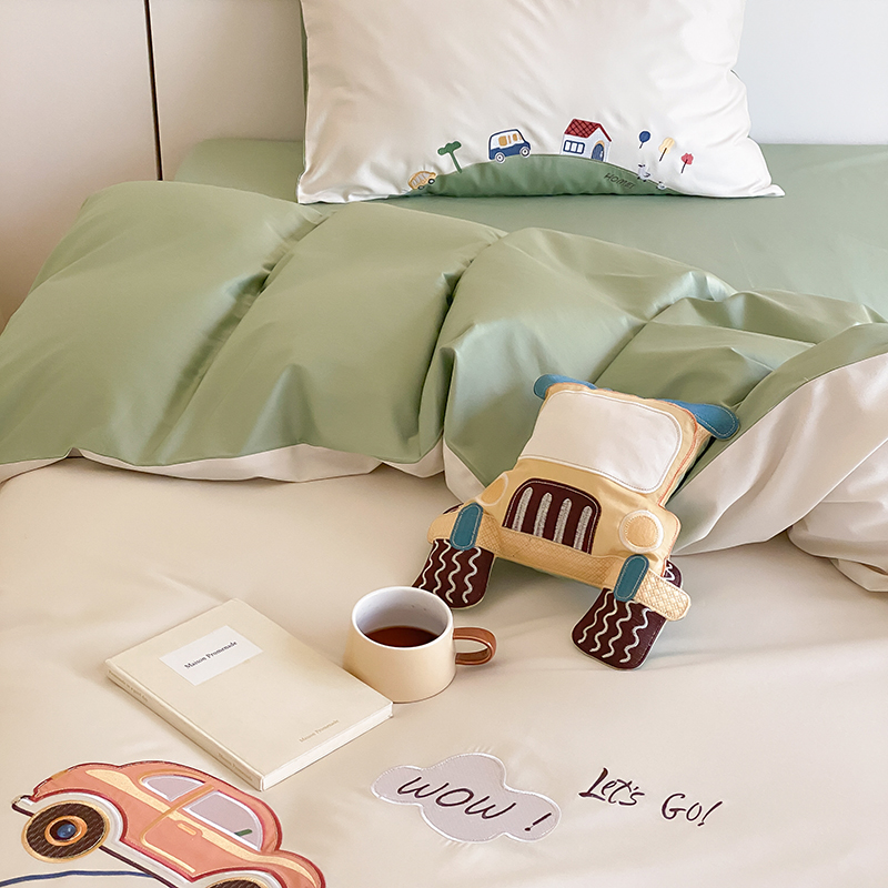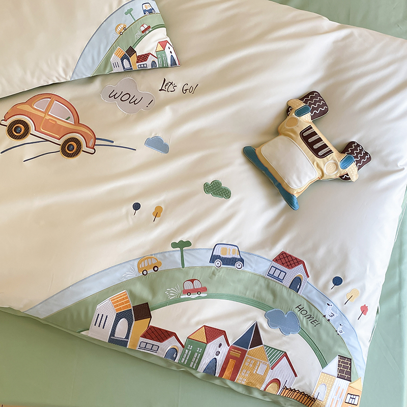 (总)星野 2025新款高克重牛奶绒贴布绣四件套-摇摇乐,摇摇乐