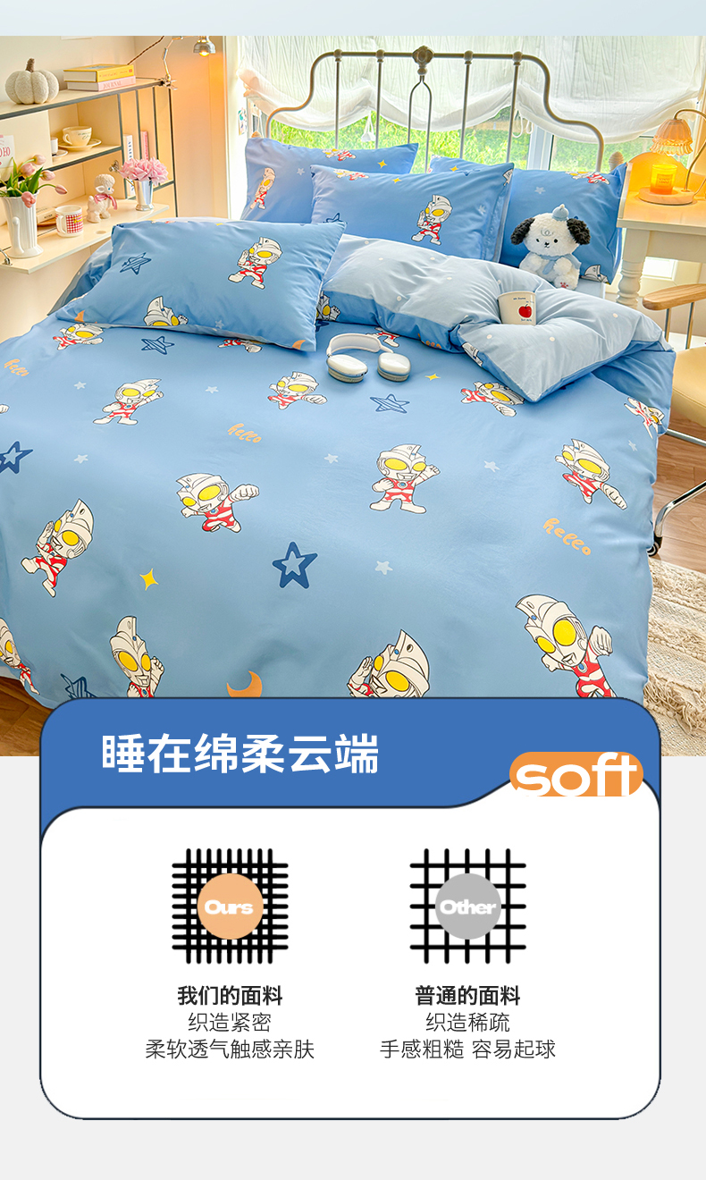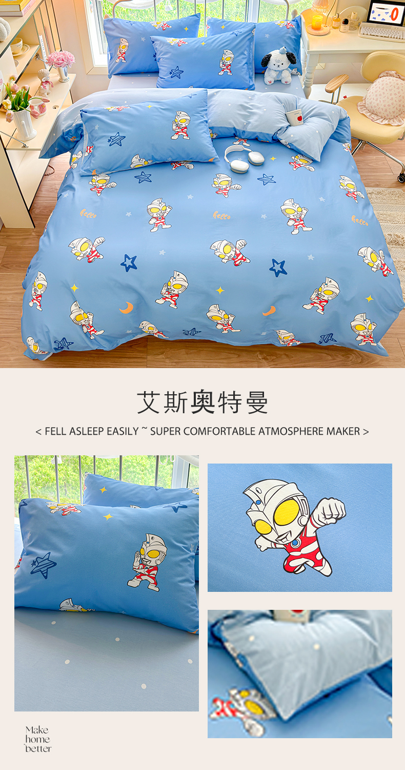 当前位置: 91家纺网 > 商品网购 > 床品套件 > 四件套 > 全棉普通四件套 > 2024新款授权经典奥特曼-三丽鸥全棉卡通四件套学生三件套【含防伪标】 艾斯奥特曼