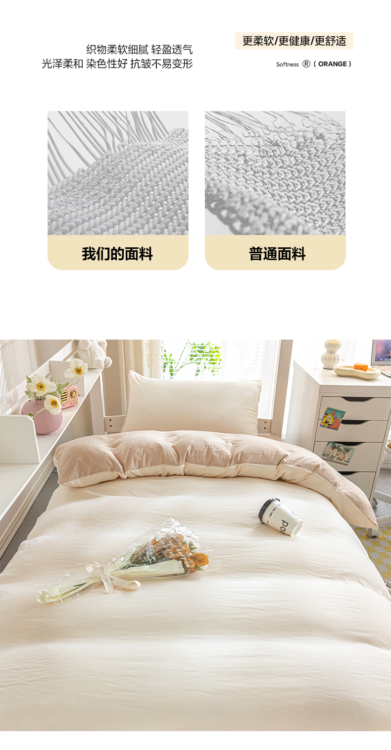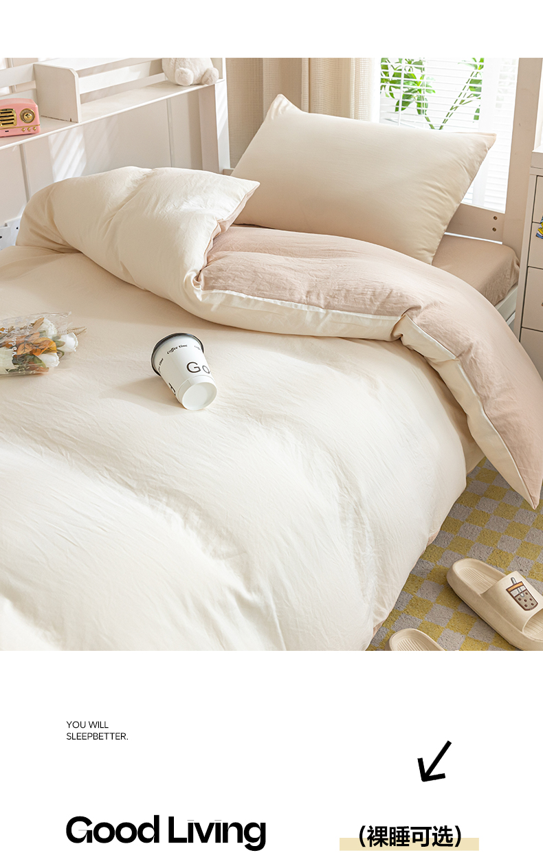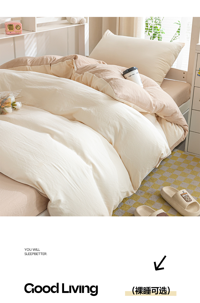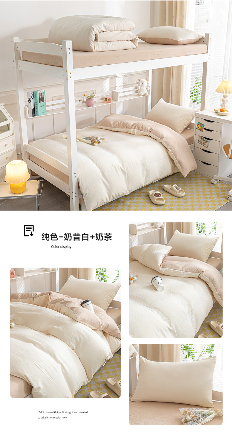 当前位置: 91家纺网 > 商品网购 > 床品套件 > 多件套 > 多件套 > 2024新款纯色双拼水洗棉学生三件套(床笠床套款) 纯色-奶昔白+奶茶