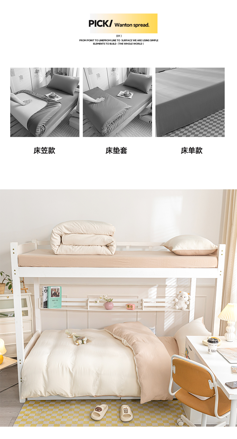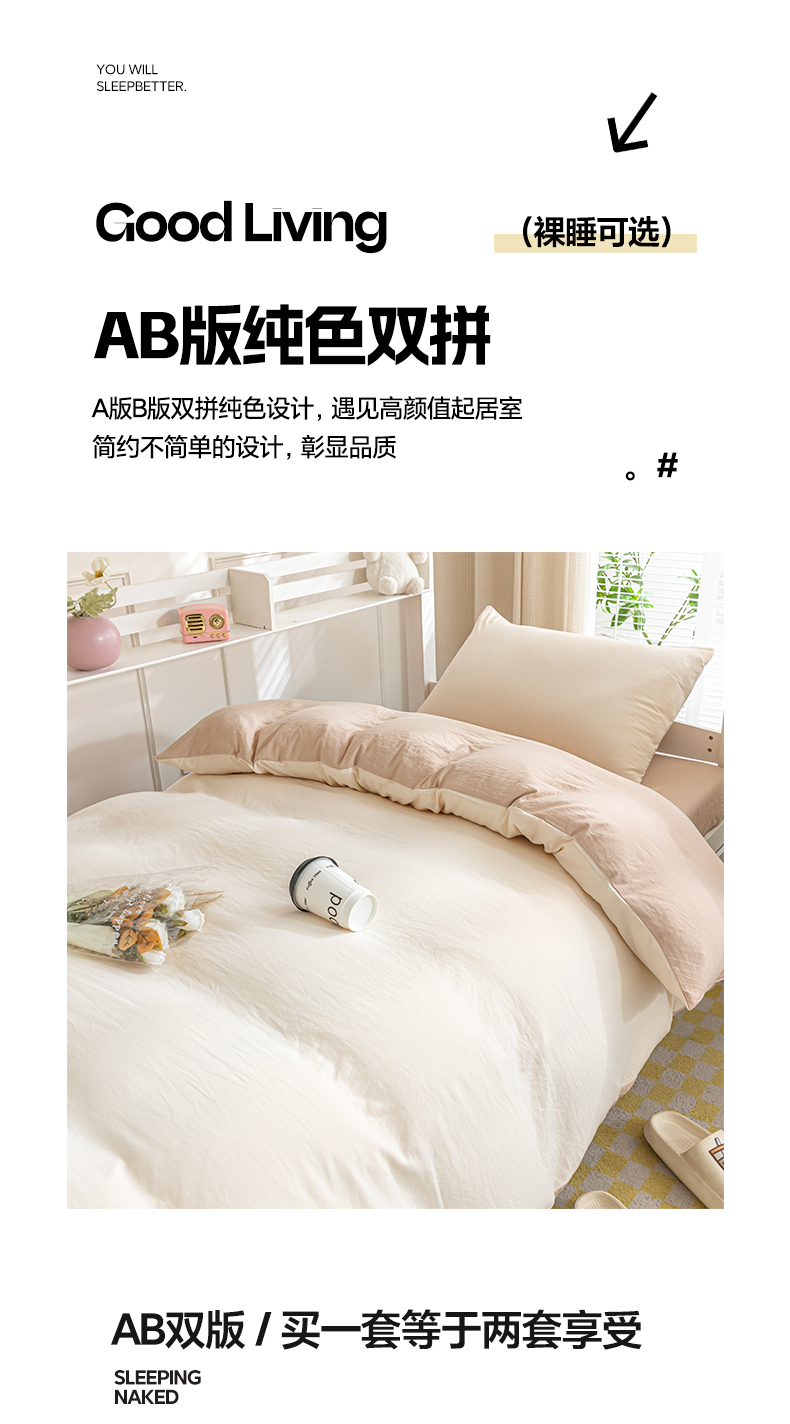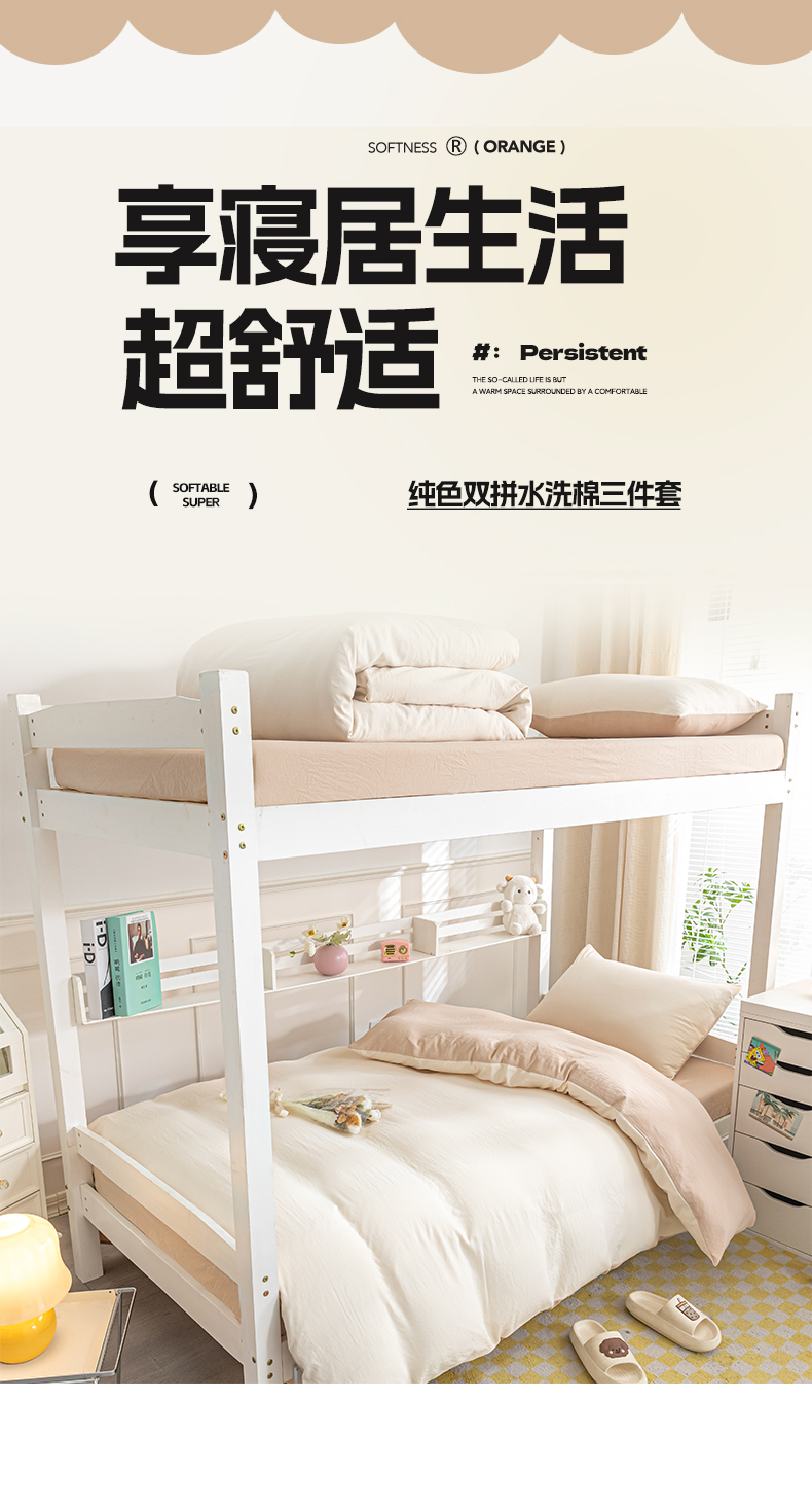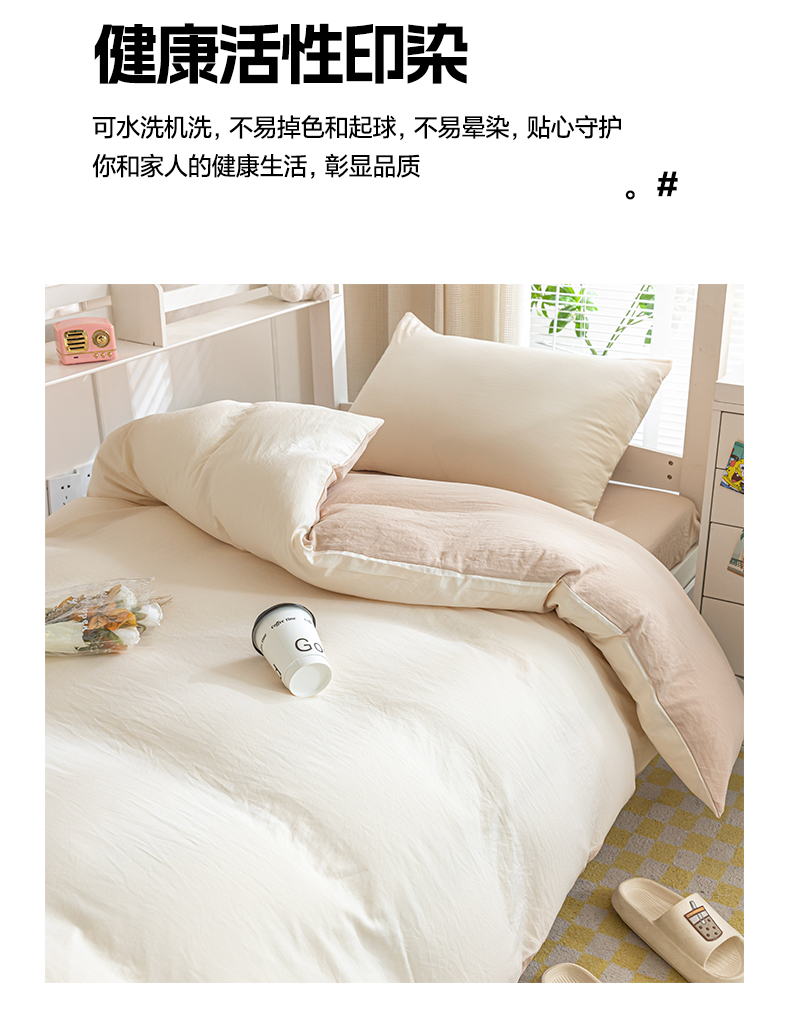 当前位置: 91家纺网 > 商品网购 > 床品套件 > 多件套 > 多件套 > 2024新款纯色双拼水洗棉学生三件套(床笠床套款) 纯色-奶昔白+奶茶