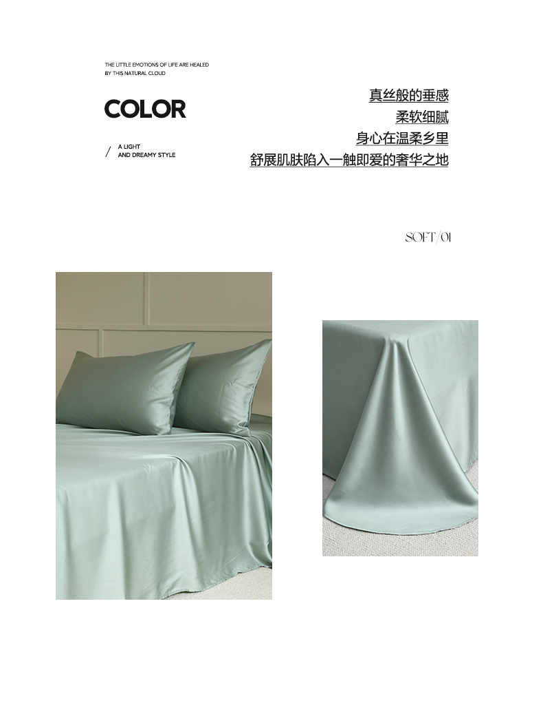 商品名称:轩和 2025新款A类LF60S兰精天丝单品床单 春熙绿