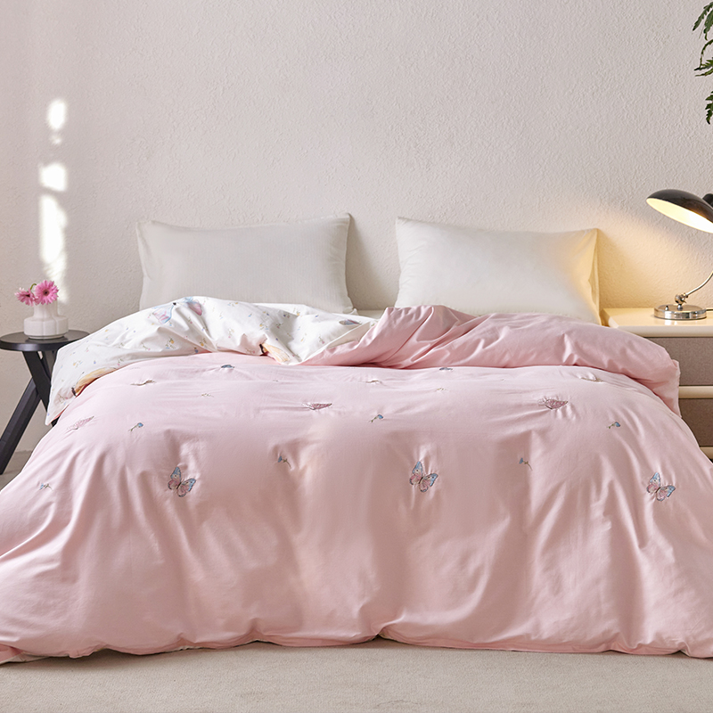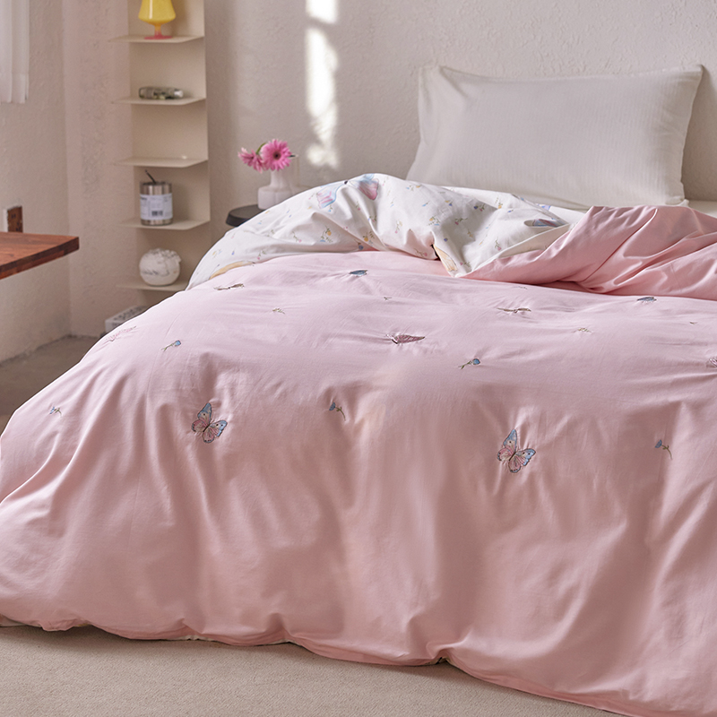 商品名称:2024新款爆品全棉纯棉印花刺绣单被套卡通被罩单品 粉翼缠绵