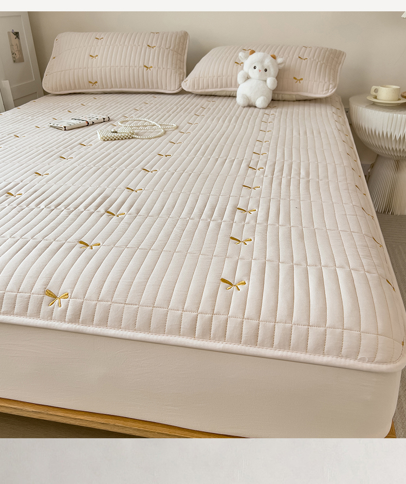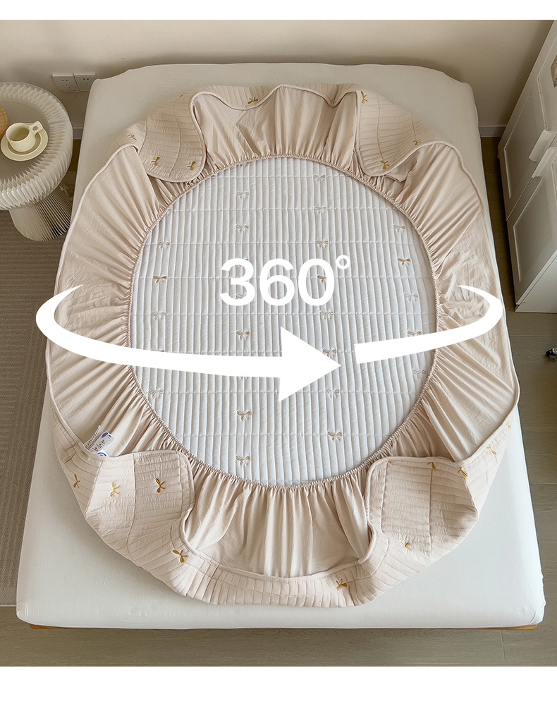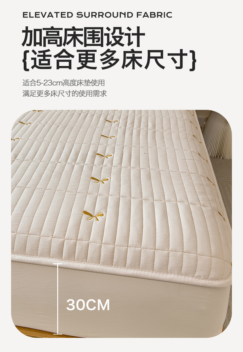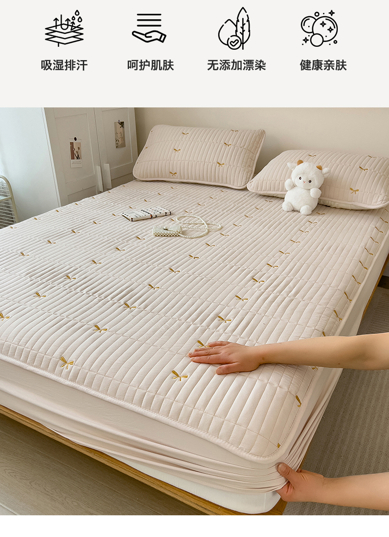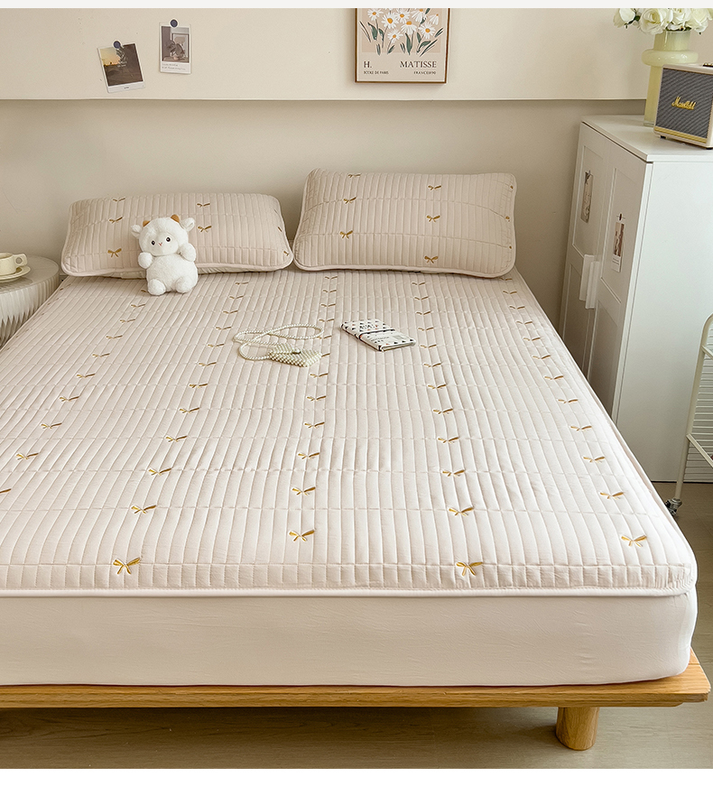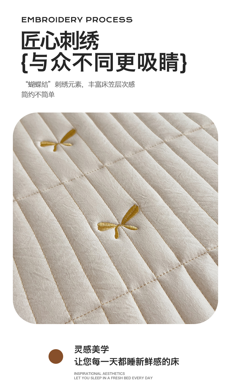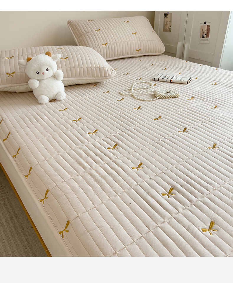 叠派家纺 2024新款水洗棉刺绣夹棉床笠 蝴蝶结-卡其