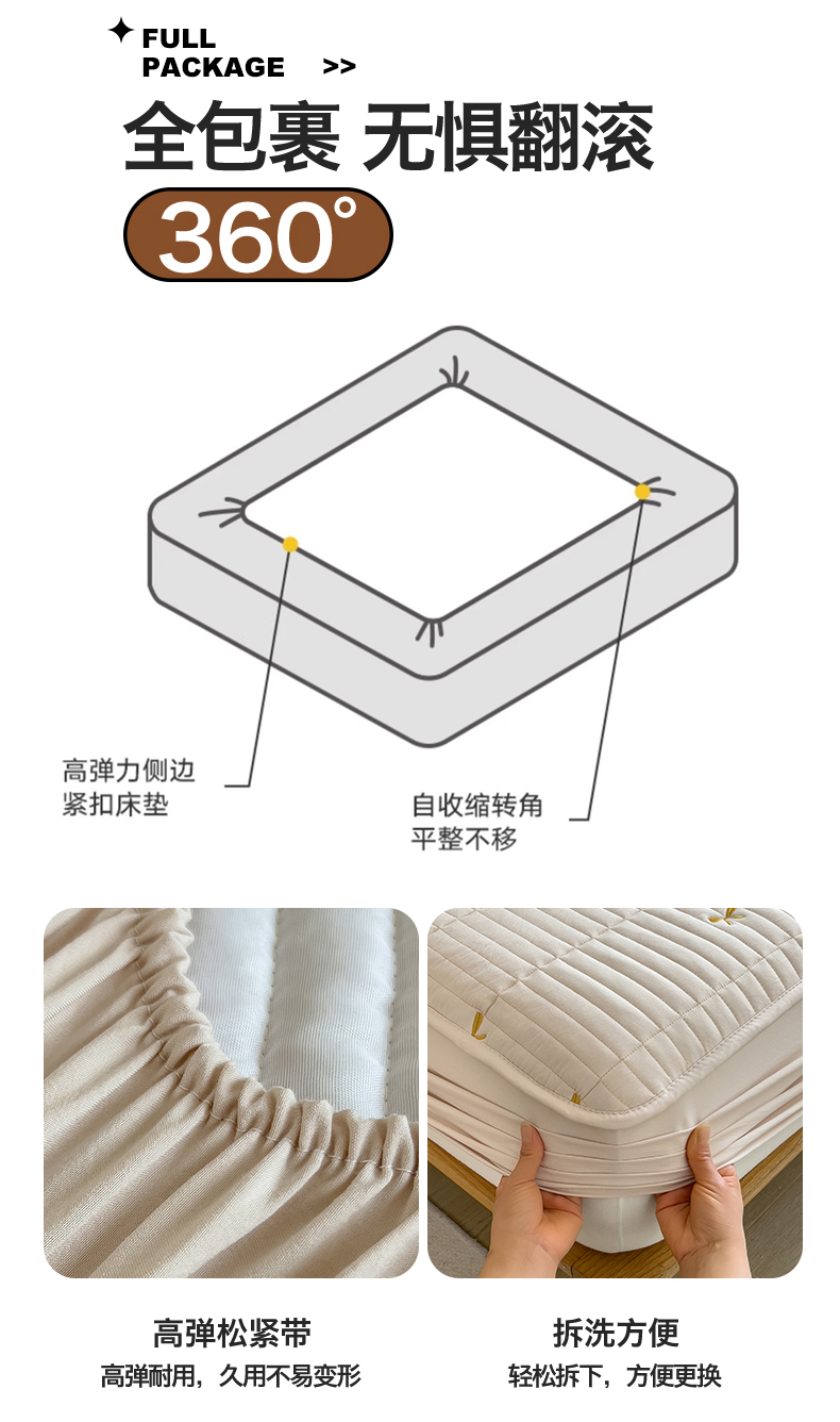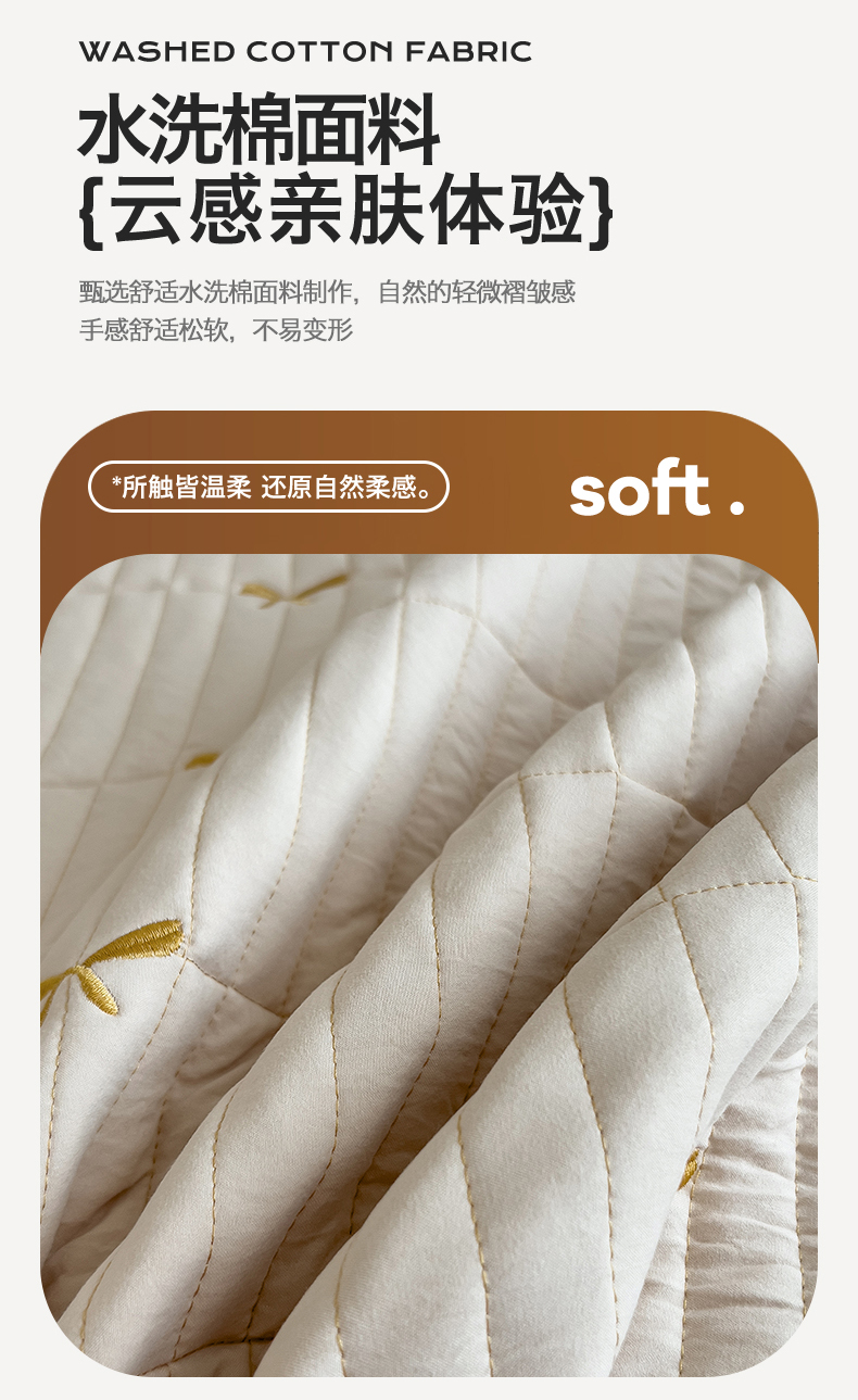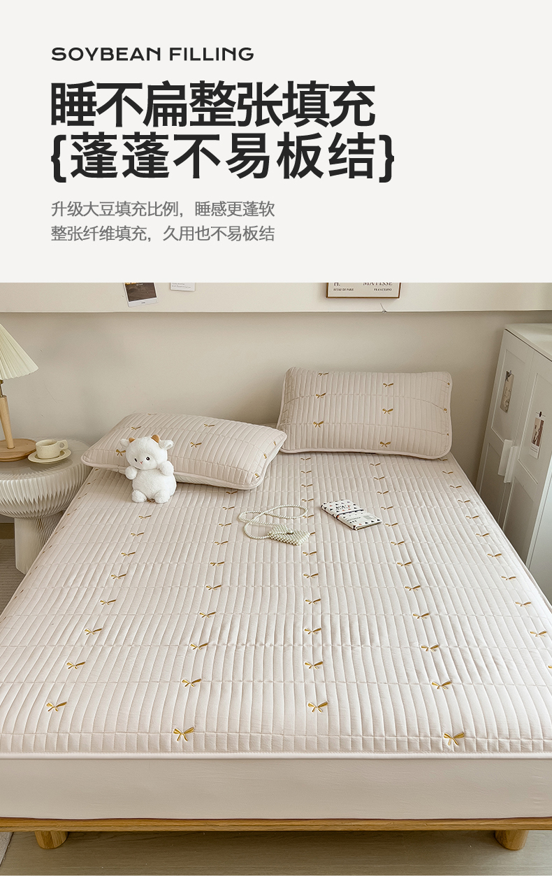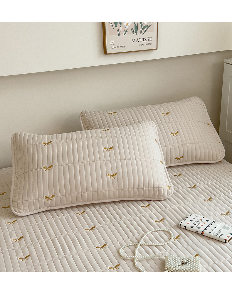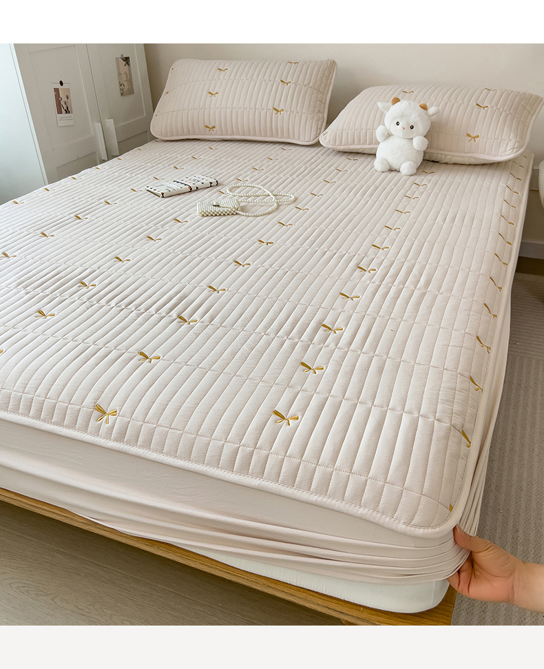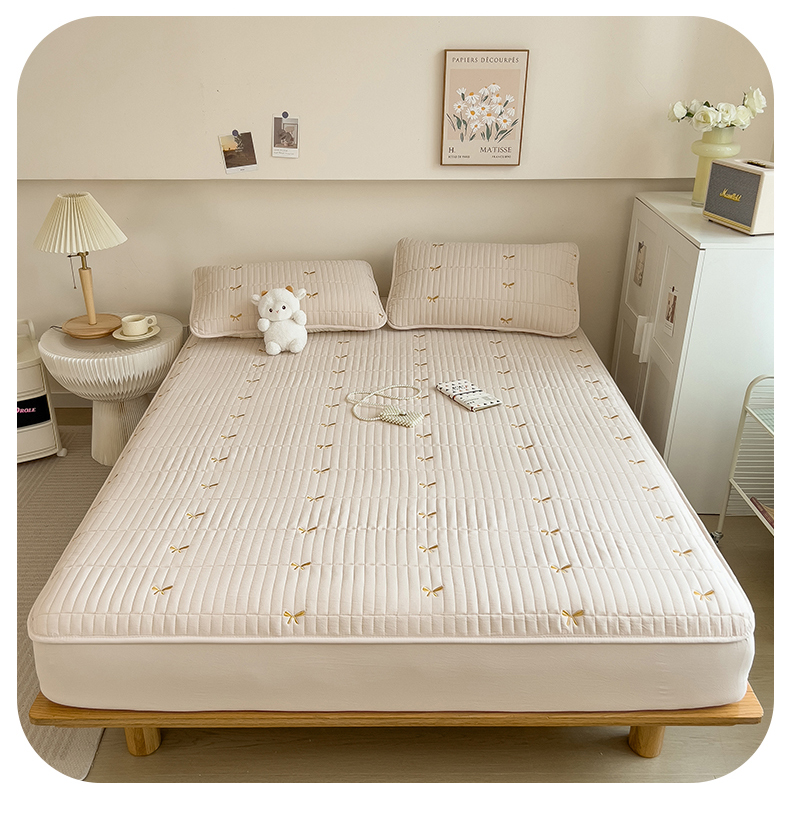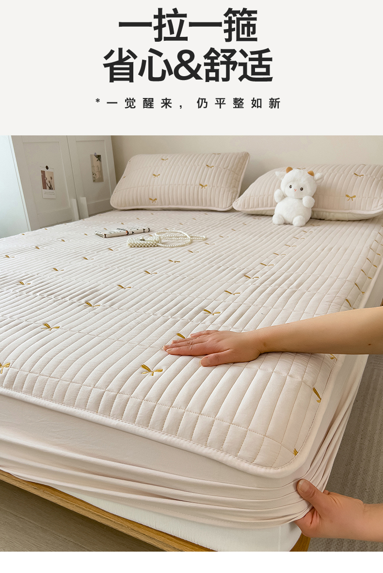 叠派家纺 2024新款水洗棉刺绣夹棉床笠 蝴蝶结-卡其