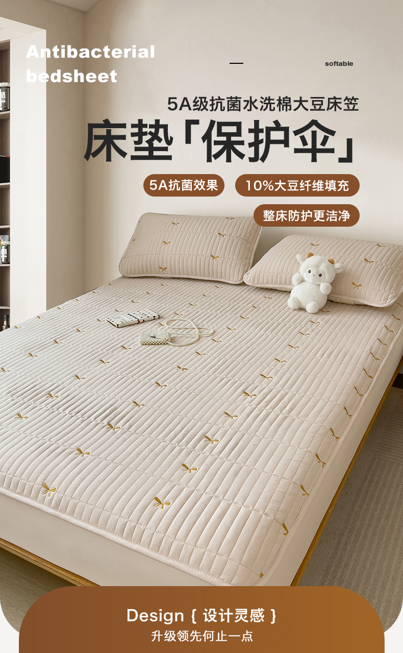 • 91家纺网 家纺一手货源 找家纺 叠派家纺 2024新款水洗棉刺绣夹棉床笠 蝴蝶结-卡其