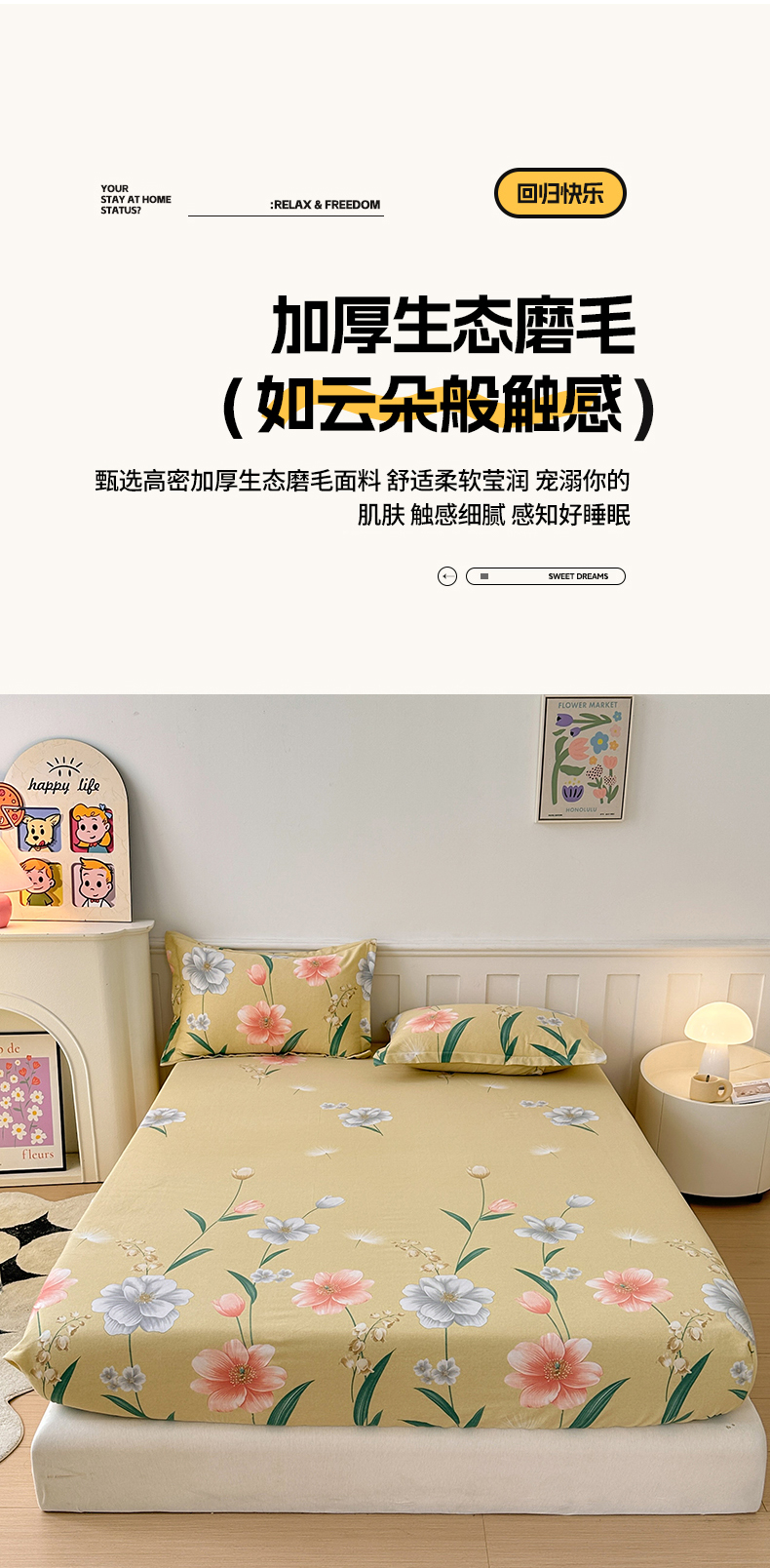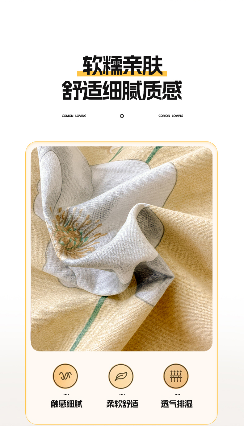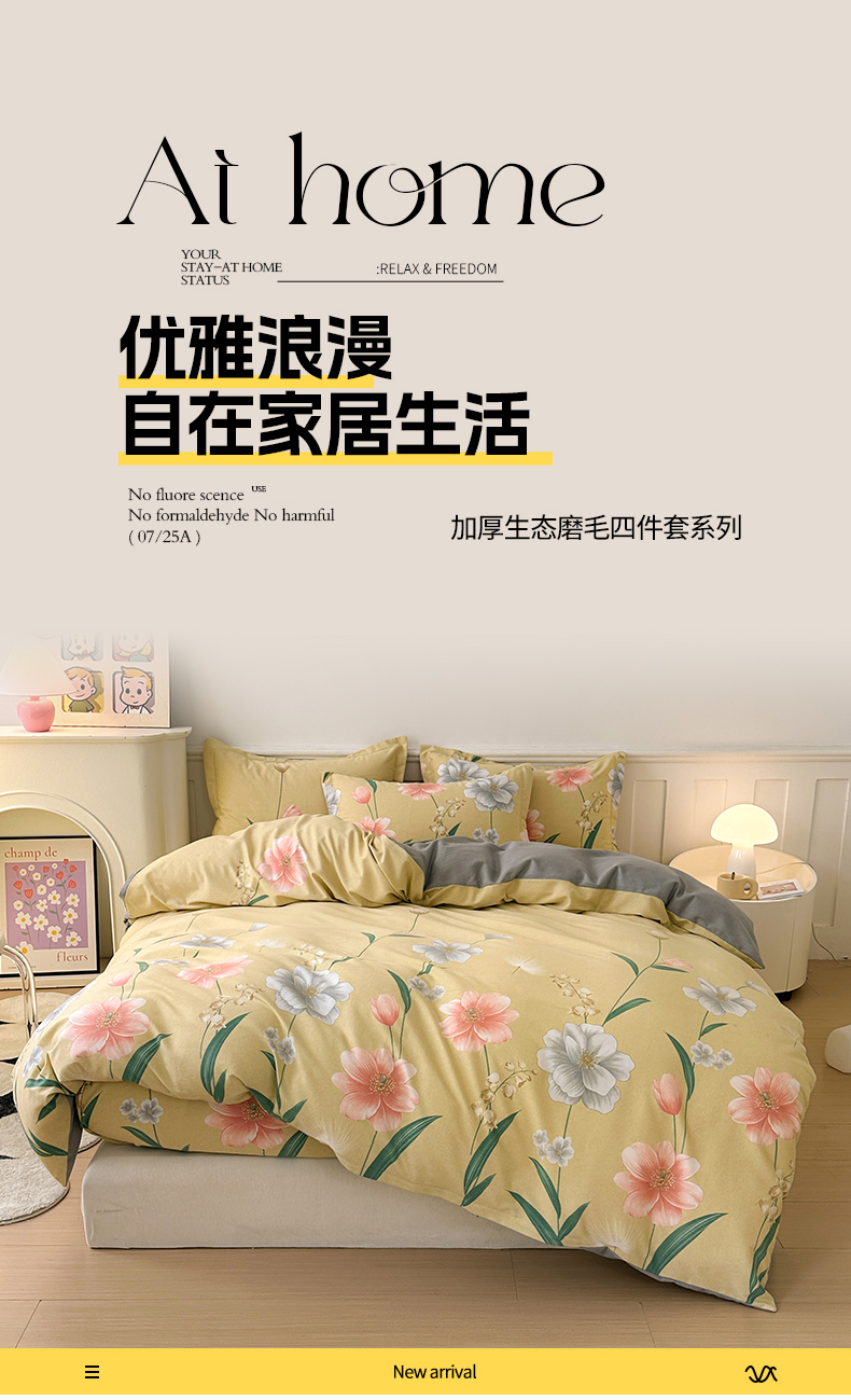 商品名称:2025新款加厚生态磨毛床笠四件套 金花浮梦