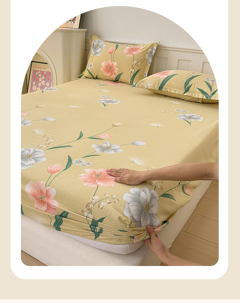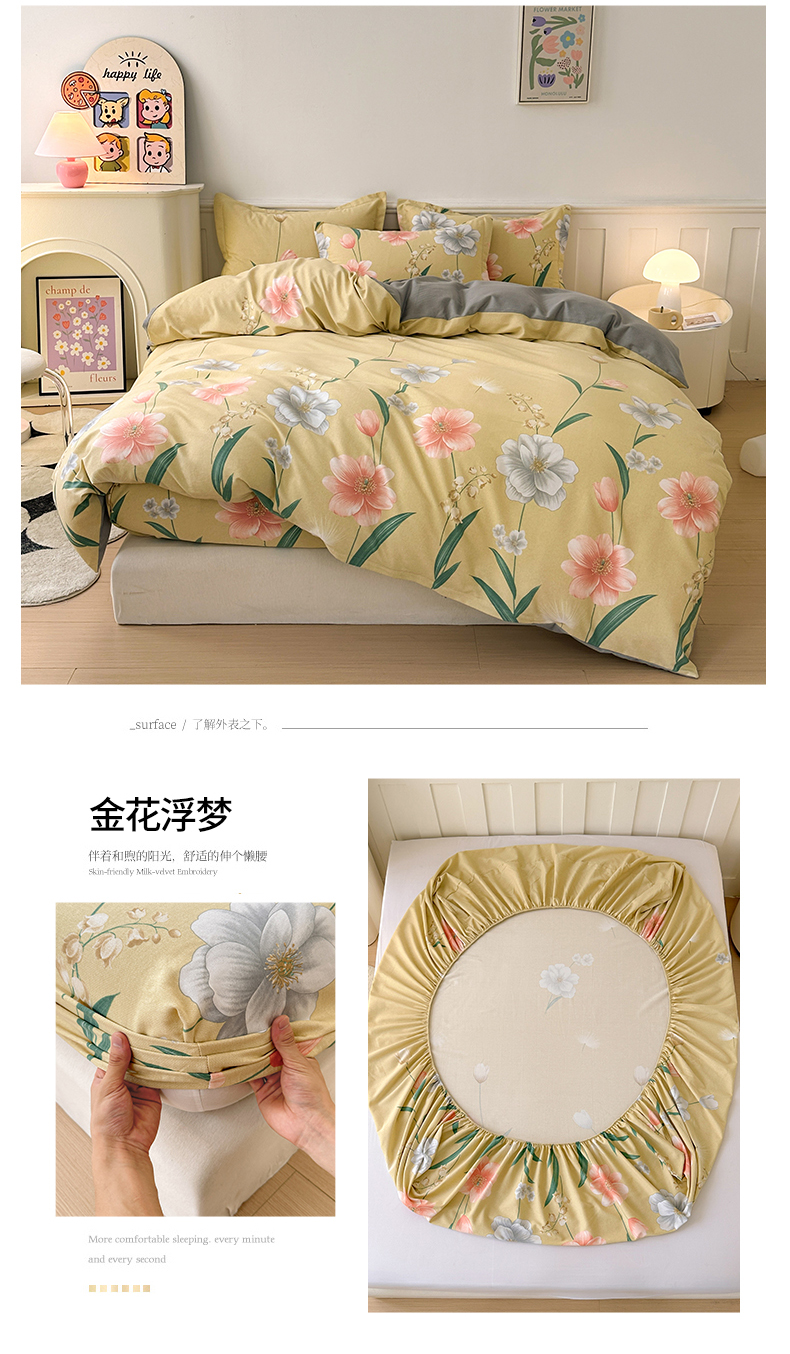 2025新款加厚生态磨毛床笠四件套 金花浮梦