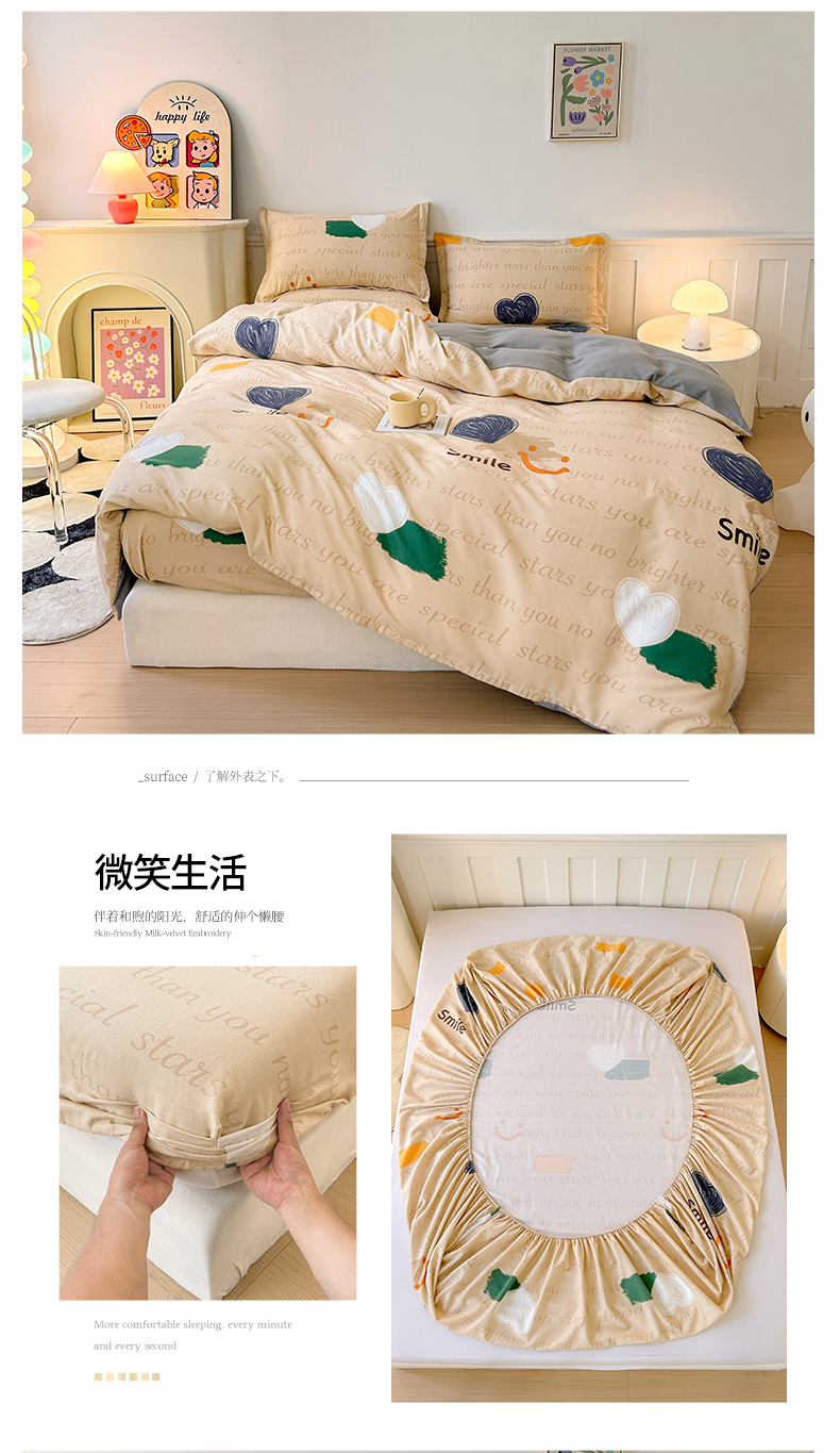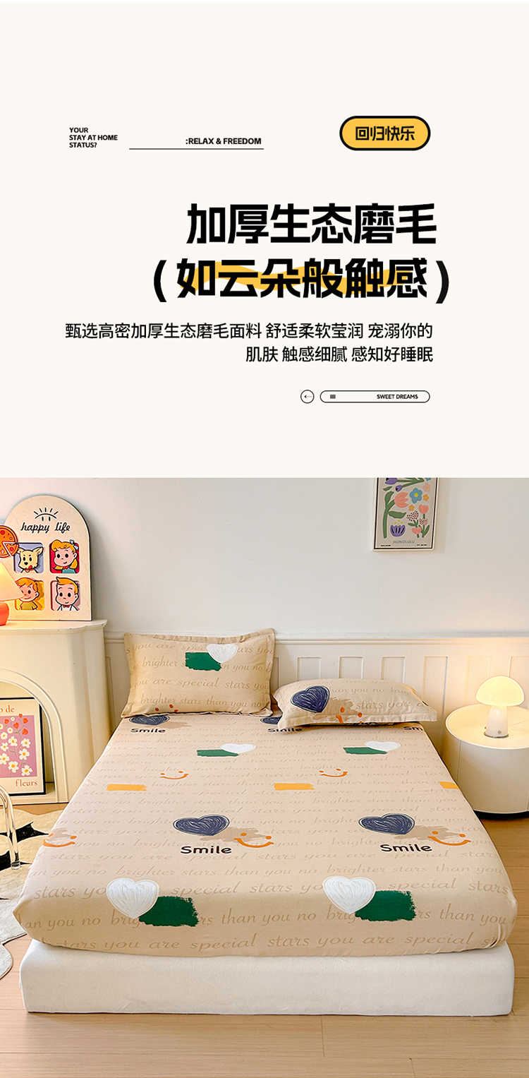 2025新款加厚生态磨毛床笠四件套 微笑生活