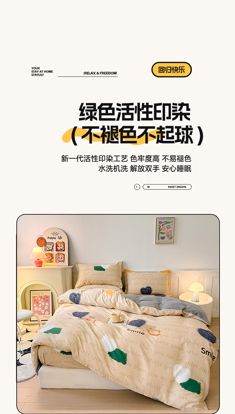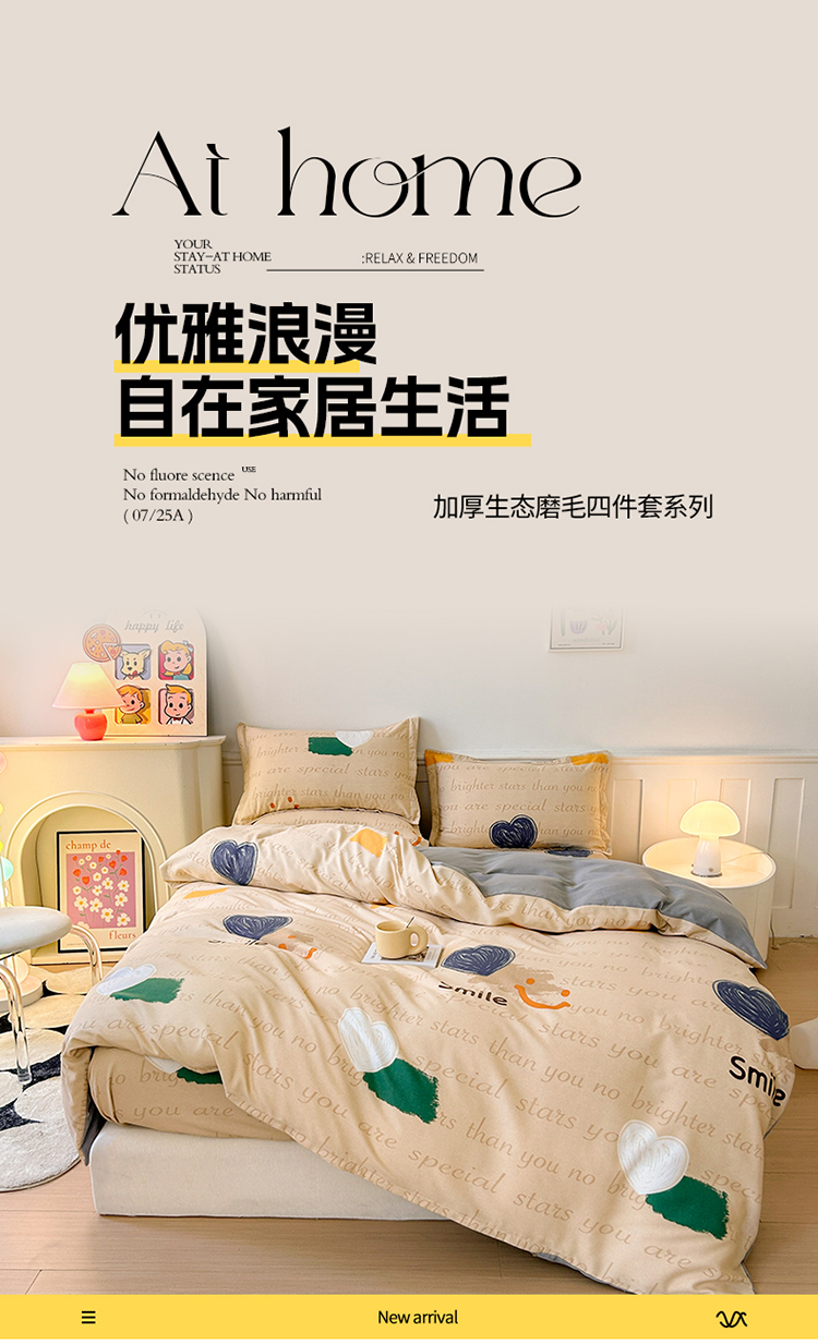商品名称:2025新款加厚生态磨毛床笠四件套 微笑生活