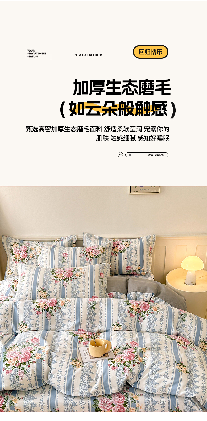 当前位置: 91家纺网 > 商品网购 > 床品套件 > 四件套 > 全棉普通四件套 > 2025新款加厚生态磨毛床单四件套 法芙娜