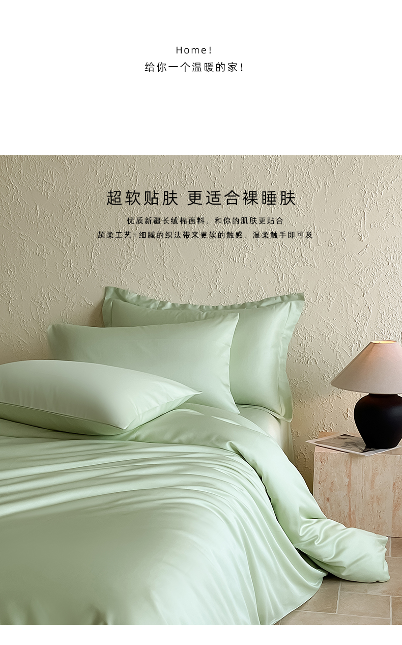 商品名称:Mr.pig猪先生水洗棉 2024新品A类100全棉高支高密贡缎新疆长绒棉四件套纯棉床单被套学生宿舍三件套枕套床笠床上用品 茶香绿