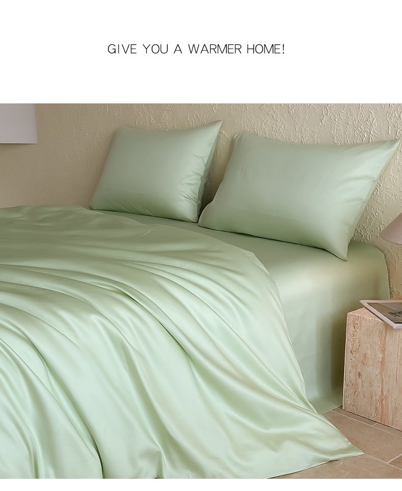 Mr.pig猪先生水洗棉 2024新品A类100全棉高支高密贡缎新疆长绒棉四件套纯棉床单被套学生宿舍三件套枕套床笠床上用品 茶香绿