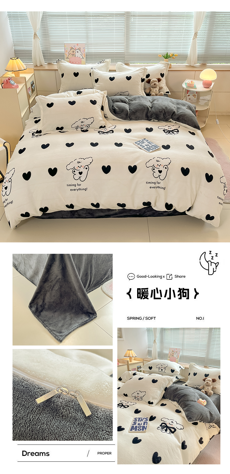 2024新款A类AB版加厚保暖双面牛奶绒印花四件套--小清新系列 暖心小狗