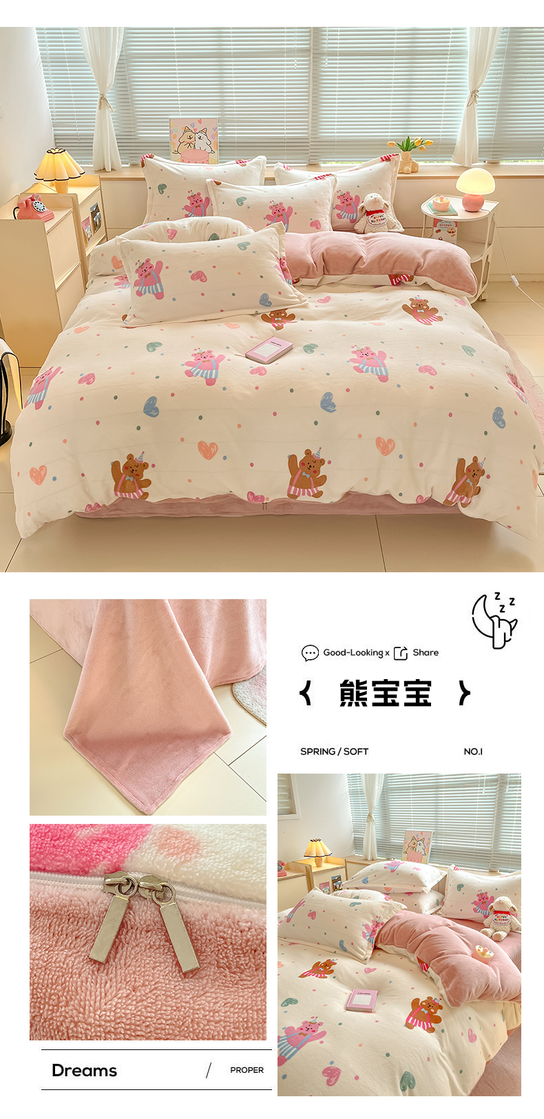 商品名称:2024新款A类AB版加厚保暖双面牛奶绒印花四件套--小清新系列 熊宝宝